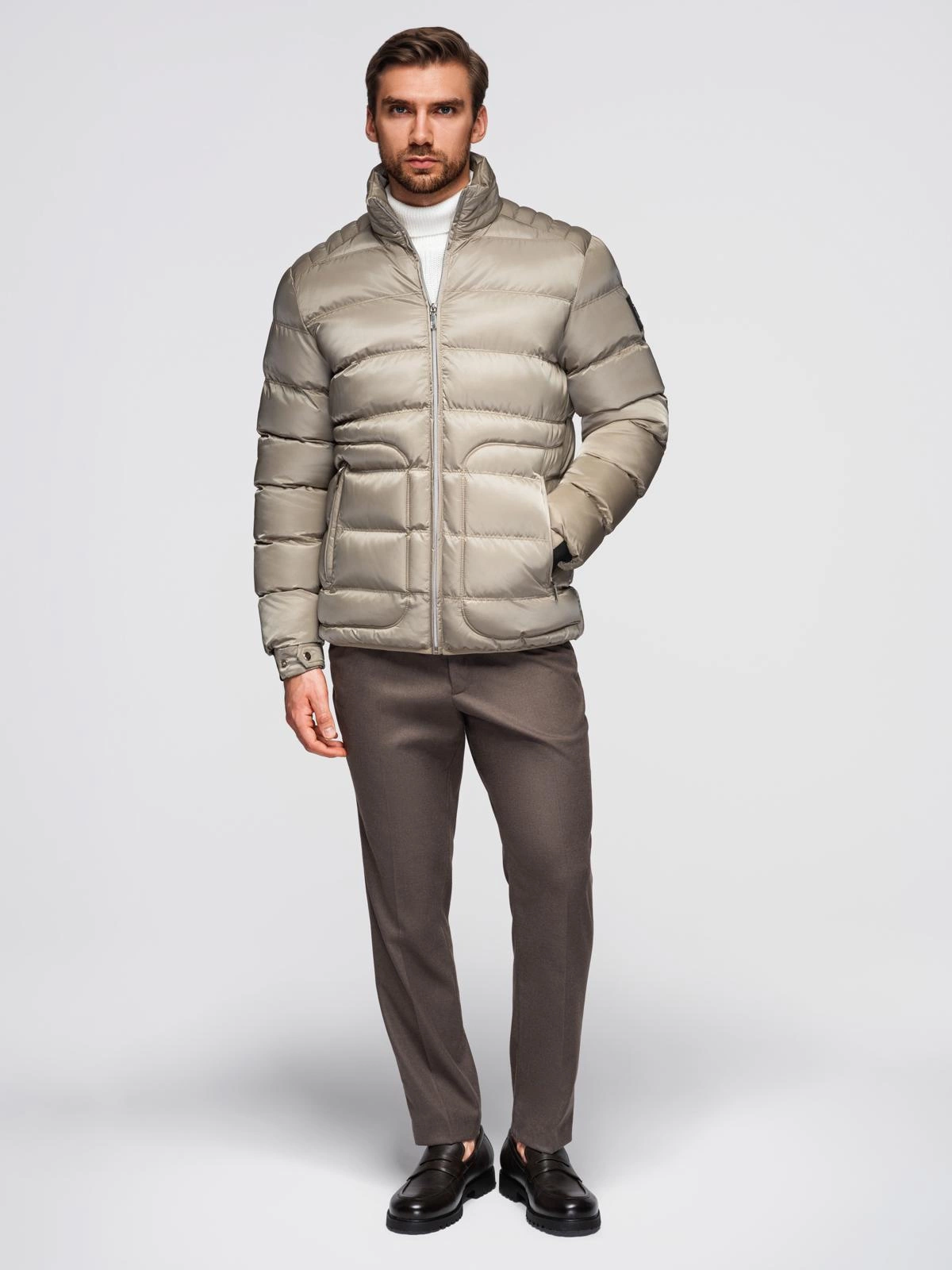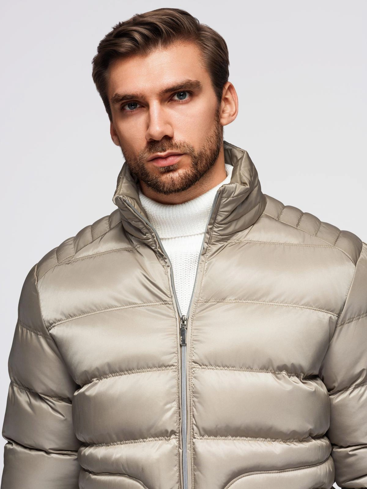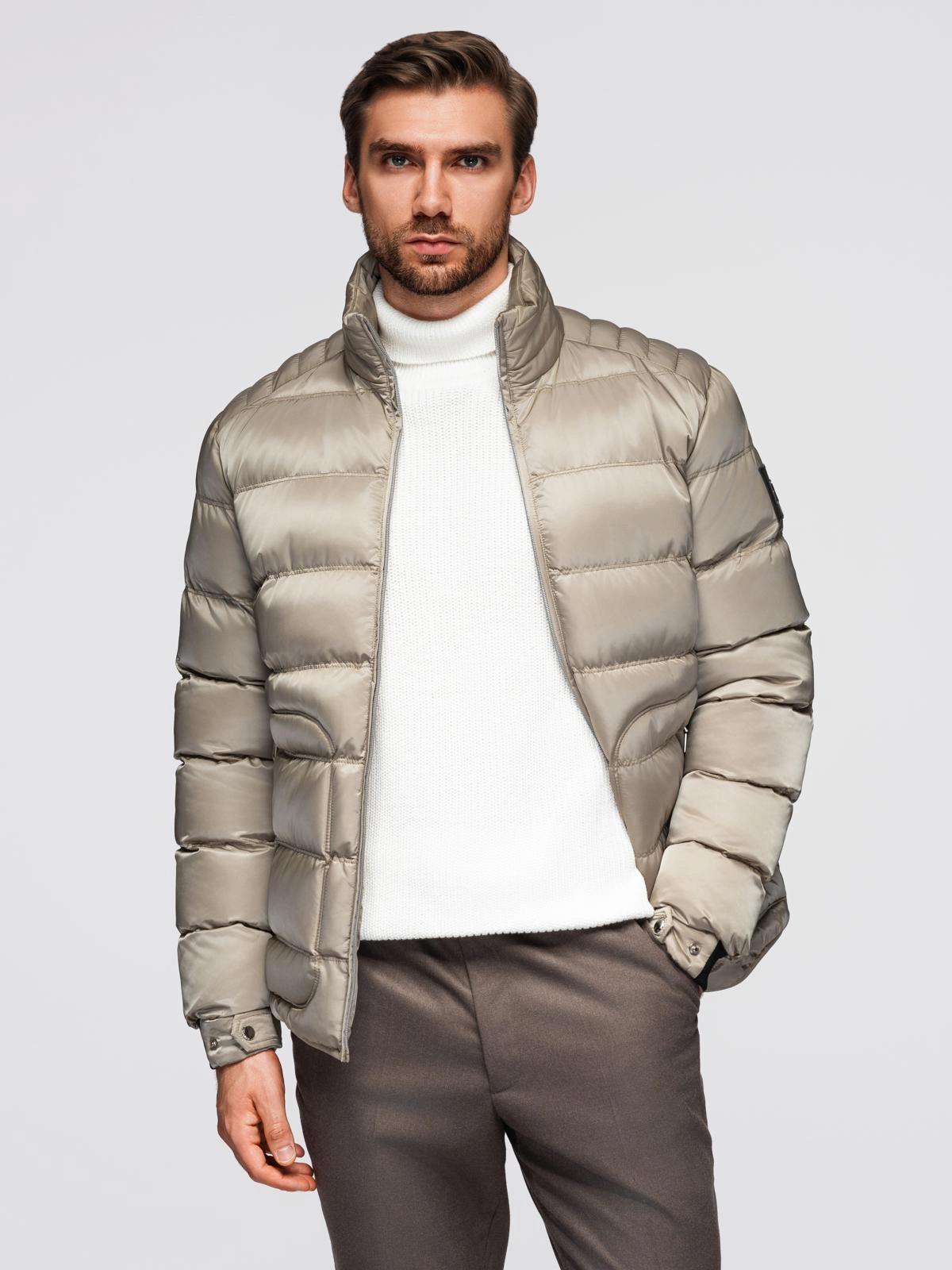 Pikowana męska kurtka z połyskiem i stójką – jasnopopielata V5 OM-JALP-0218