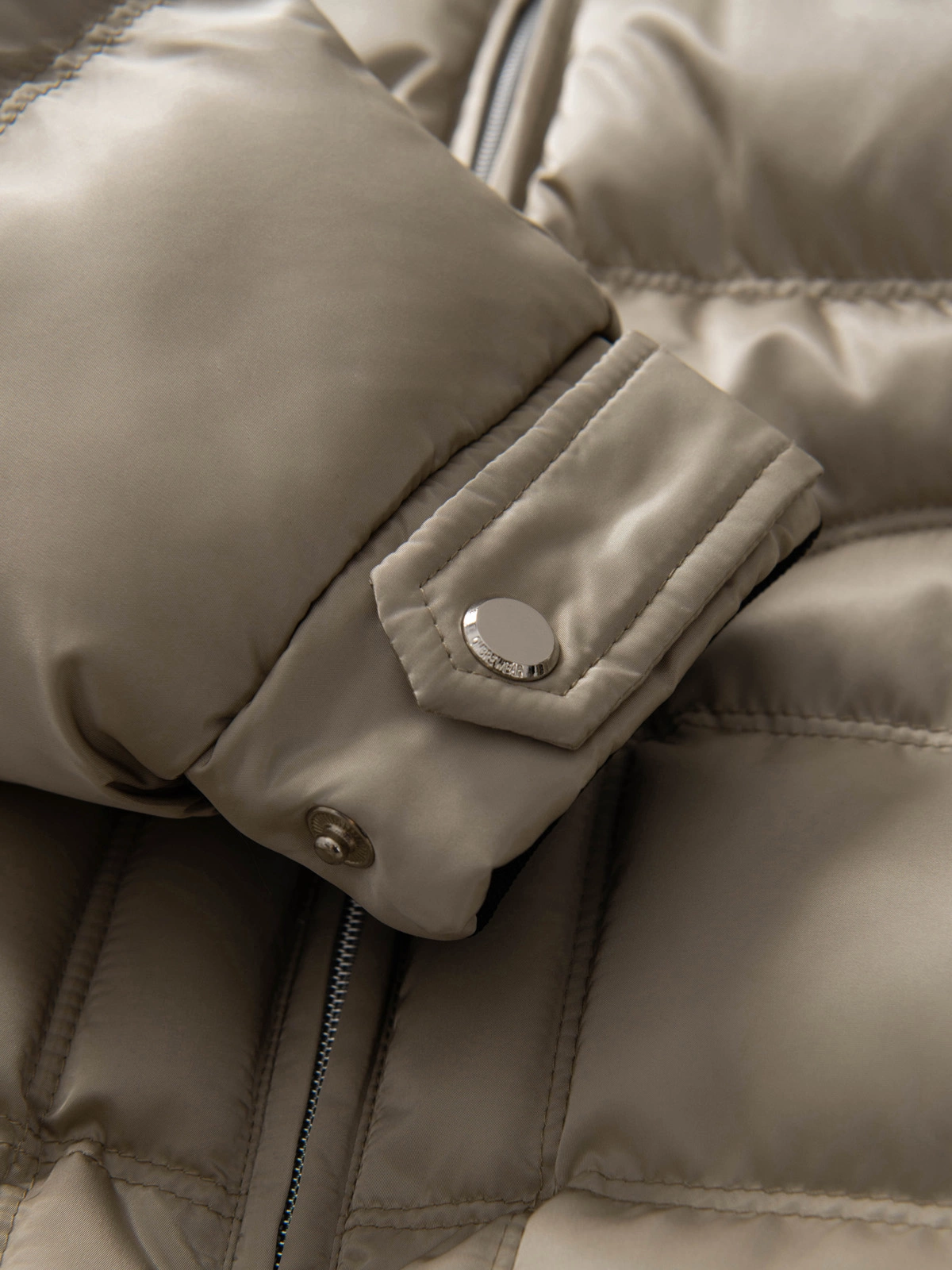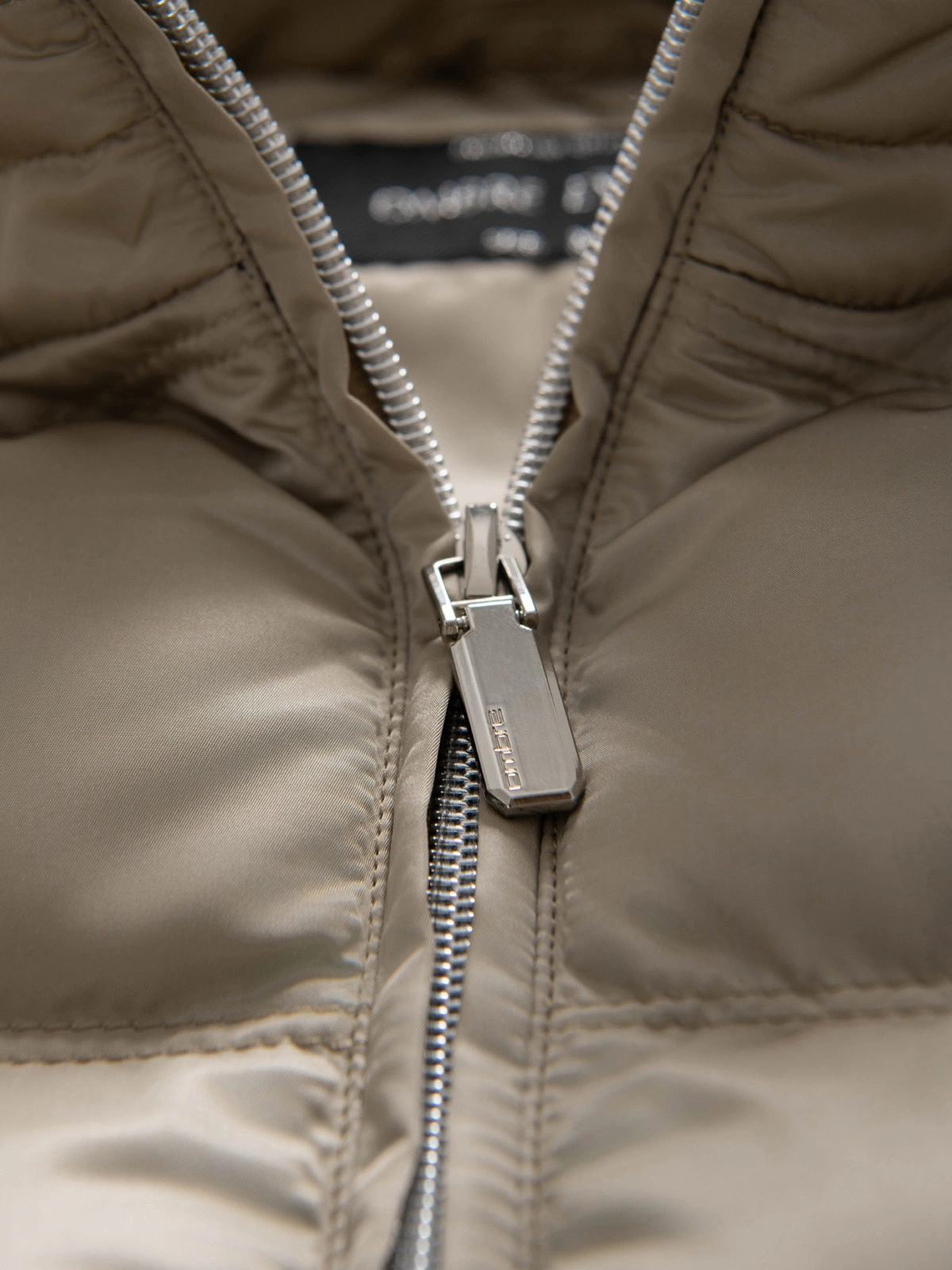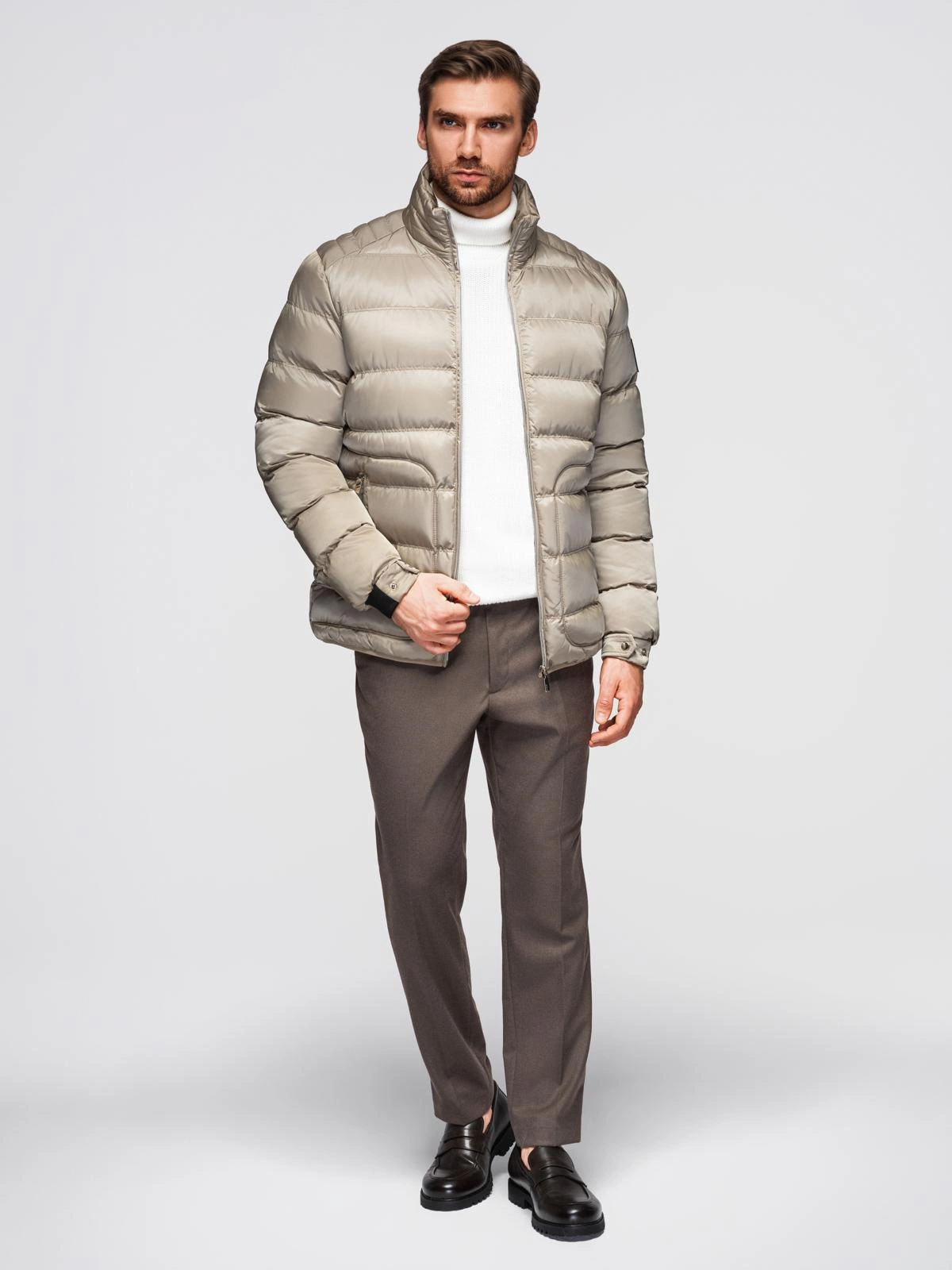 Pikowana męska kurtka z połyskiem i stójką – jasnopopielata V5 OM-JALP-0218