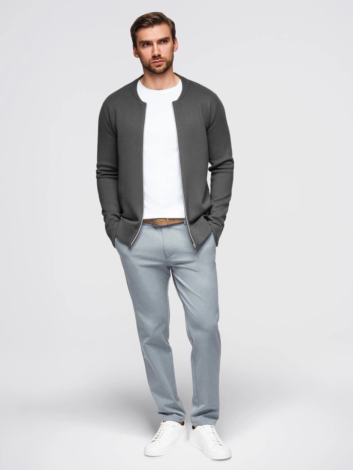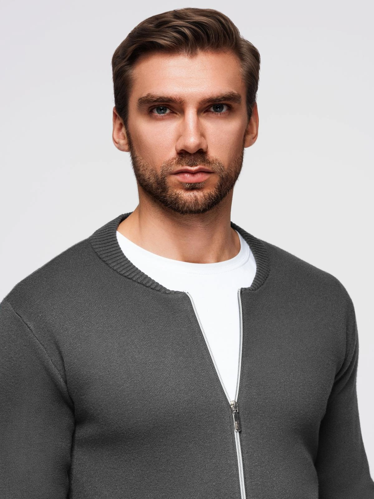 - Męski sweter gładki na zamek – grafitowy V2 OM-SWZS-0146