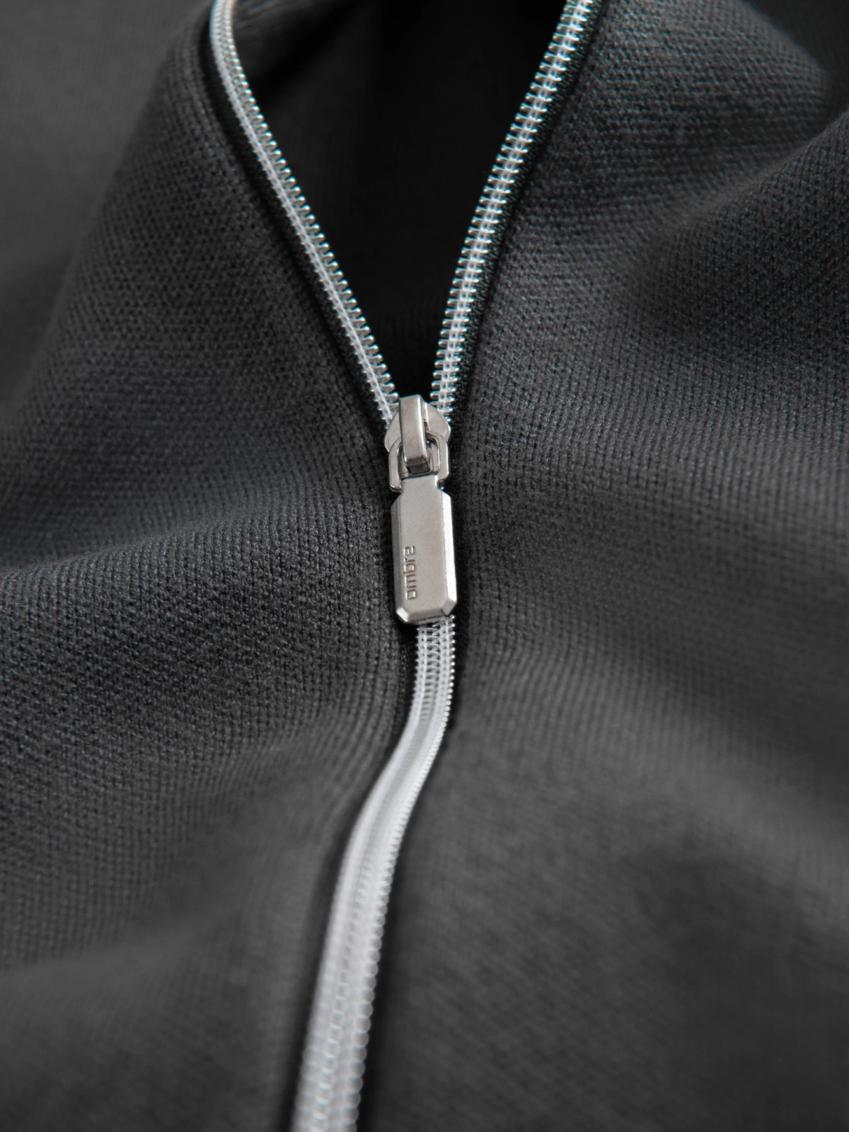 Odkryj wyjątkowy sweter męski na suwak z kolekcji QUINTESSENCE – idealny wybór dla mężczyzn ceniących komfort, jakość i nowoczesny styl. Sweter wykonany z dzianiny o gładkim splocie jersey, zapewnia przyjemne dopasowanie do sylwetki i wygodę noszenia przez cały dzień. Model przypominającą fason kurtki typu bomberki, wyposażony został w centralny metalowy zamek, który dodaje nowoczesnego charakteru i funkcjonalności. Wykończony ściągaczami oraz ozdobiony subtelnym metalowym pinem z logo marki u dołu swetra. To świetna baza do codziennych i półformalnych stylizacji – pasuje zarówno do jeansów, jak i chinosów.