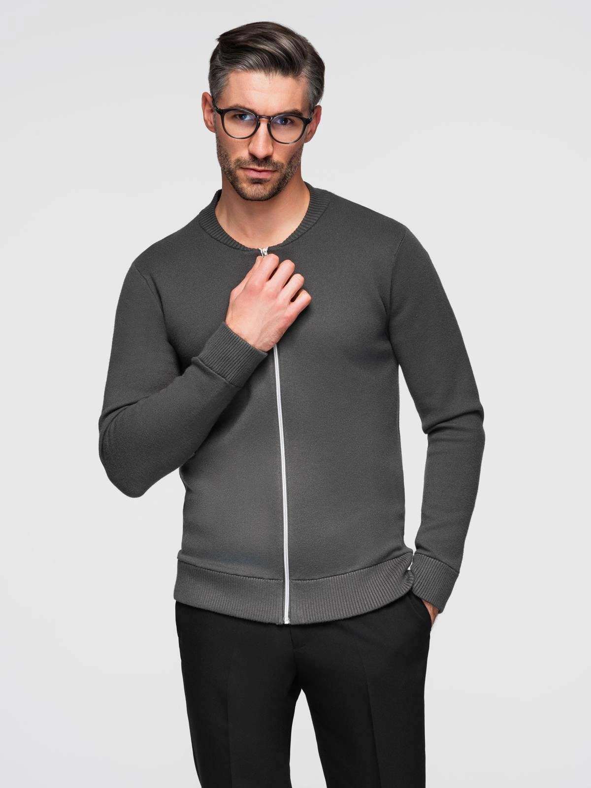 Męski sweter gładki na zamek – grafitowy V2 OM-SWZS-0146