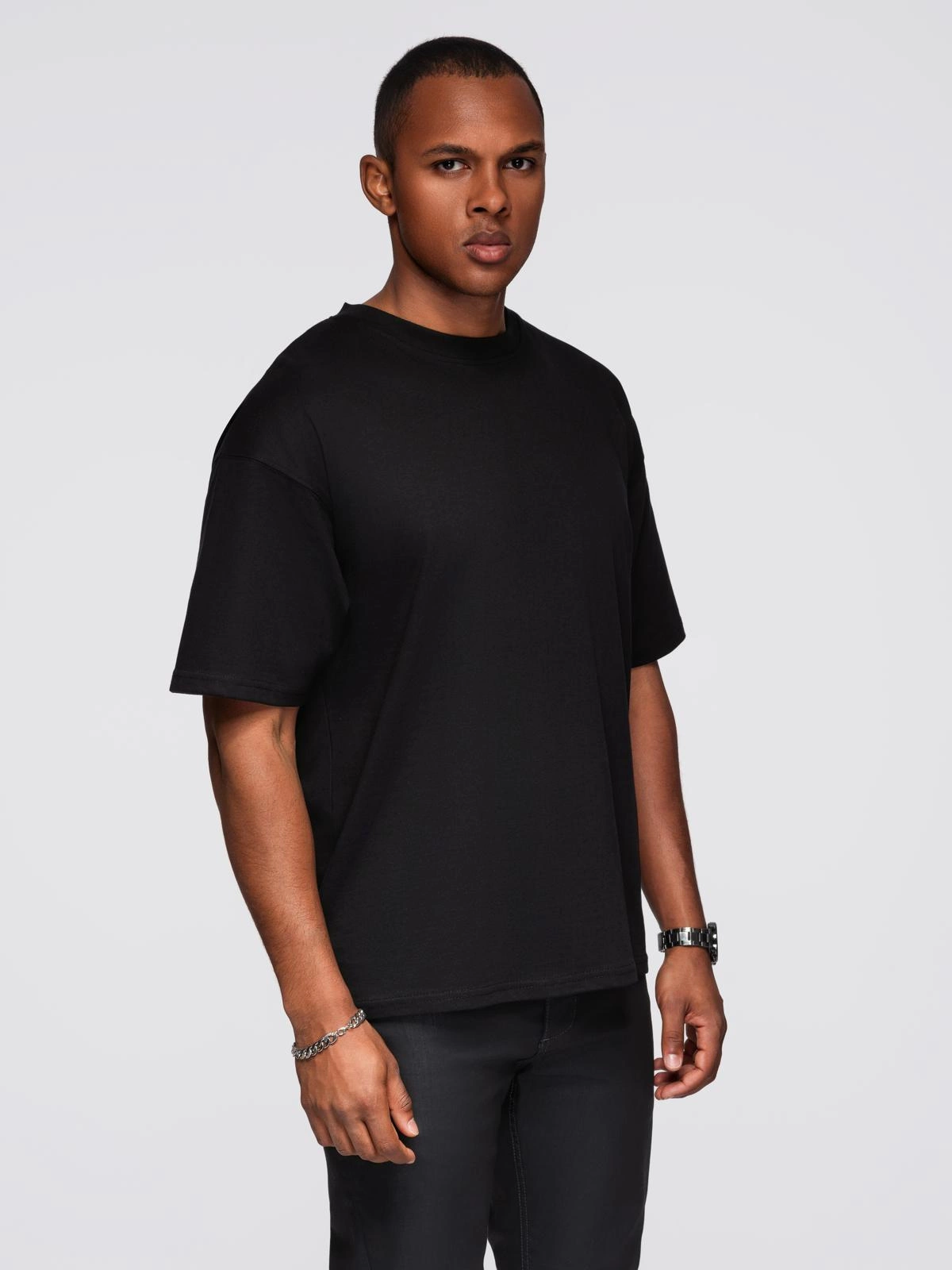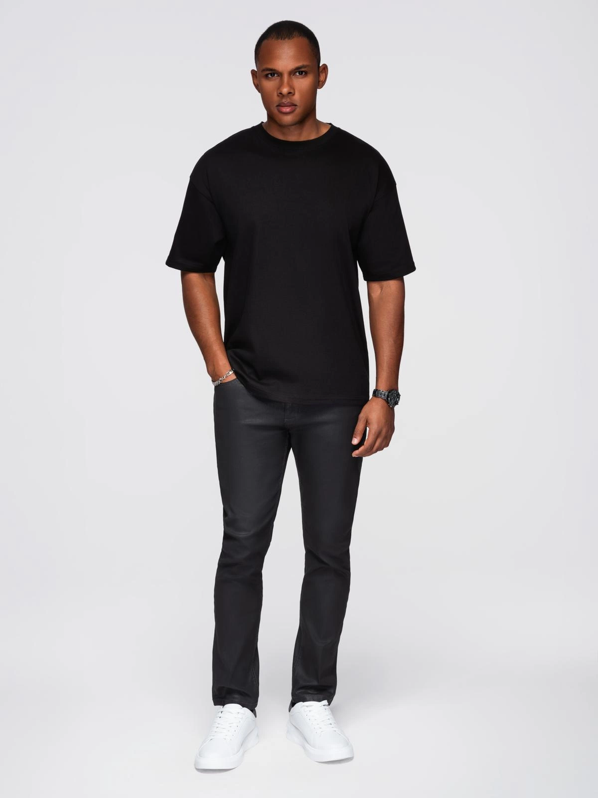 - Męska bawełniana koszulka z cekinowym motywem skrzydeł na plecach - czarna V1 OM-TSCT-0289