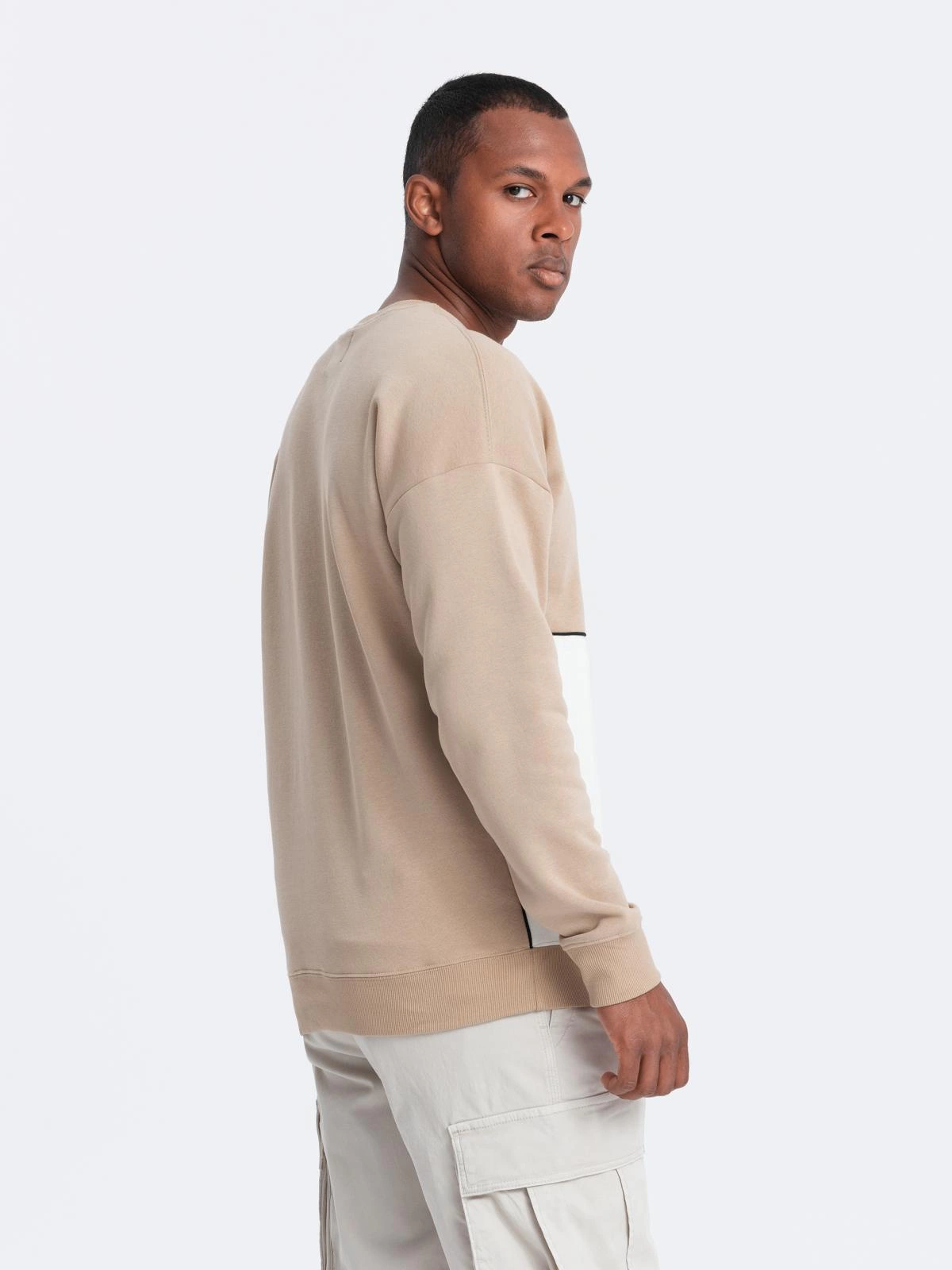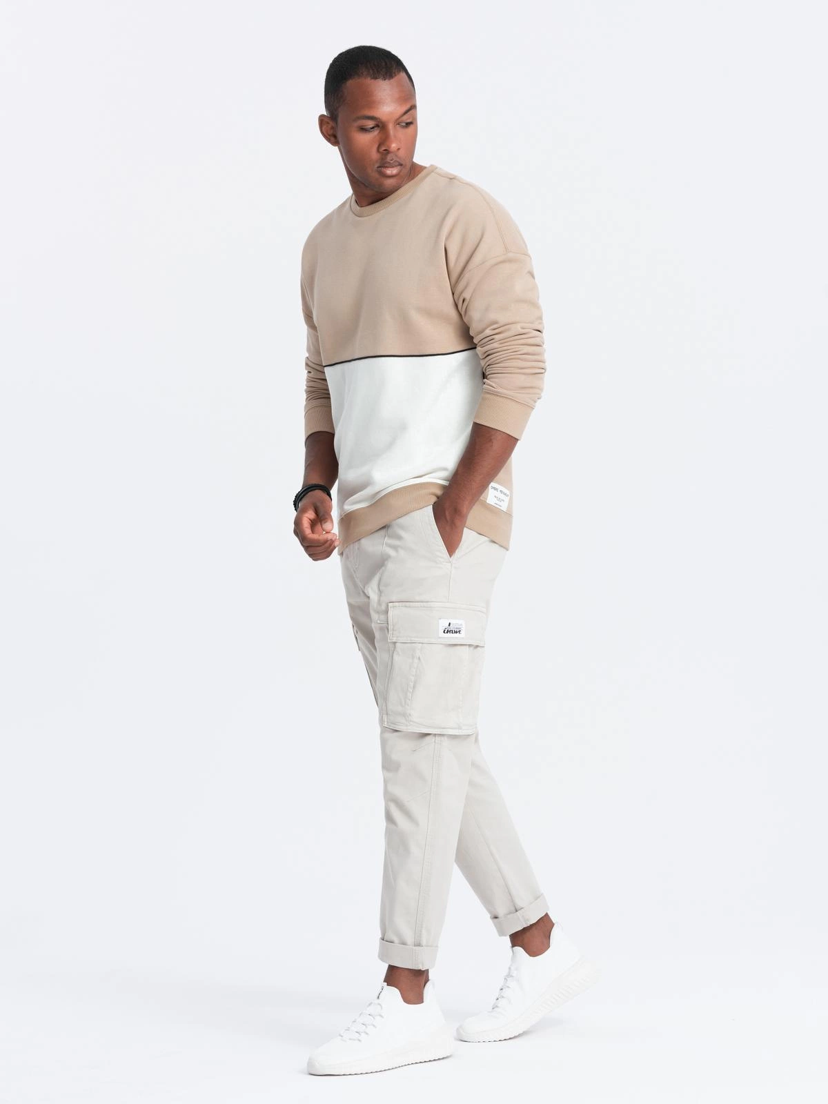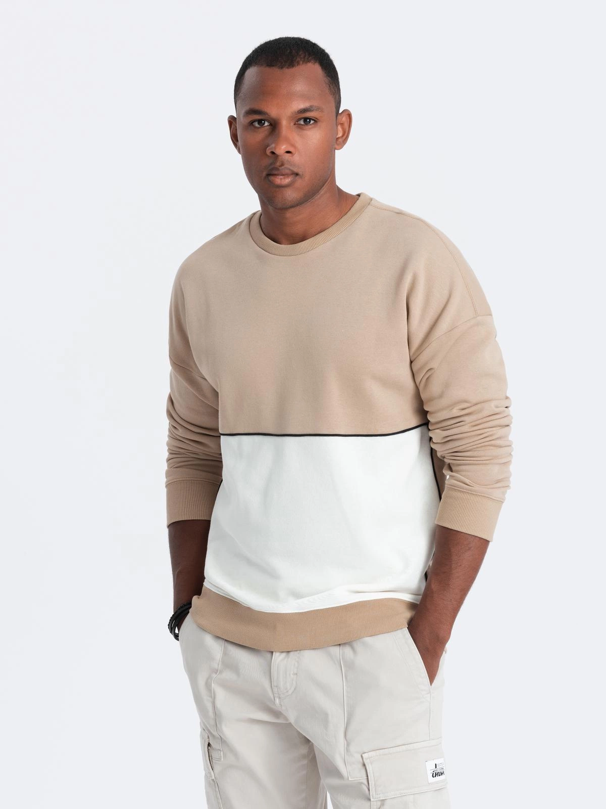 - Bluza męska OVERSIZE z kontrastowym łączeniem kolorów - beżowa V2 B1673