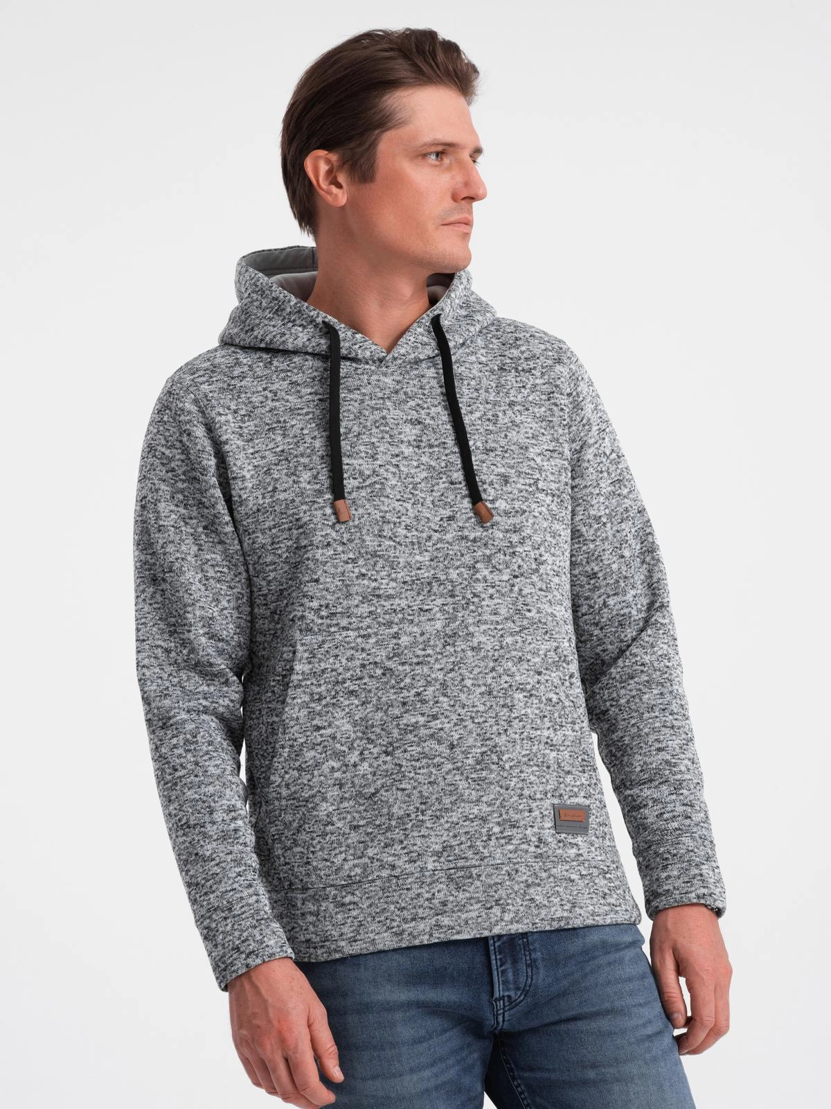 Bluza męska nierozpinana kangurka z kapturem - szary melanż V1 B1675