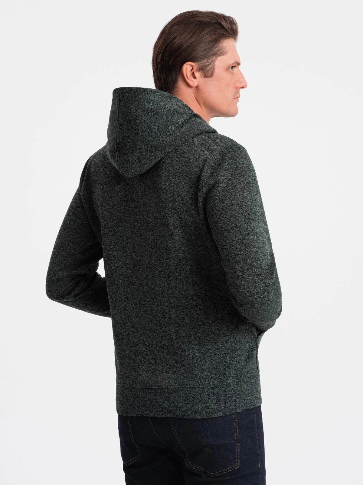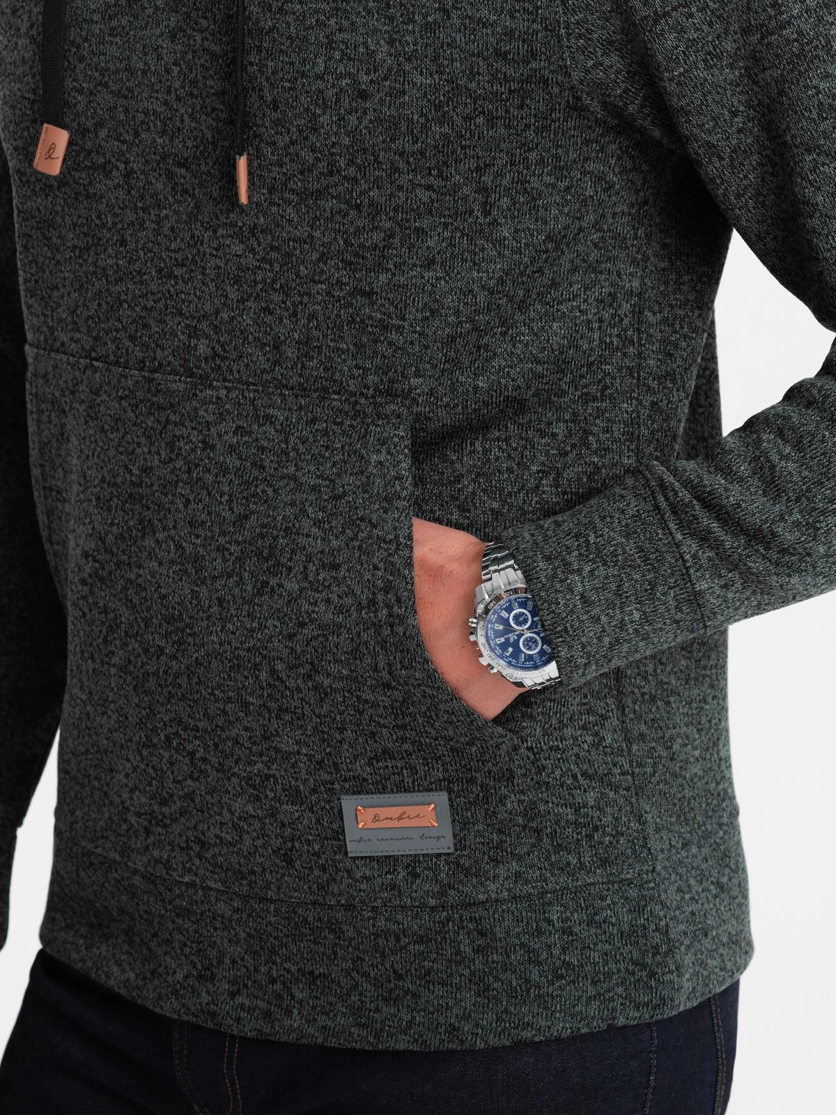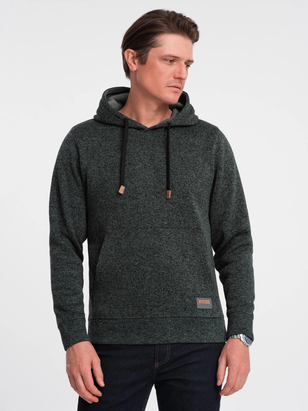 - Bluza męska nierozpinana kangurka z kapturem - oliwkowy melanż V3 B1675