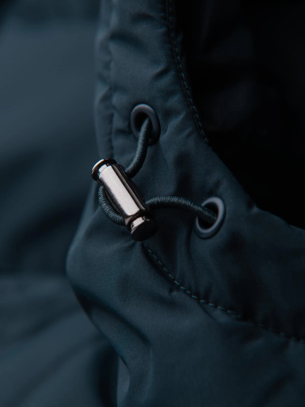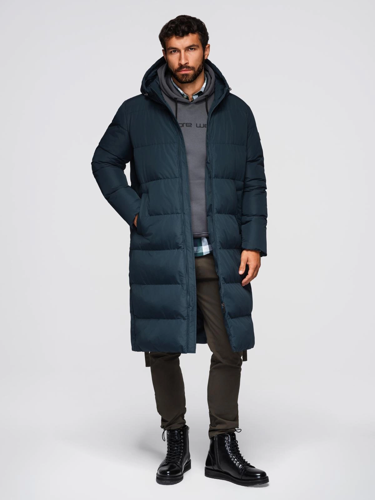 Klasyczna męska długa kurtka z kapturem – granatowa V2 OM-JALJ-0269