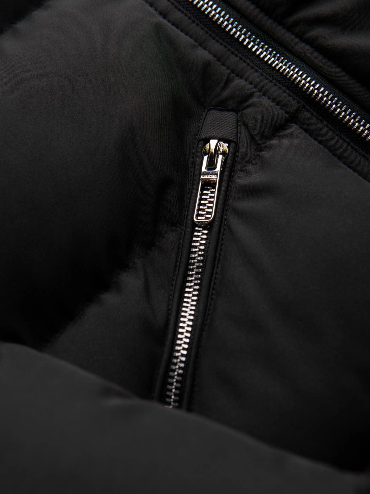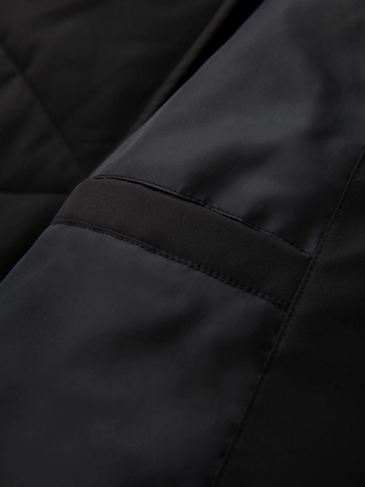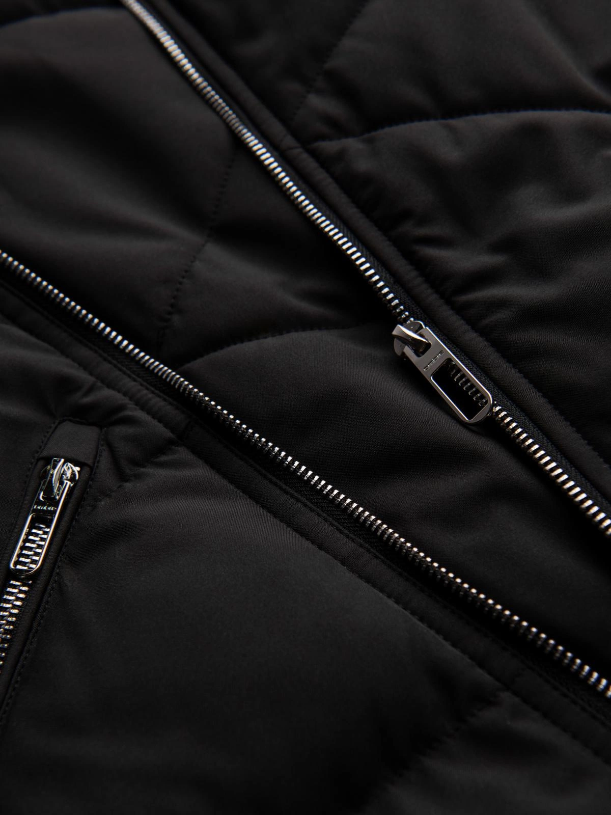 Kurtka pikowana męska o kroju ramoneski z kapturem - czarna V1 OM-JAHP-0252