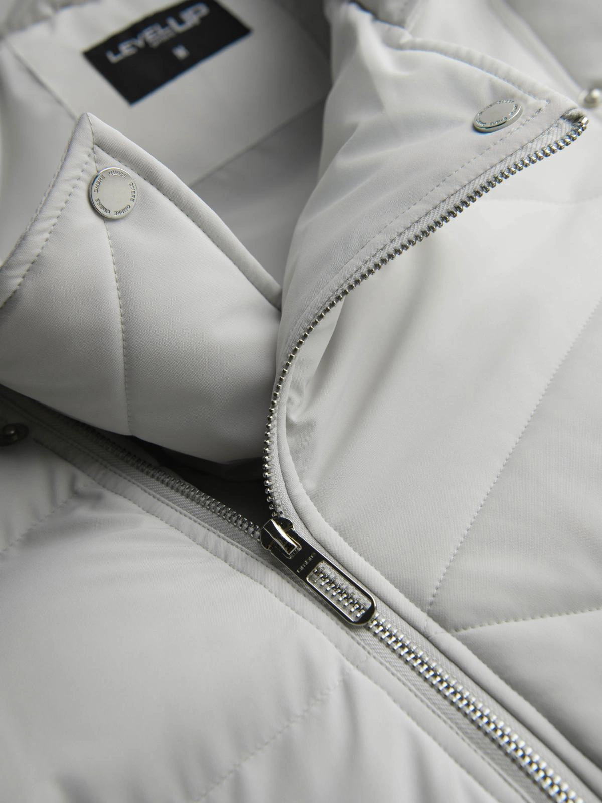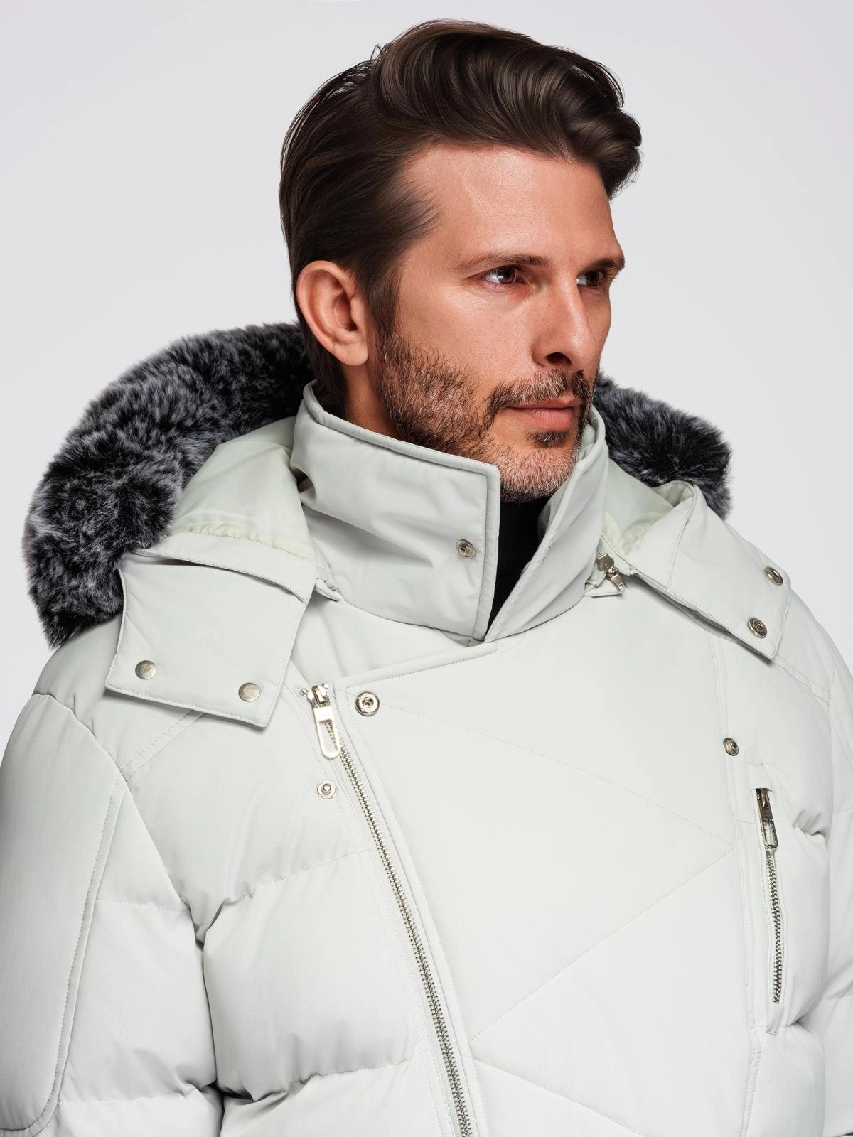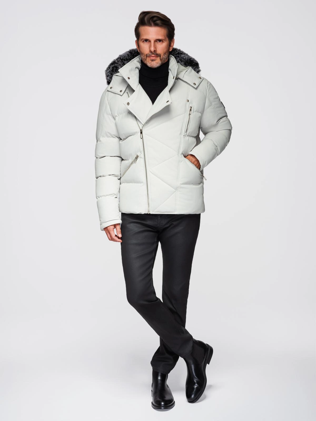 Pikowana kurtka męska o kroju ramoneski z kapturem - jasnoszara V4 OM-JAHP-0252