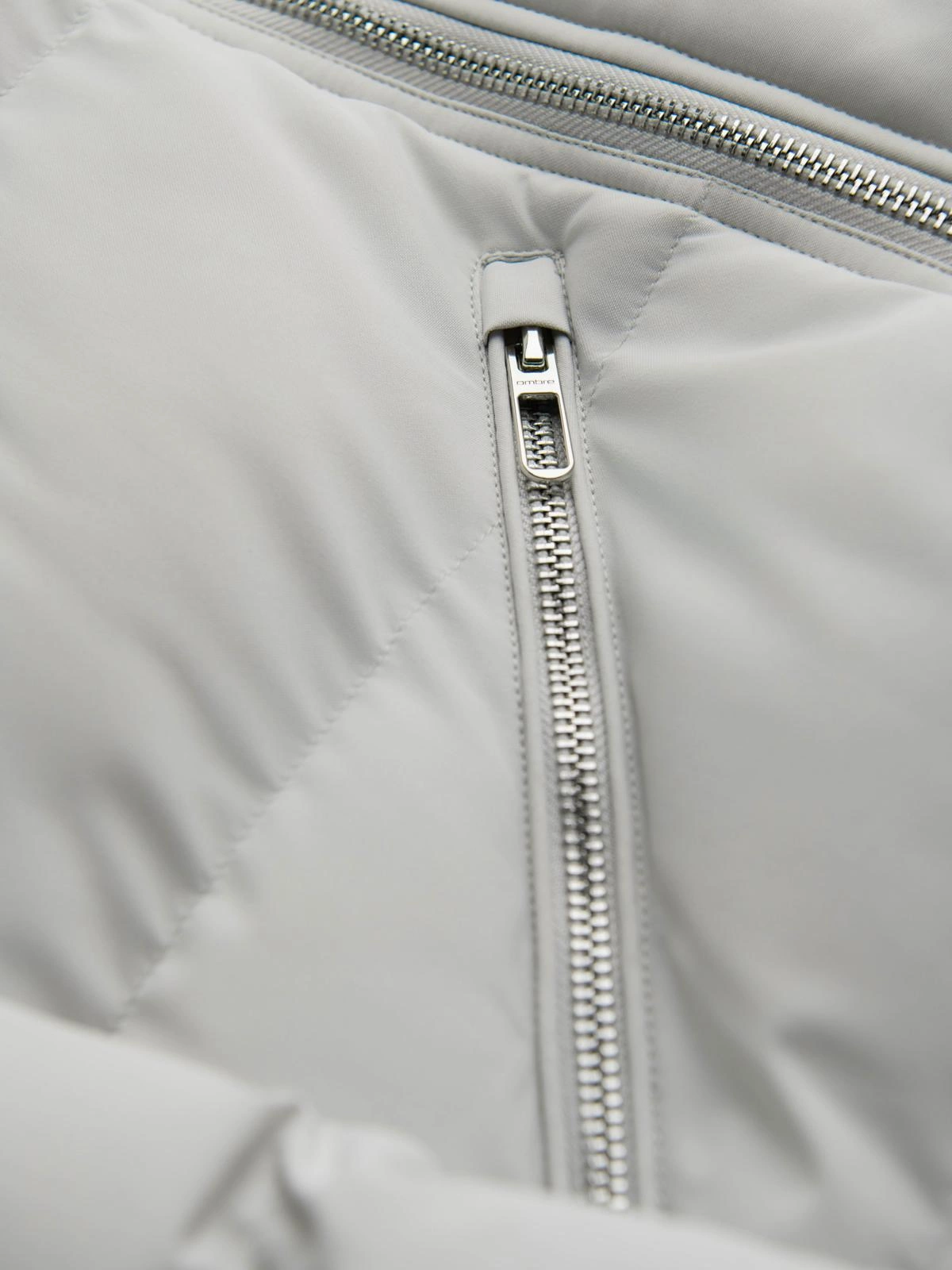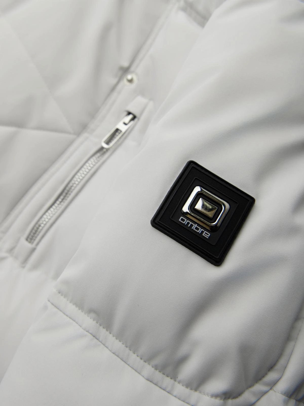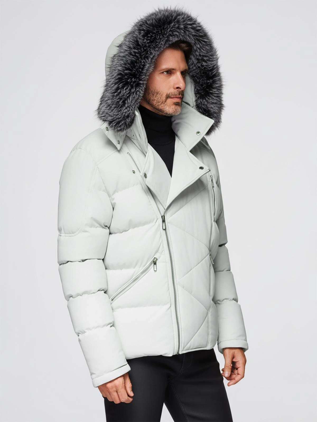 Pikowana kurtka męska o kroju ramoneski z kapturem - jasnoszara V4 OM-JAHP-0252