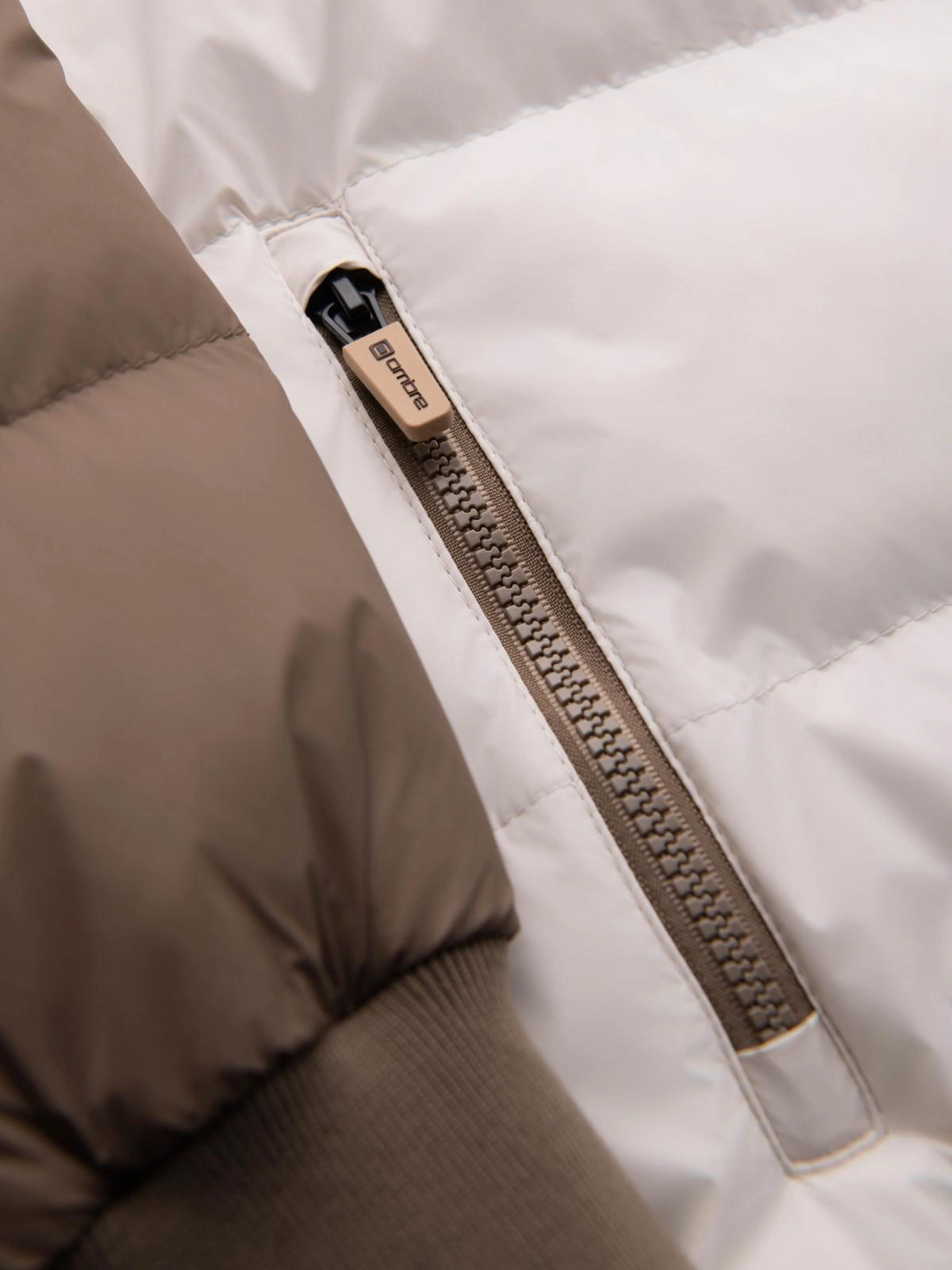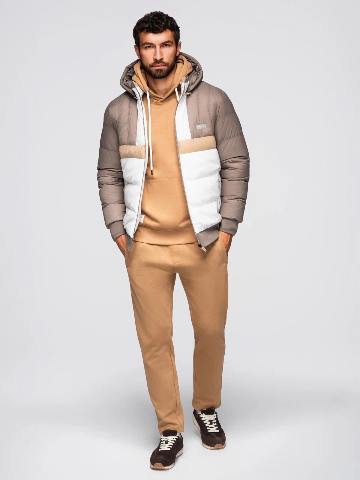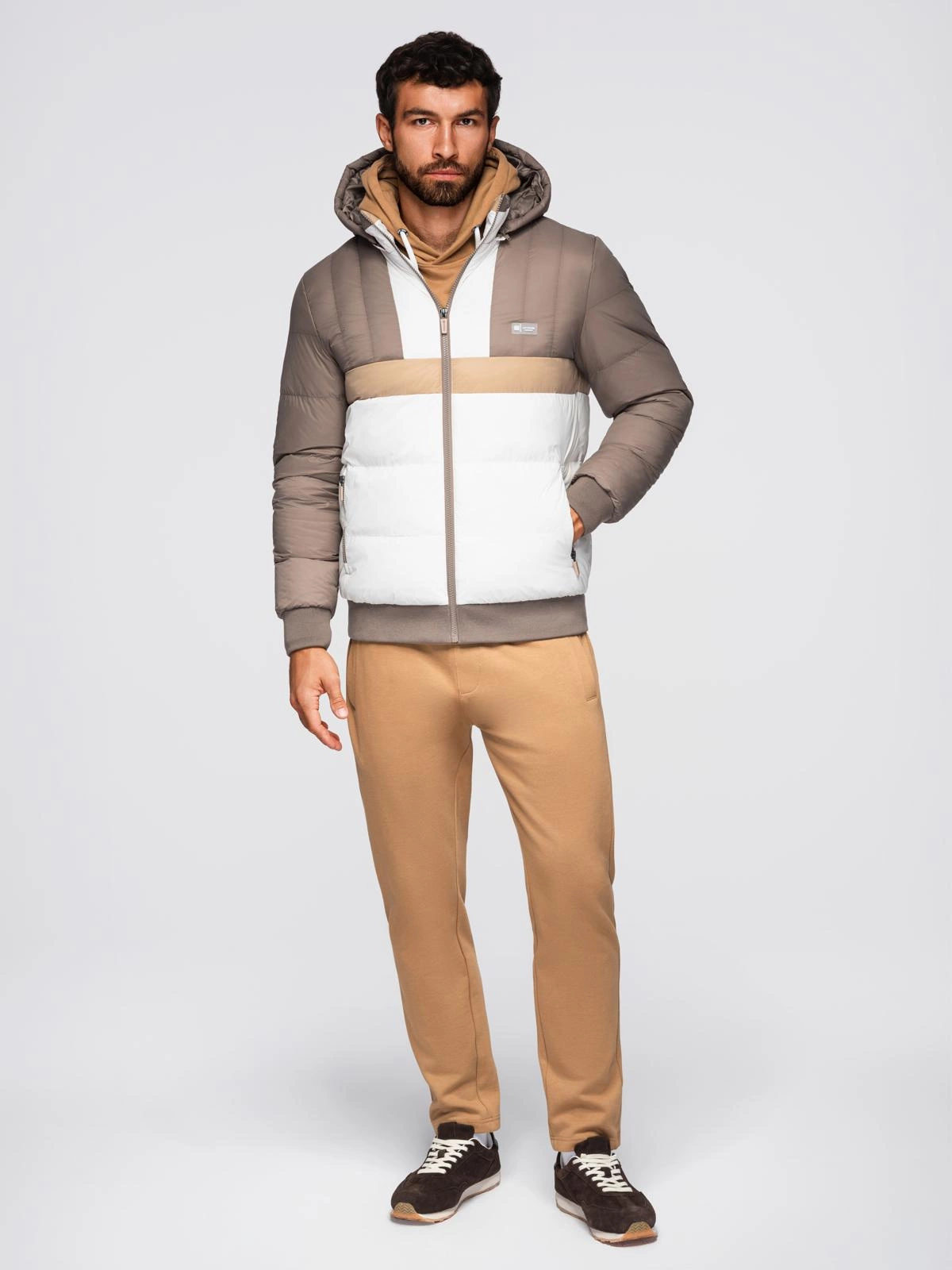- Kolorowa sportowa męska kurtka w stylu retro – beżowo-biała V2 OM-JALP-0296