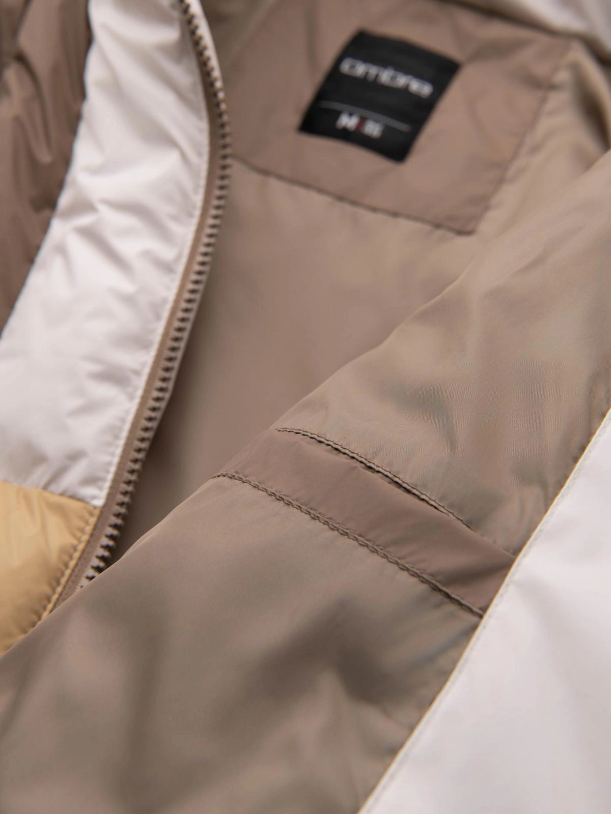 Kolorowa sportowa męska kurtka w stylu retro – beżowo-biała V2 OM-JALP-0296