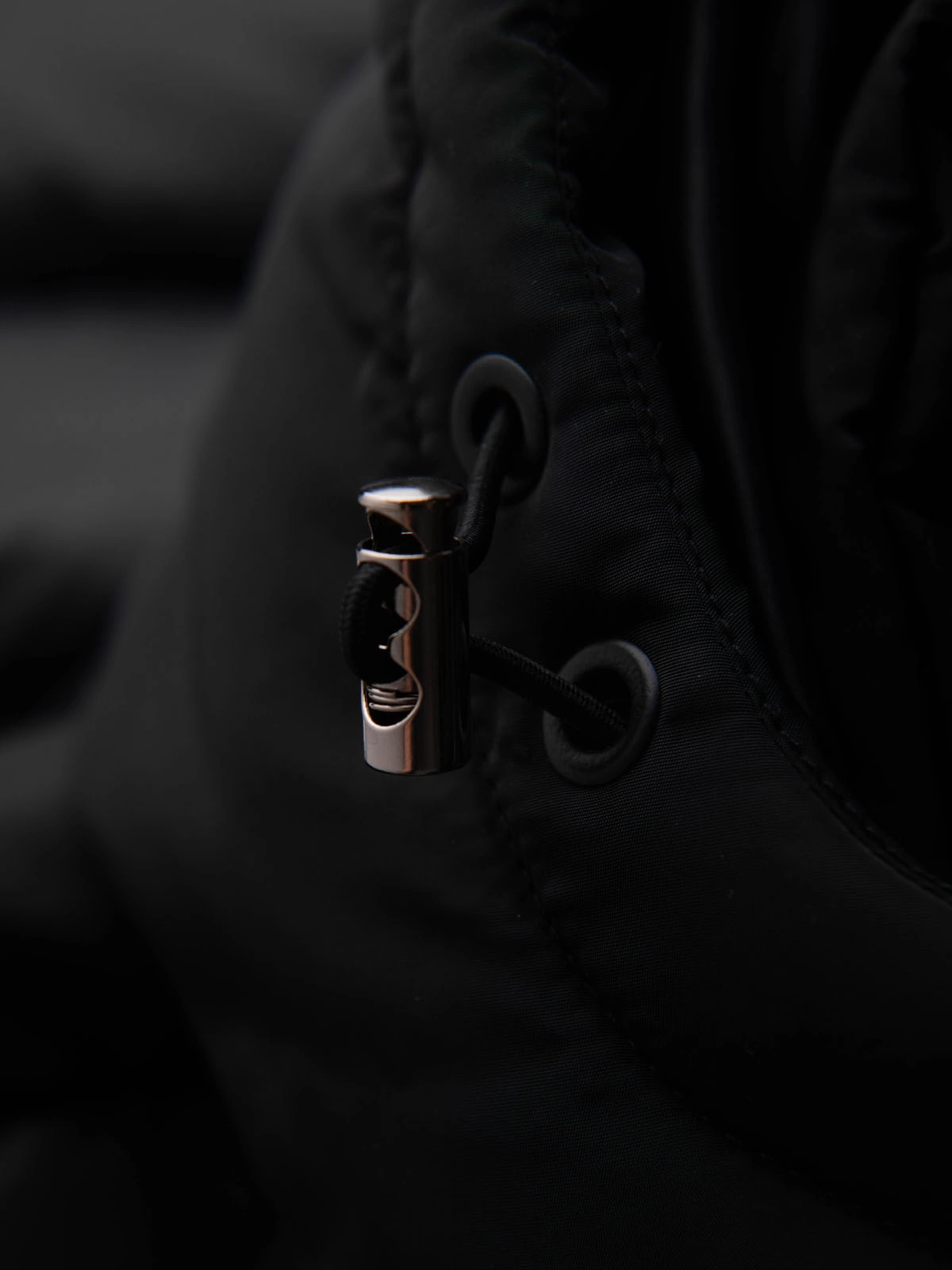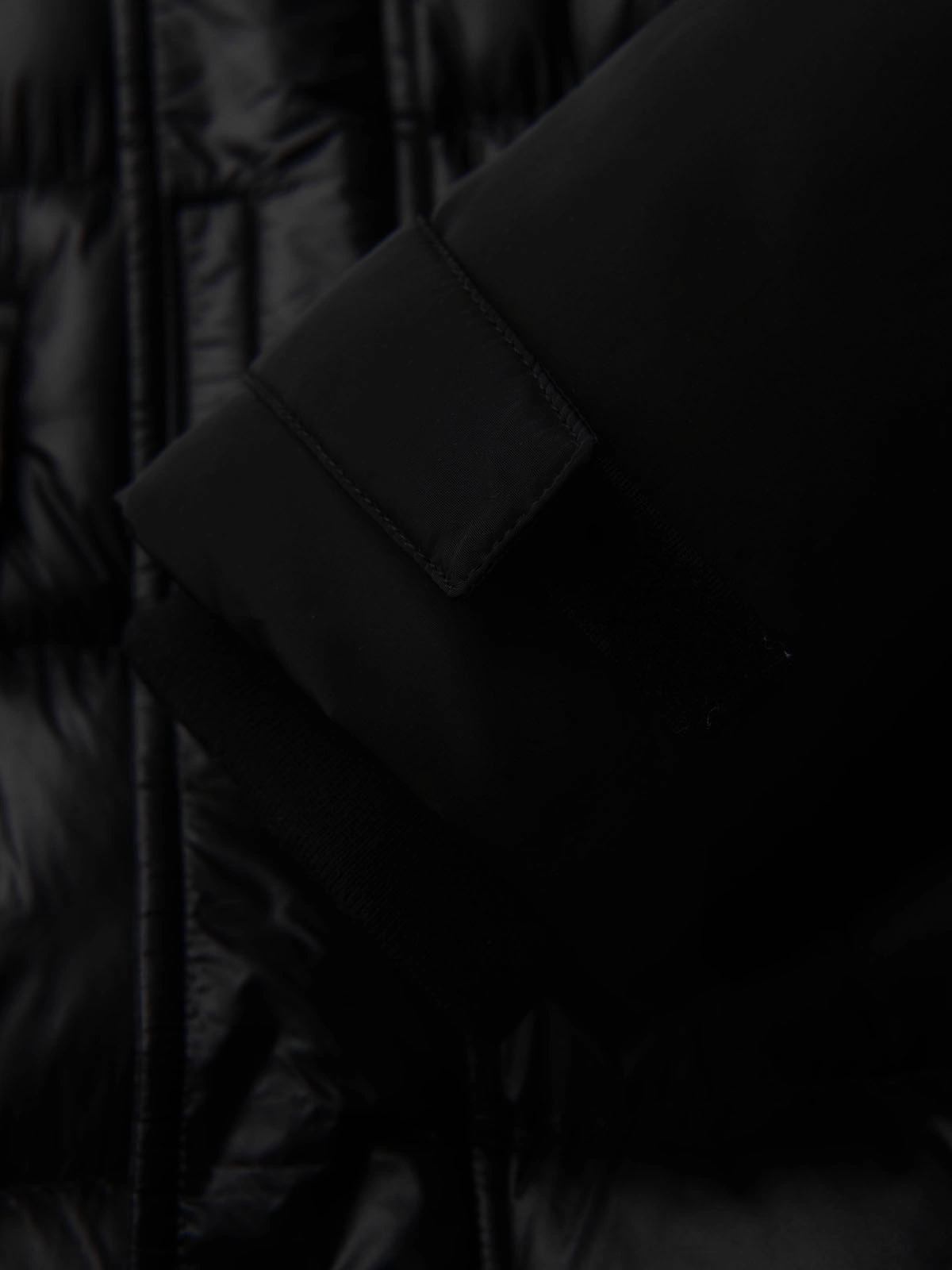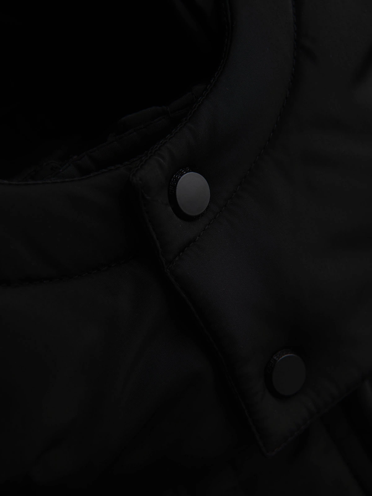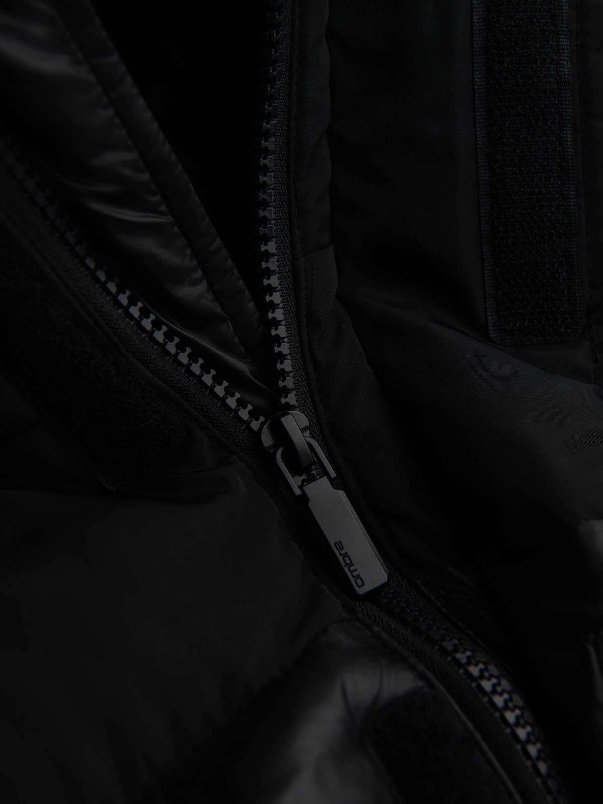 Kurtka pikowana męska z wysokim kołnierzem i kapturem – czarna V1 OM-JALJ-0266