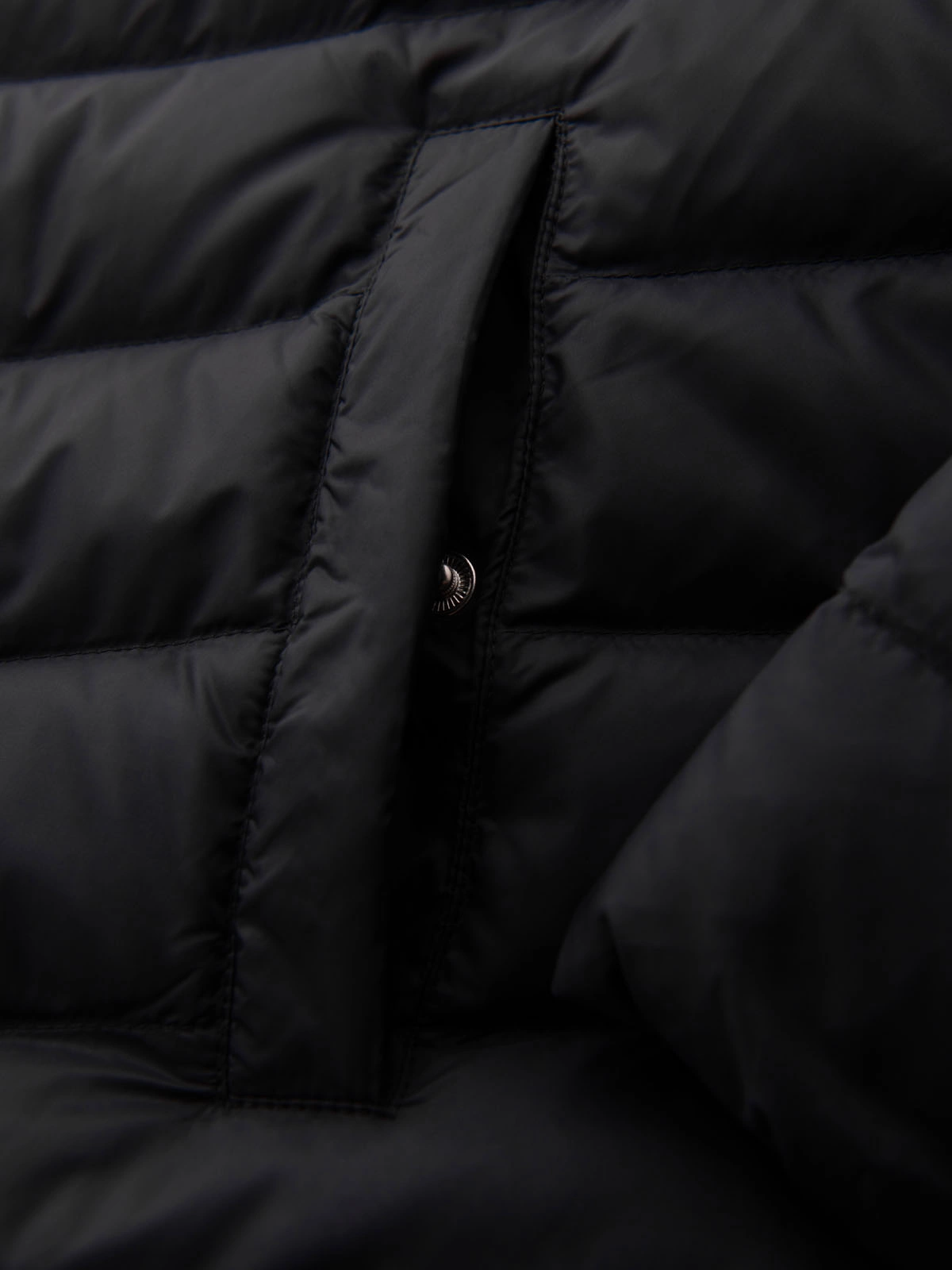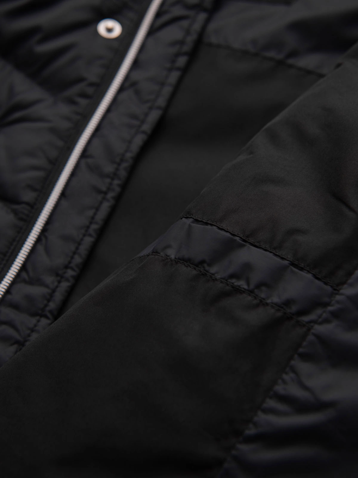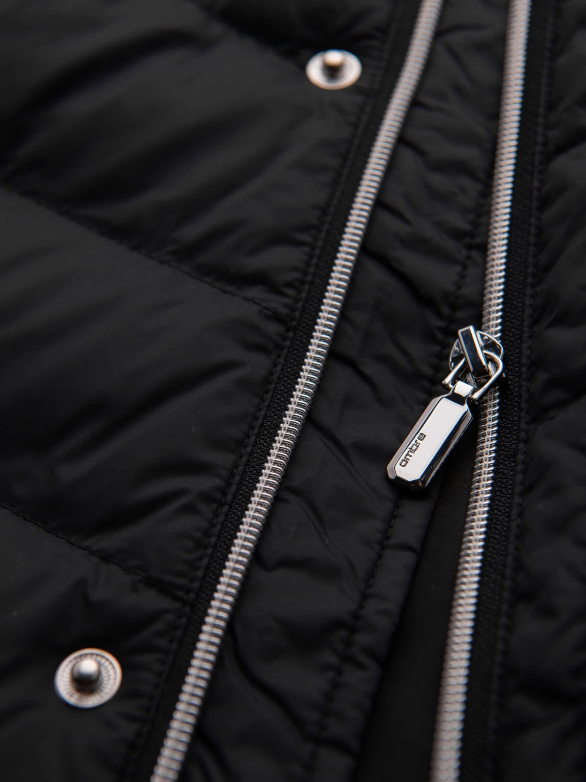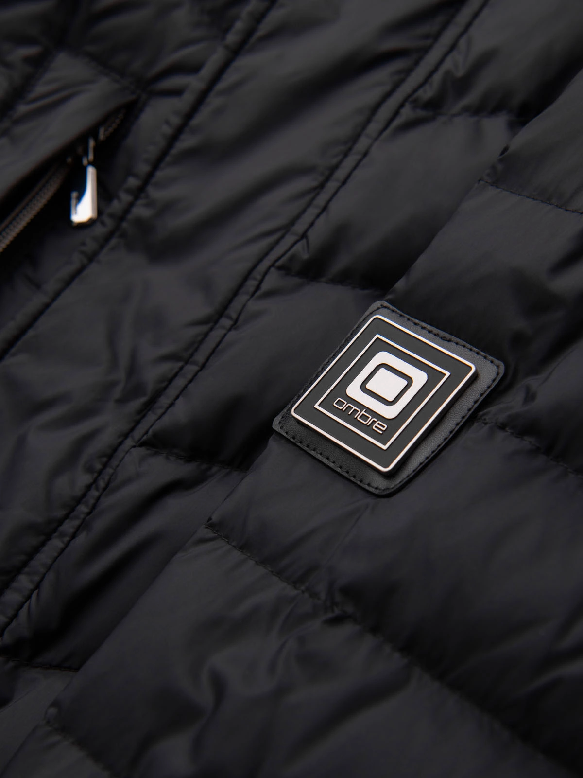 Długa pikowana kurtka męska z naturalnym wypełnieniem - czarna V1 OM-JALJ-0212