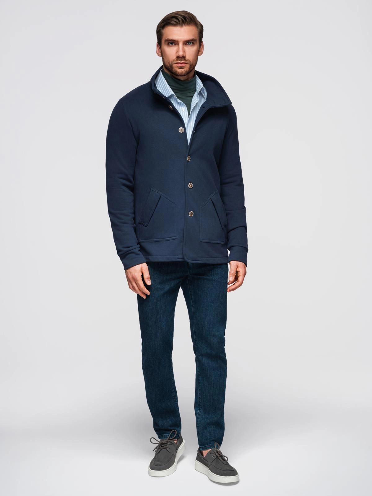 Bluza męska zapinana na guziki ze stójką – granatowa V4 OM-SSZP-0240