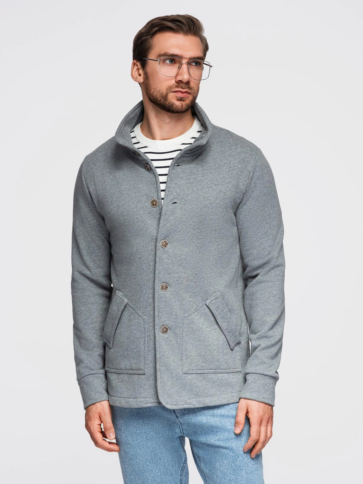 Bluza męska zapinana na guziki ze stójką – szary melanż V7 OM-SSZP-0240
