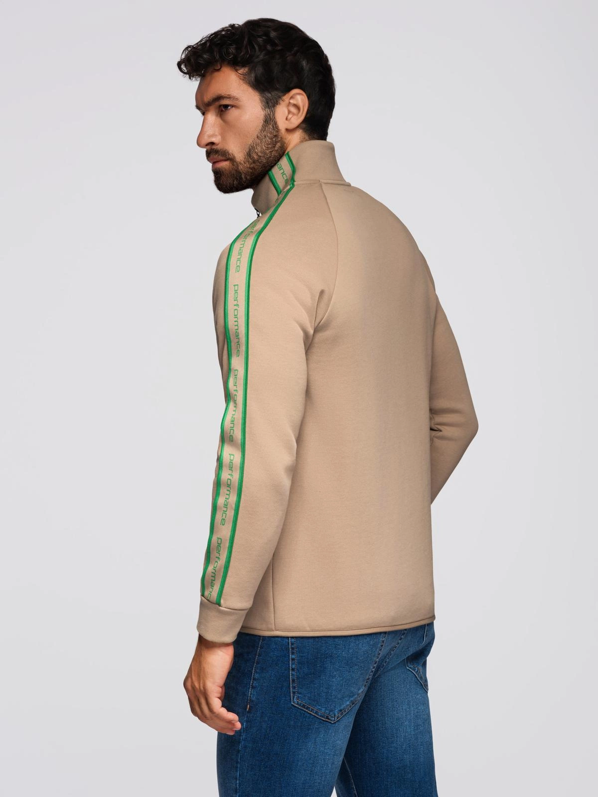 Bluza męska rozpinana z lampasami i wysoką stójką – brązowa V1 OM-SSZP-0224