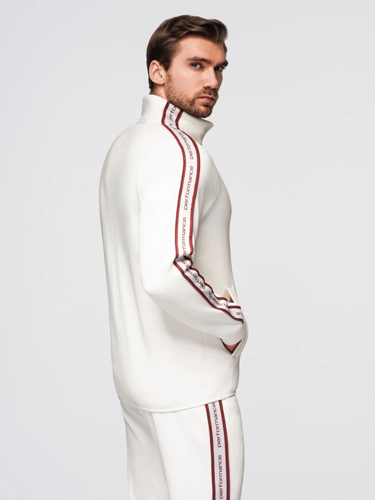 Męska bluza rozpinana z lampasami i wysoką stójką – kremowa V2 OM-SSZP-0224