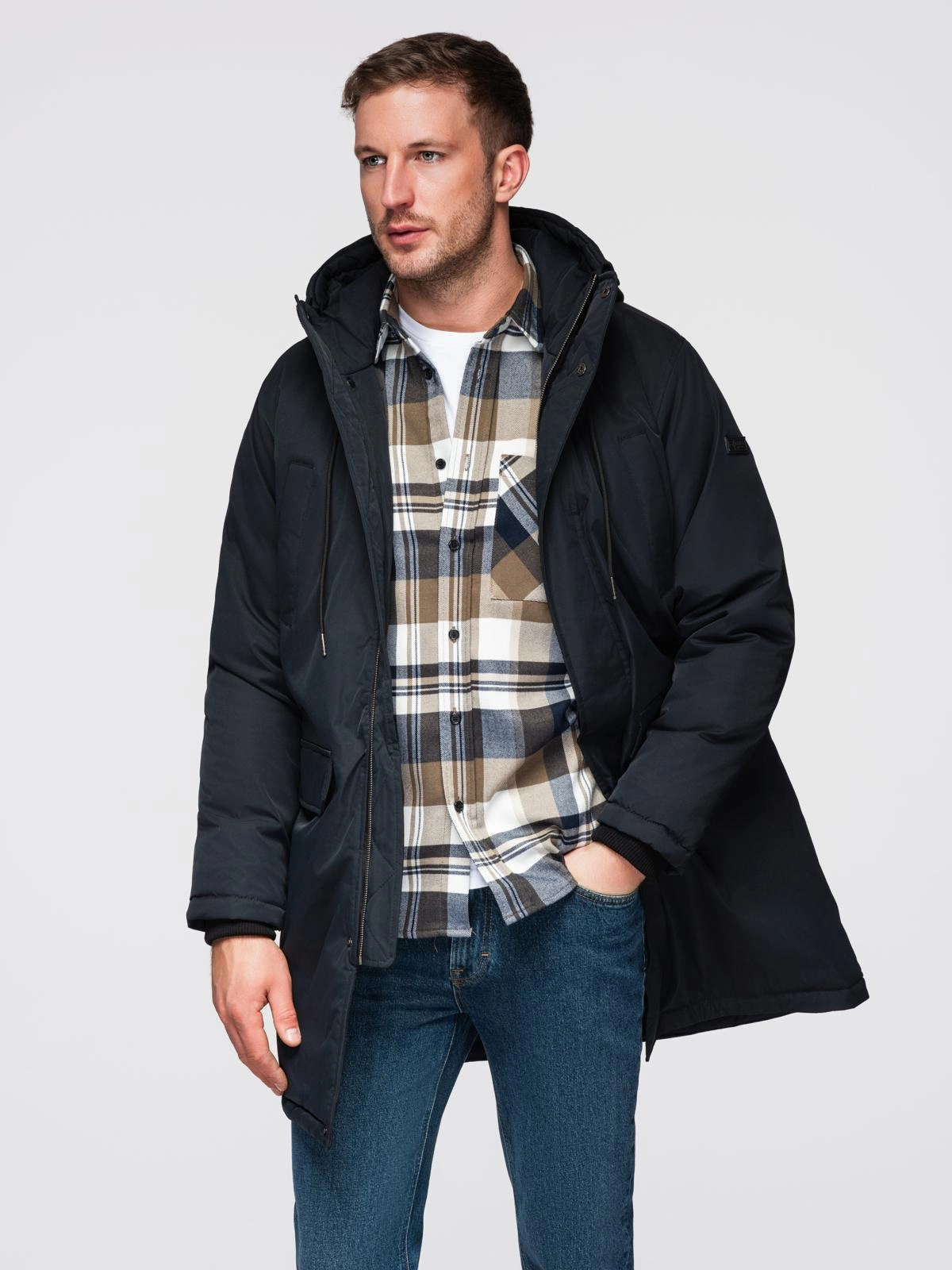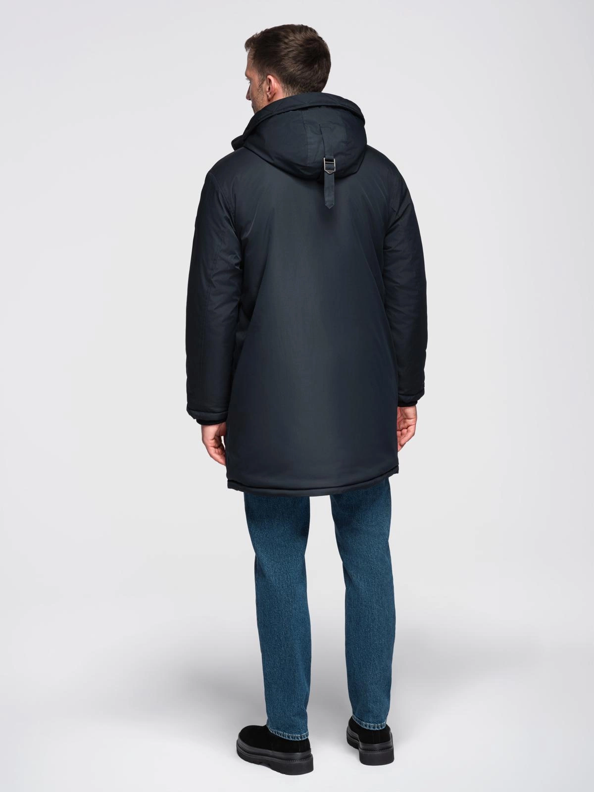 Klasyczna długa męska kurtka typu parka – czarna V6 OM-JAPJ-0313