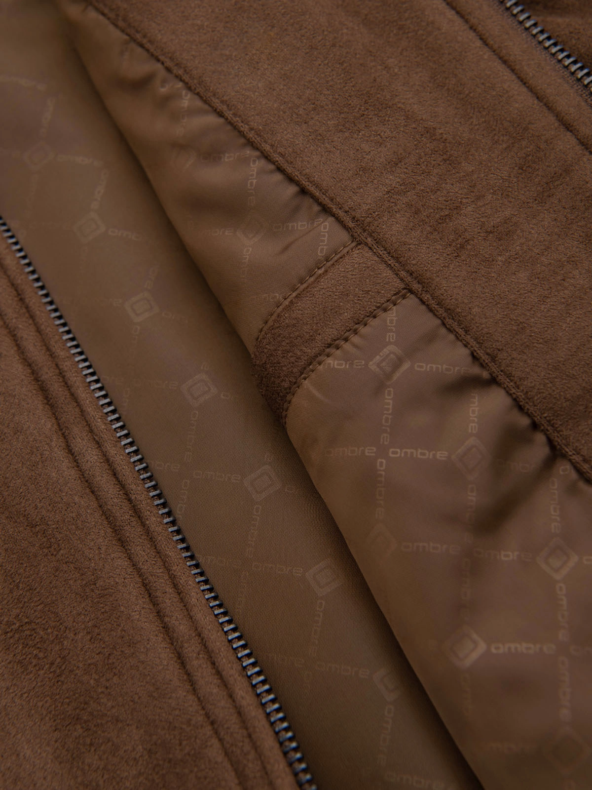Kurtka bomberka męska z imitacji zamszu - brązowa V1 OM-JAFL-0232