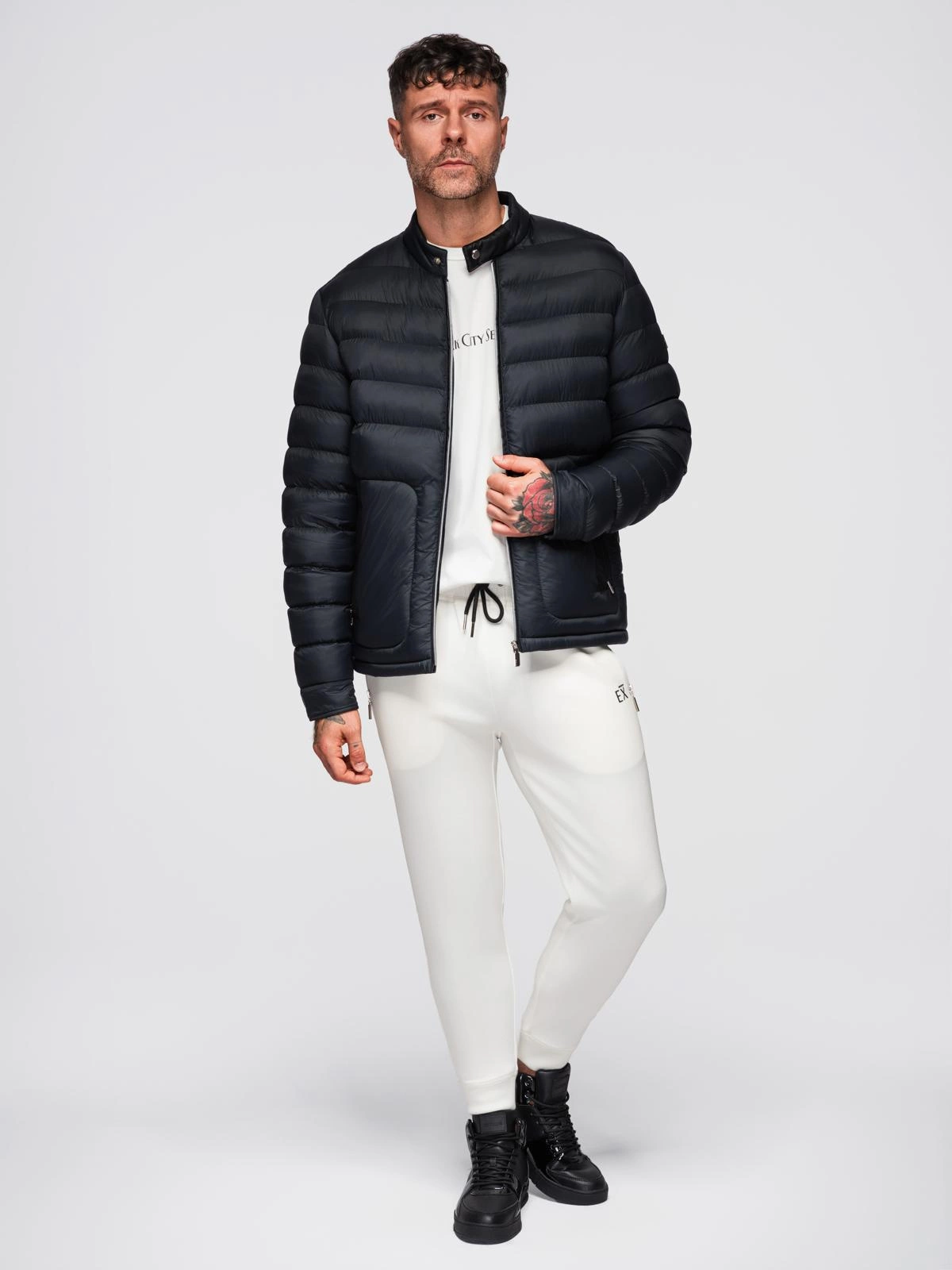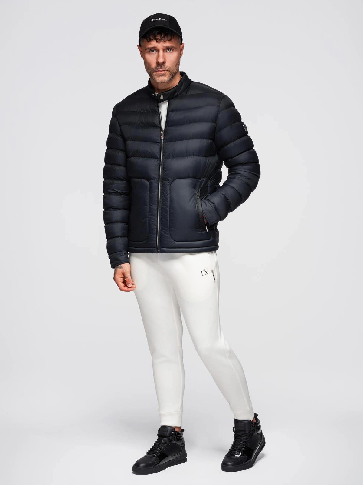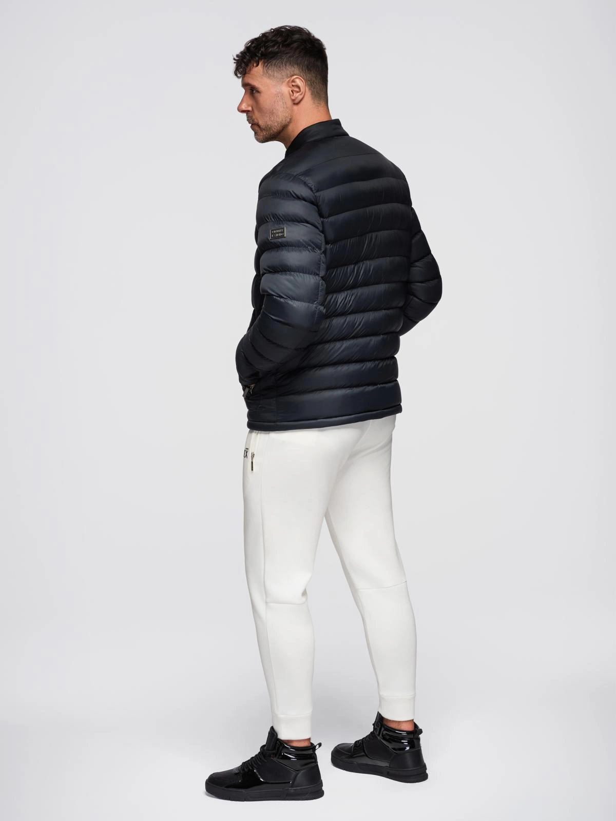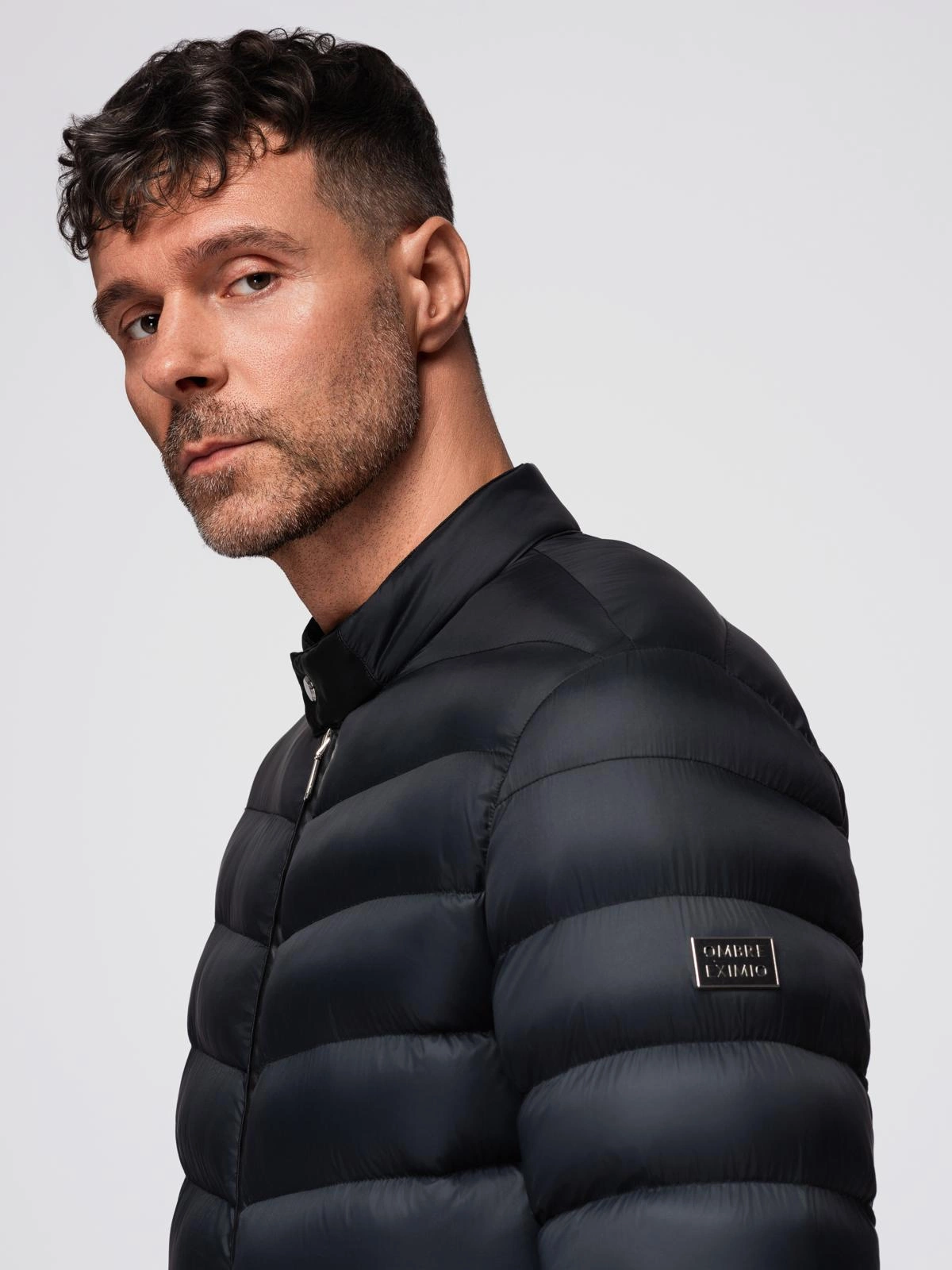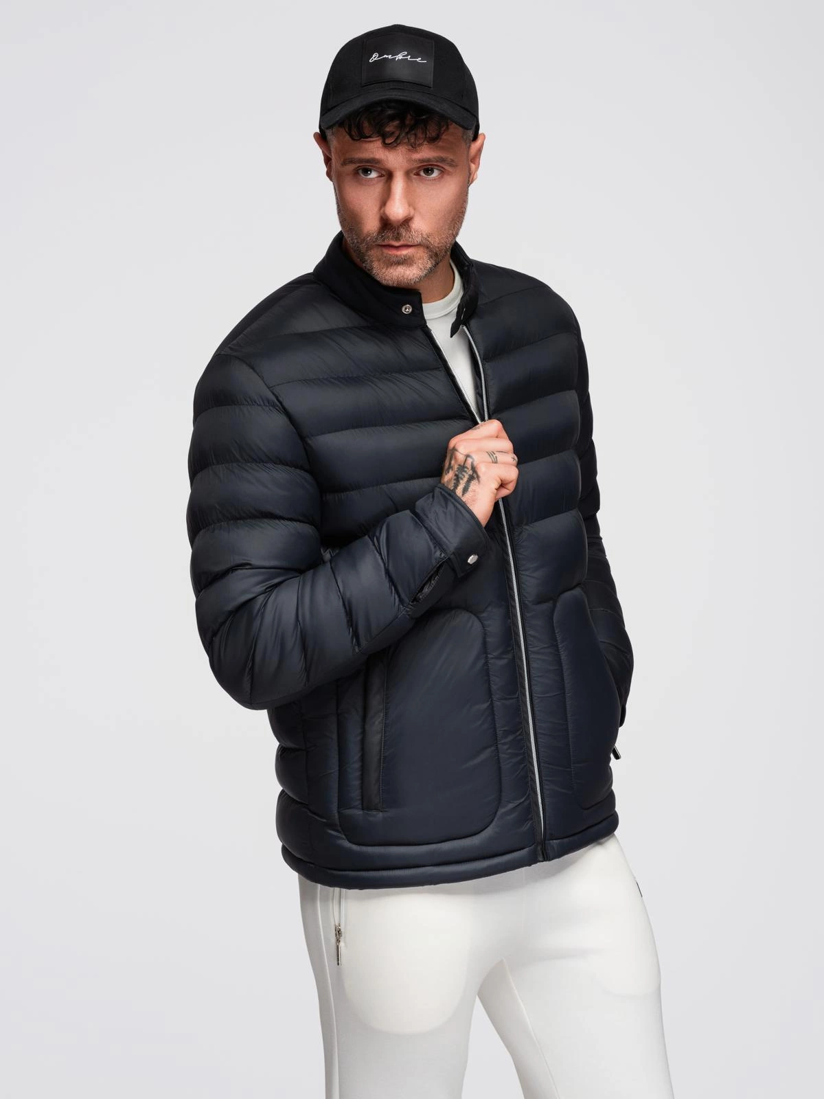 Pikowana klasyczna kurtka męska ze stójką – czarna V1 OM-JALP-0261