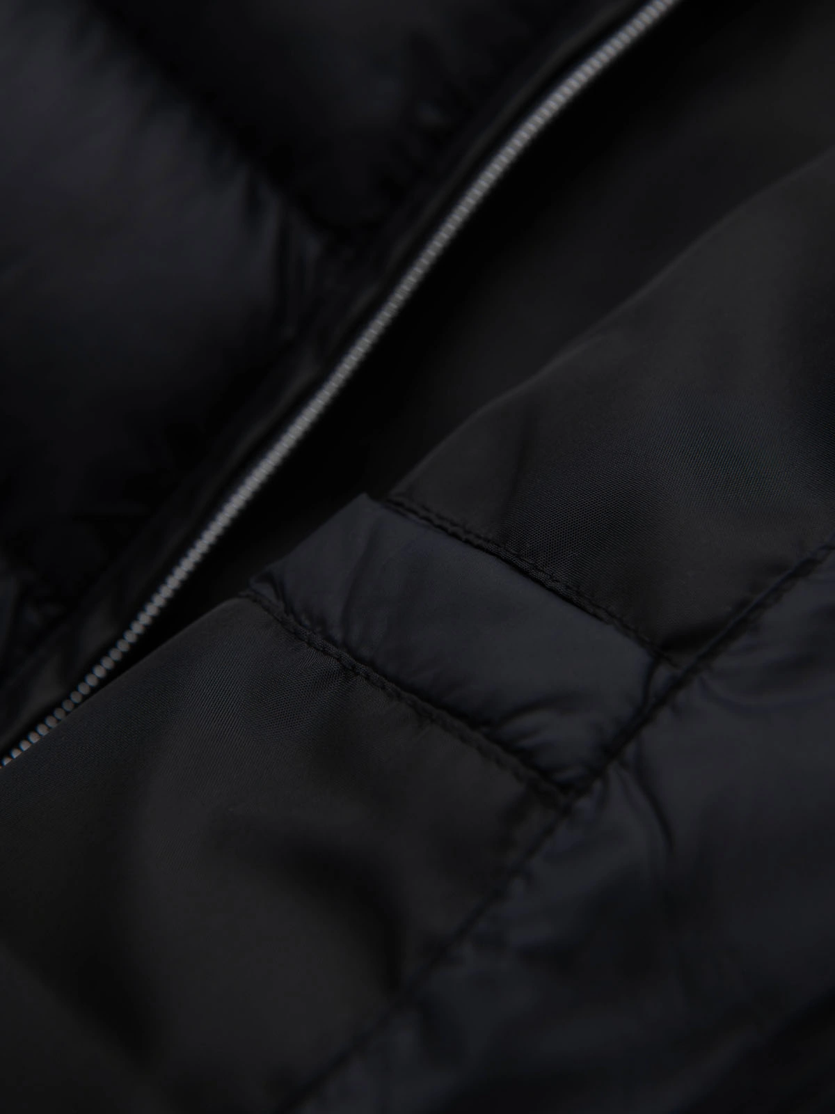 Ta lekka, pikowana kurtka z linii EXIMIO to idealne połączenie elegancji i komfortu. Dzięki minimalistycznemu designowi z subtelnymi detalami i neutralnemu kolorowi sprawdzi się w miejskich i casualowych stylizacjach. Stójka z patką, srebrny zamek oraz wyraziste przeszycia nadają jej nowoczesnego charakteru, a wygodne kieszenie i lekka ocieplina zapewniają funkcjonalność na co dzień.