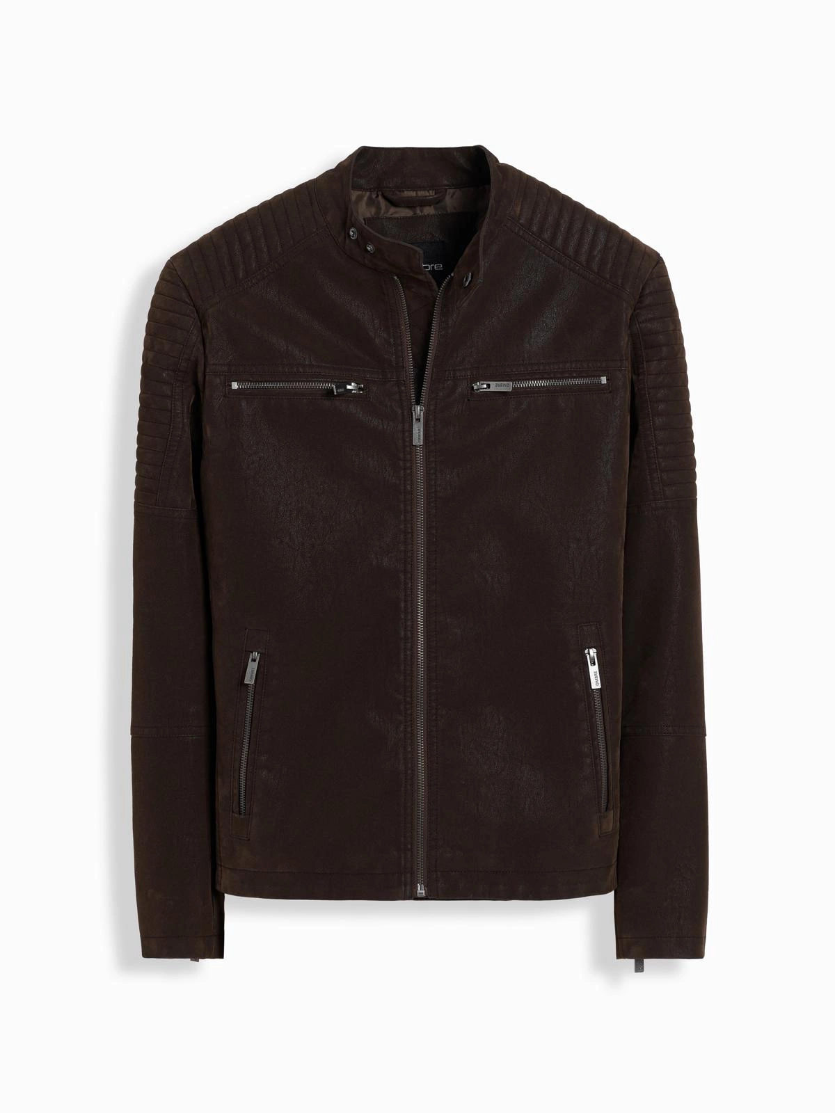 - Męska stylowa kurtka biker z eco skóry ze stójką - ciemnobrązowa V1 C637