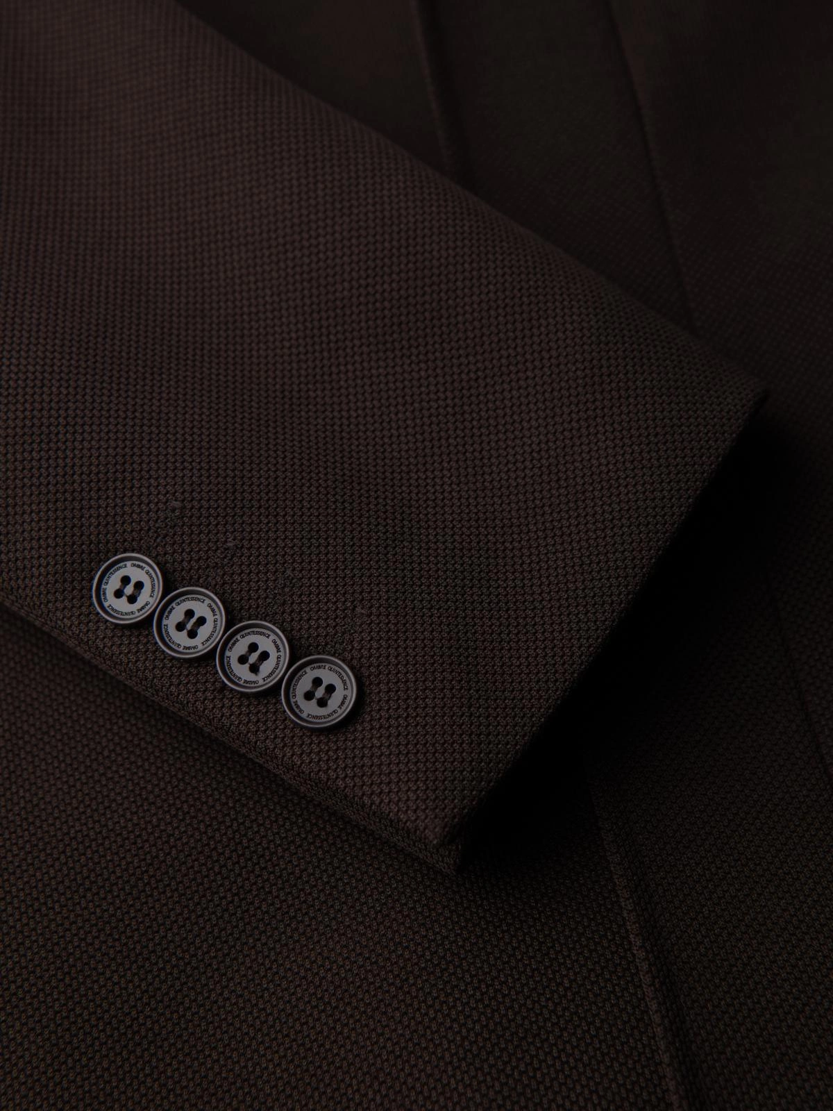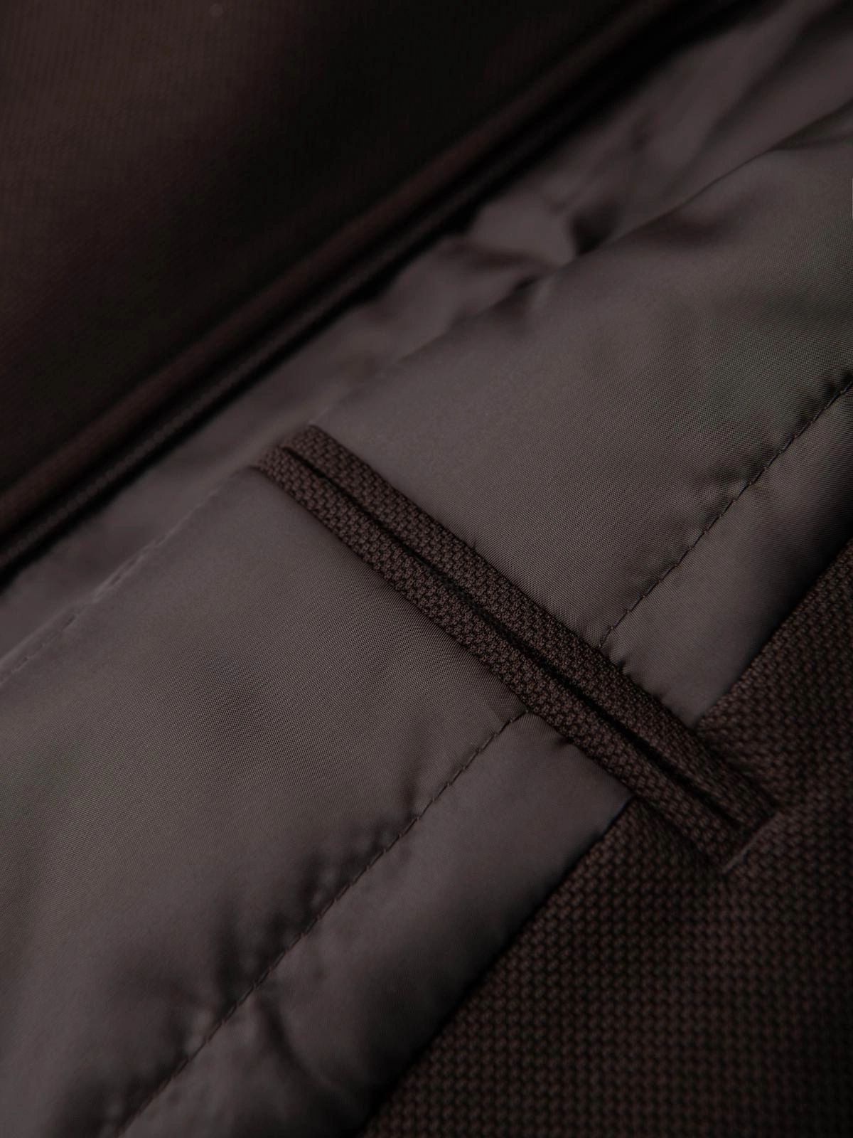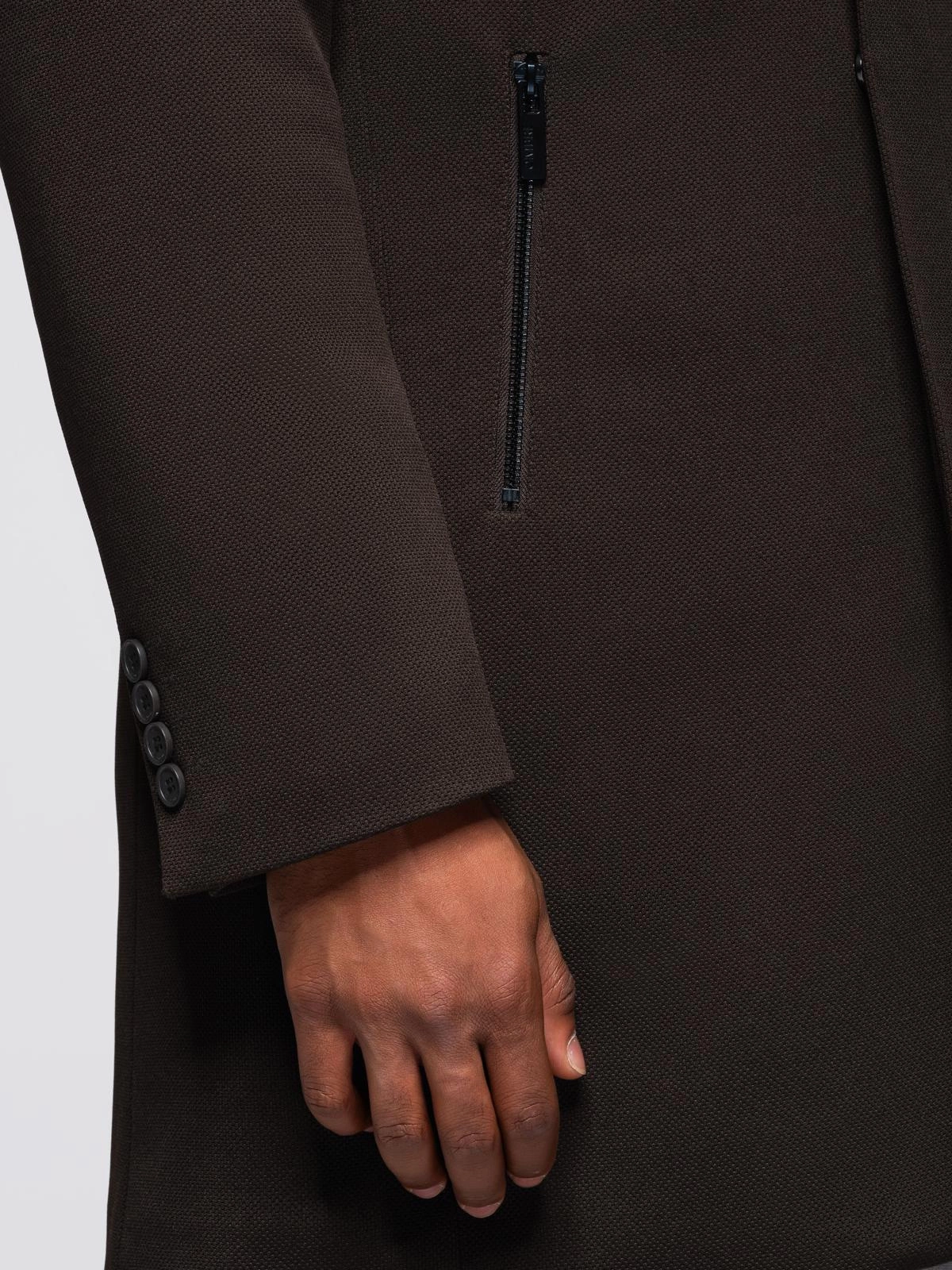 Strukturalny dopasowany płaszcz męski z wysokim kołnierzem – ciemnobrązowy V5 OM-COWC-0136