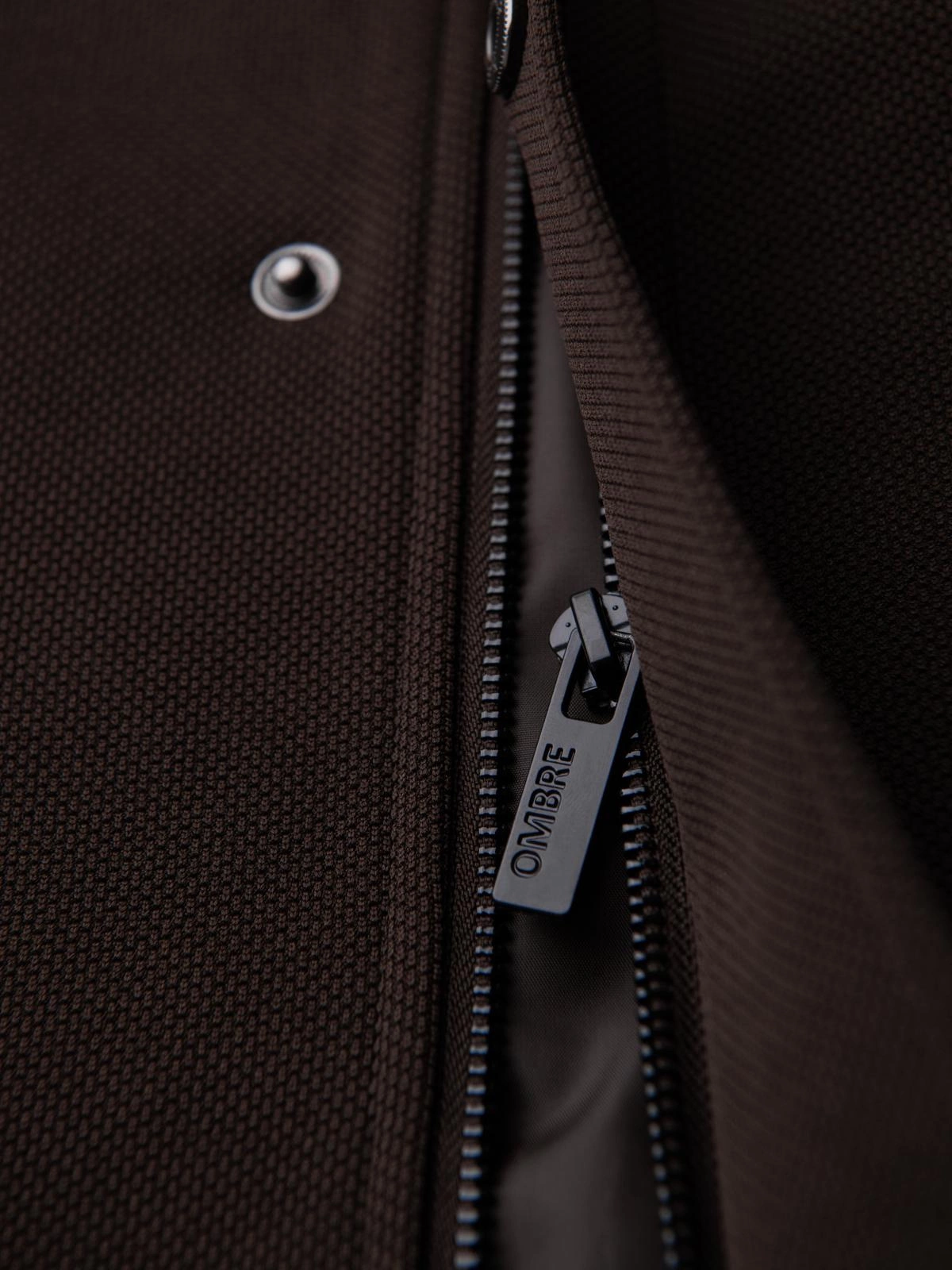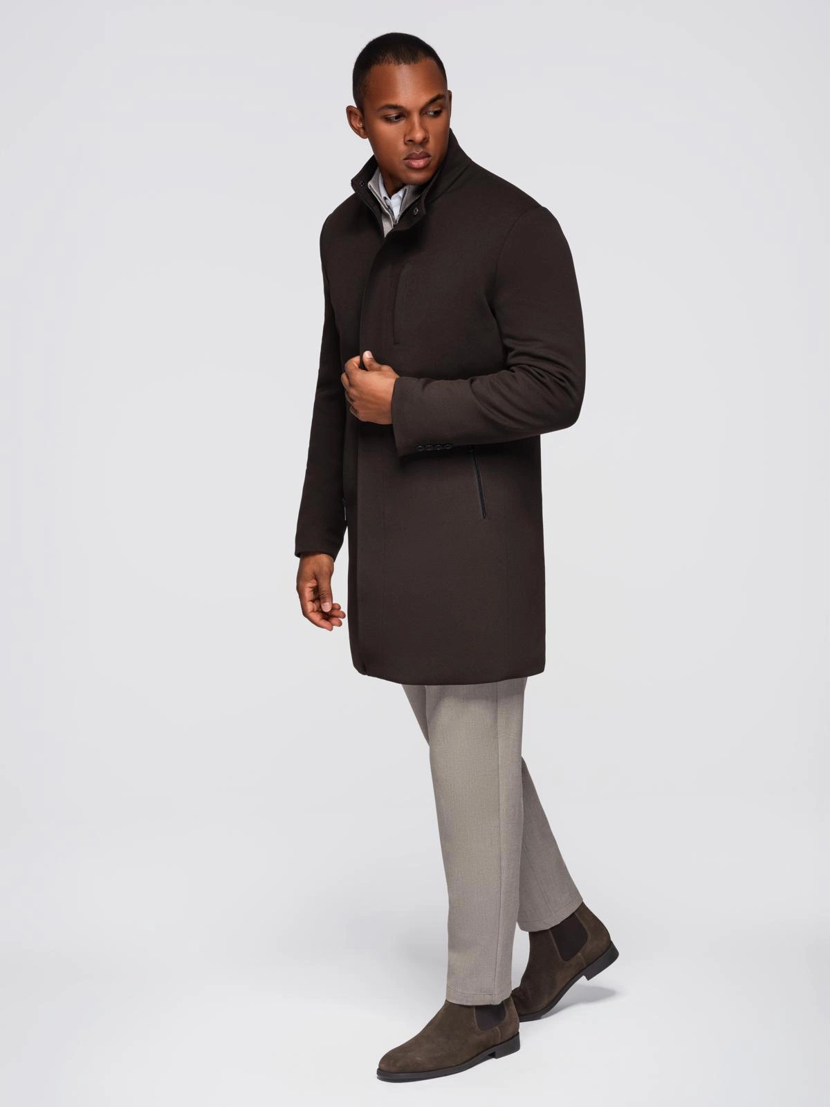 - Strukturalny dopasowany płaszcz męski z wysokim kołnierzem – ciemnobrązowy V5 OM-COWC-0136