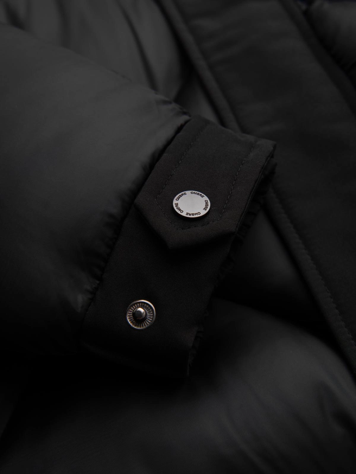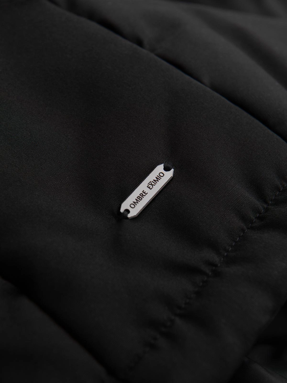 - Kurtka męska z kapturem z geometrycznym pikowaniem karo – czarna V1 OM-JAHP-0237