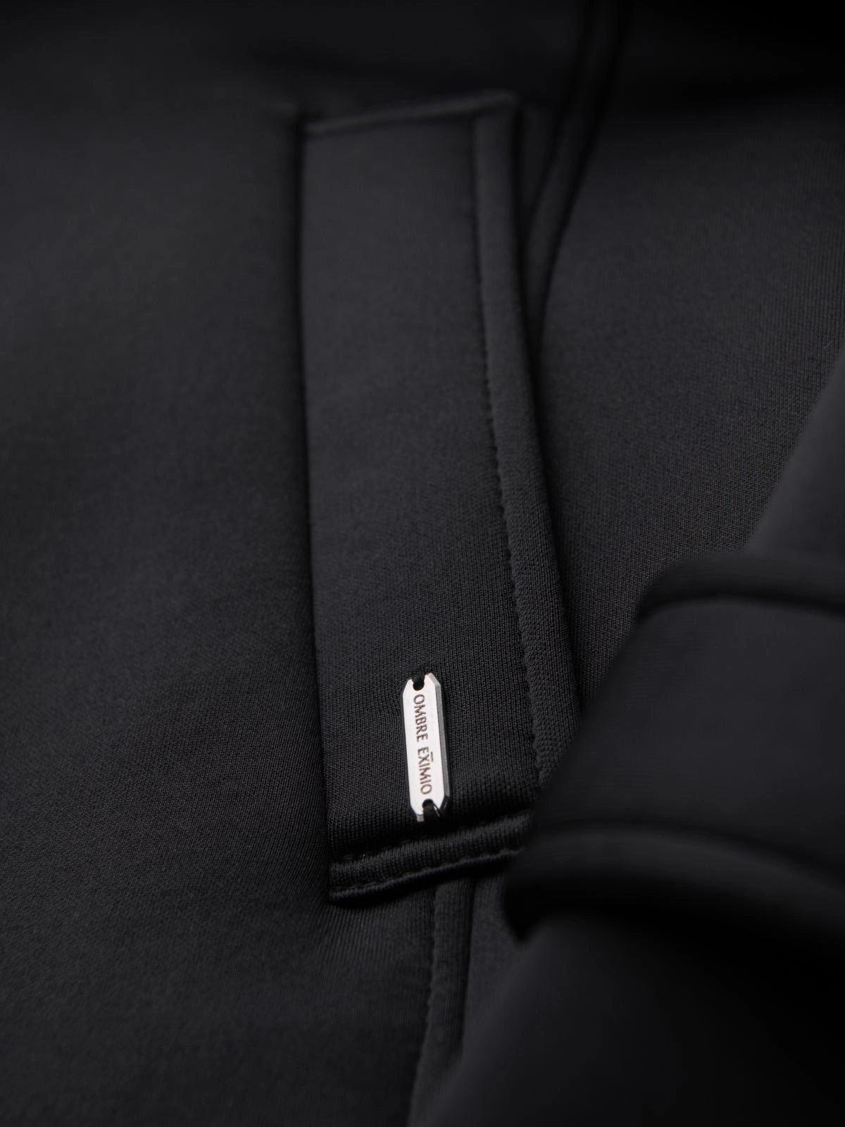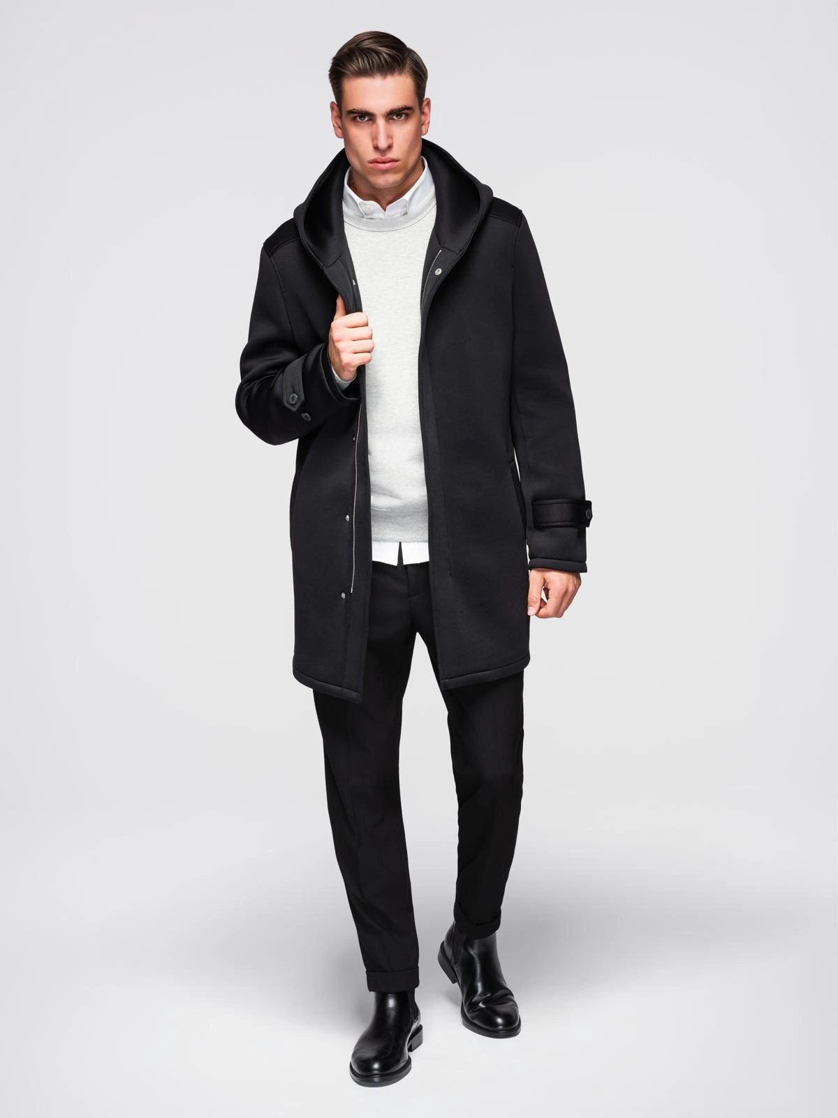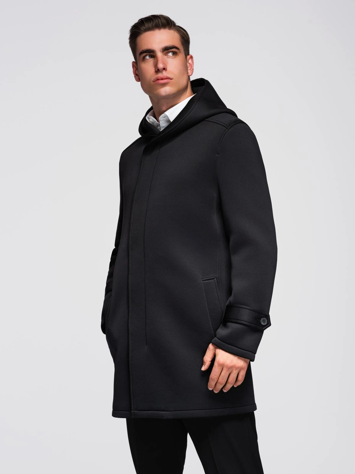 - Męski minimalistyczny płaszcz średniej długości z kapturem - czarny V4 OM-COLC-0144