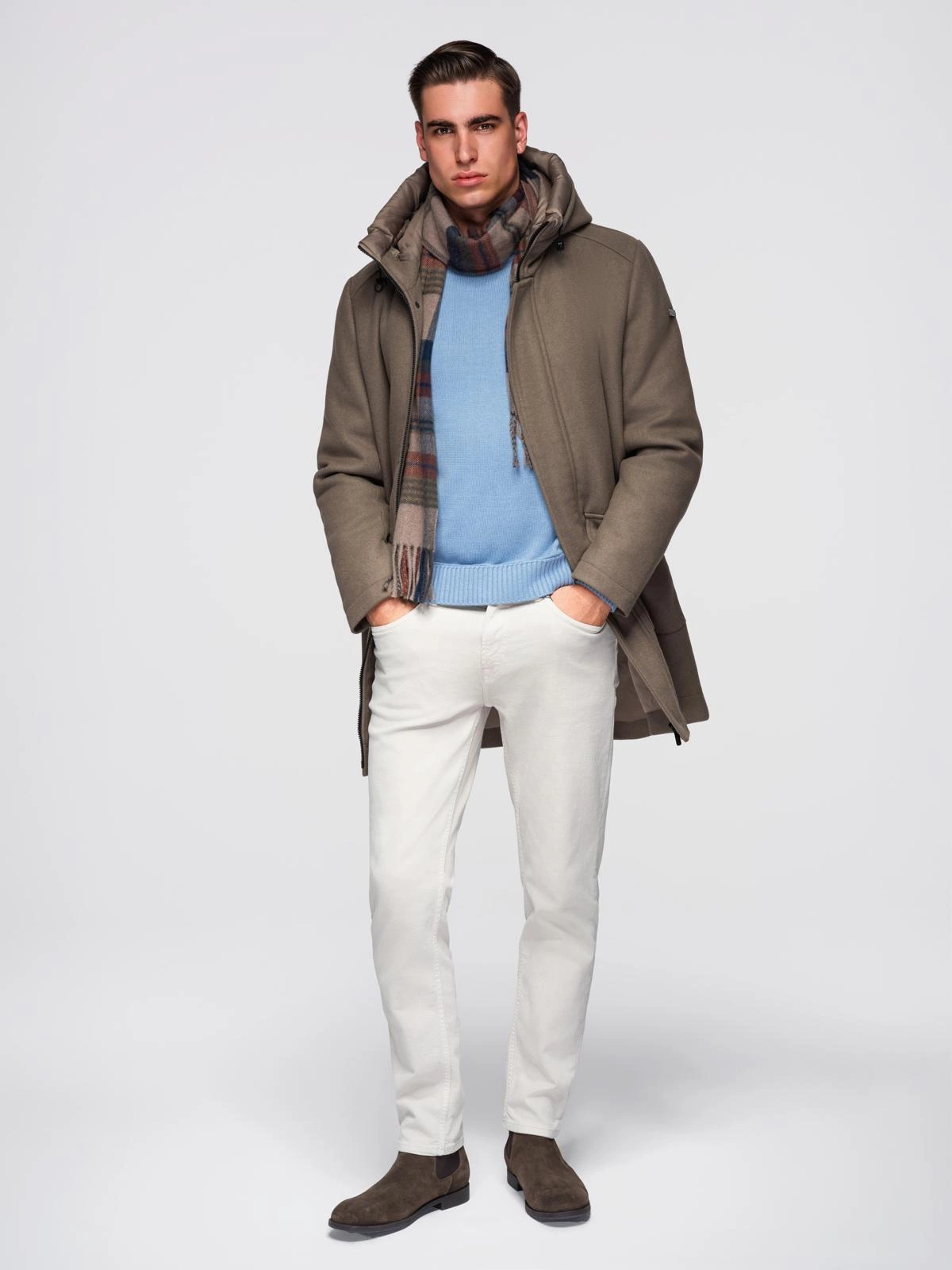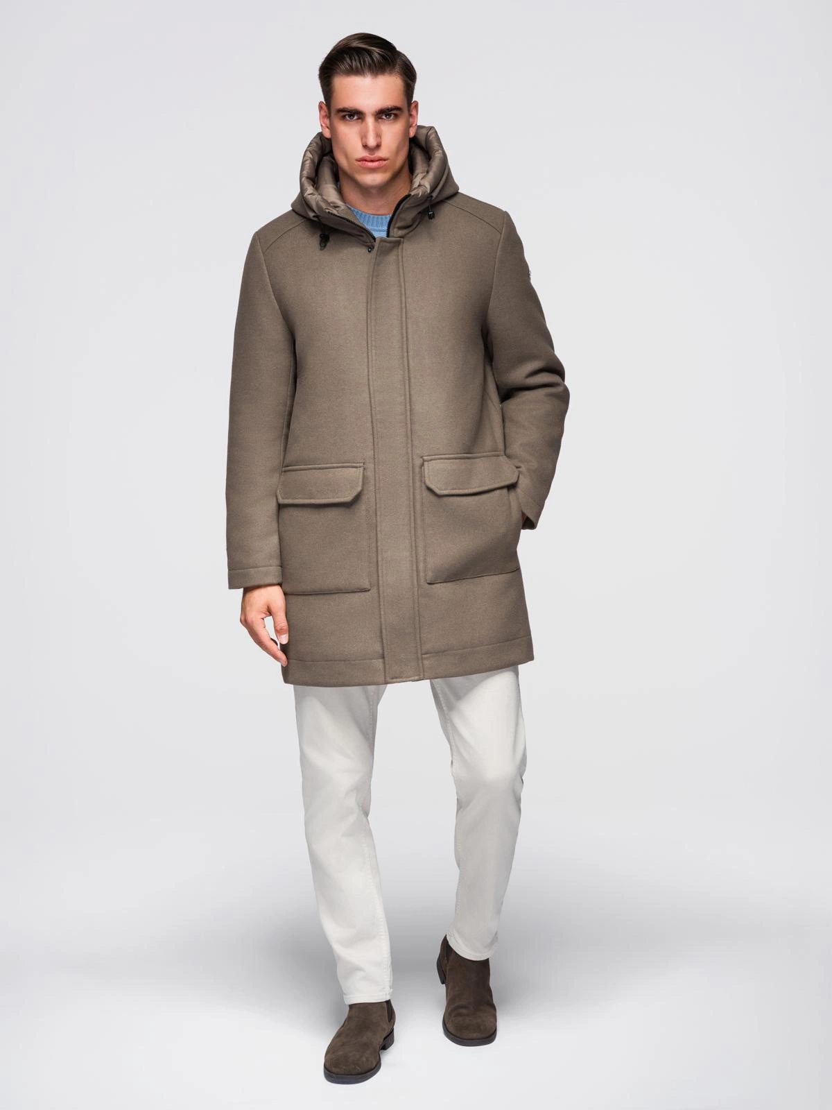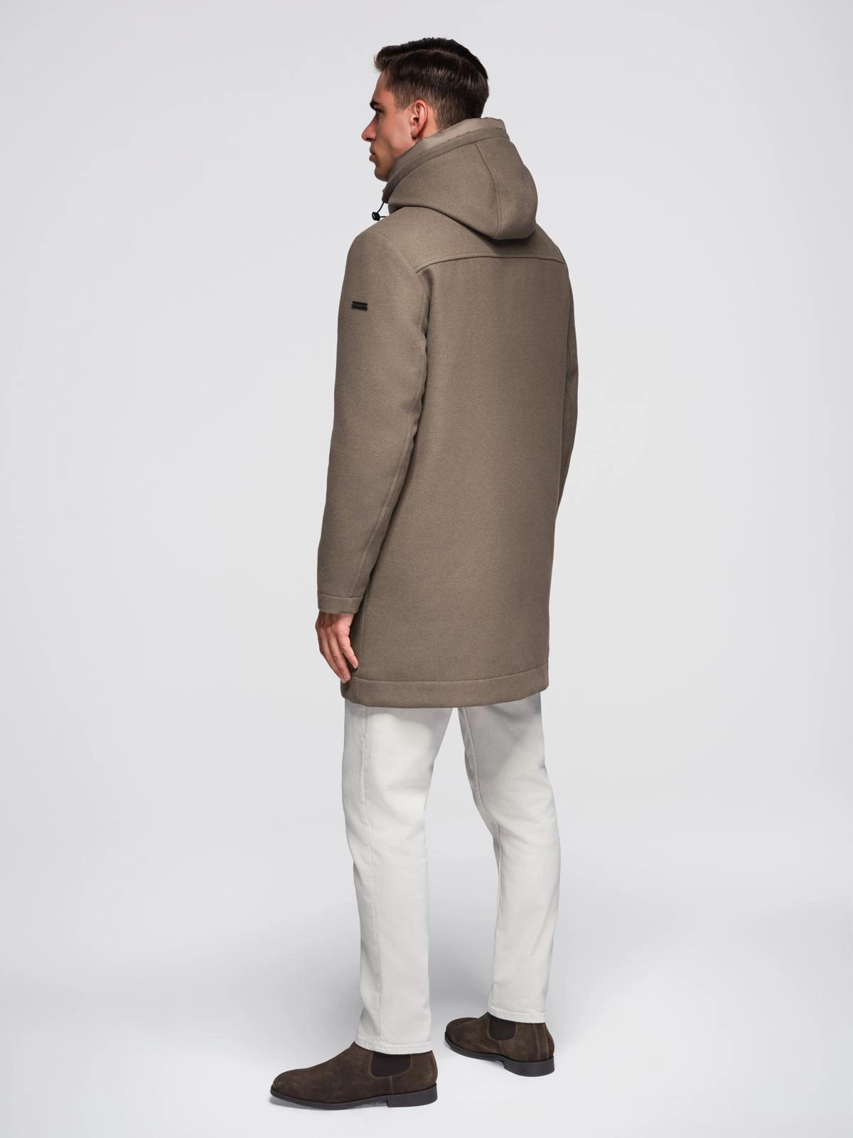 - Męski płaszcz parka z wełną i kapturem - khaki V2 OM-COWC-0132