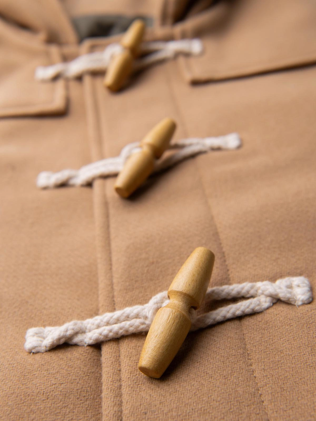 - Płaszcz męski z wełną i kapturem duffle coat – jasnobrązowy V1 OM-COWC-0131