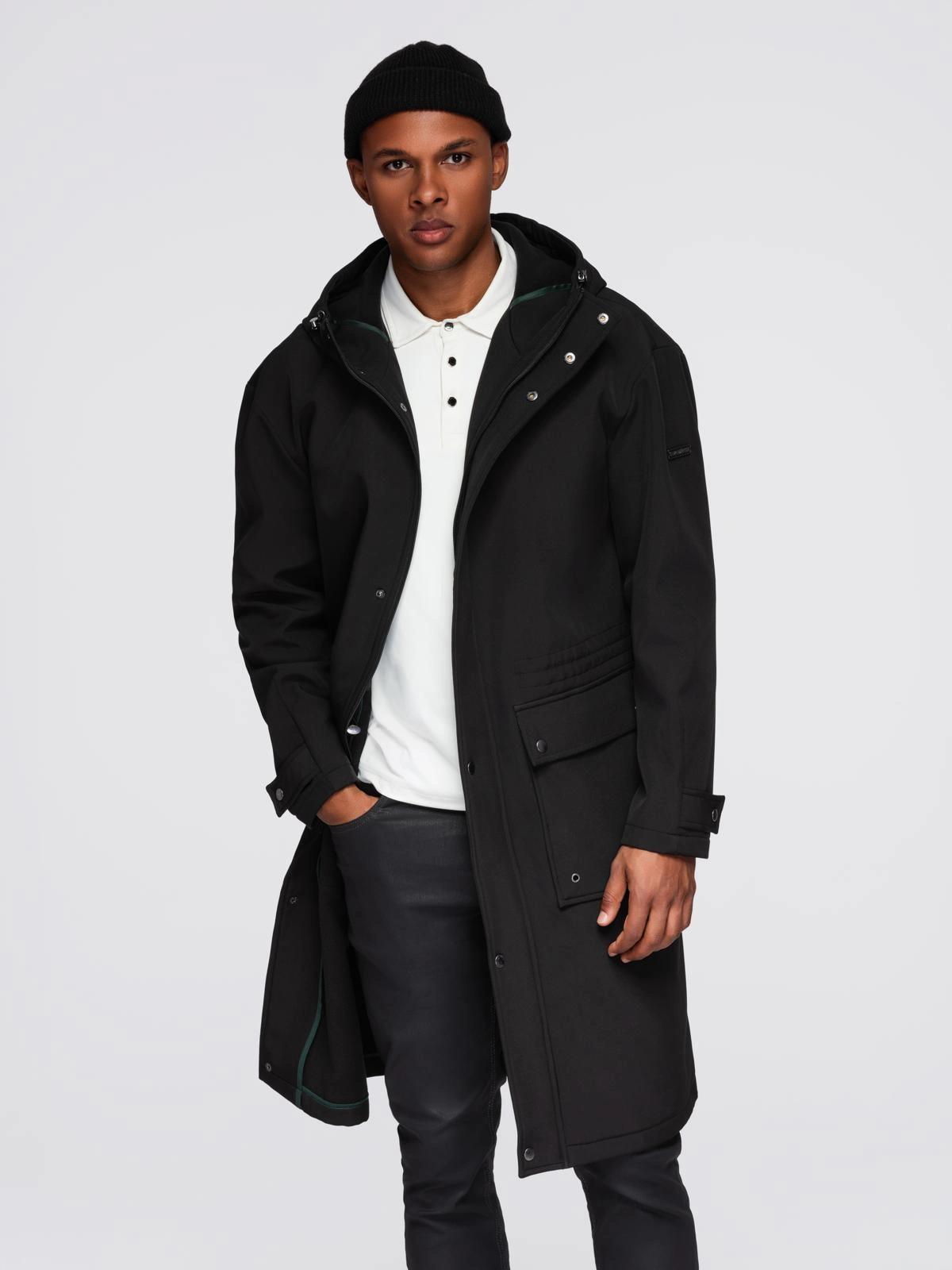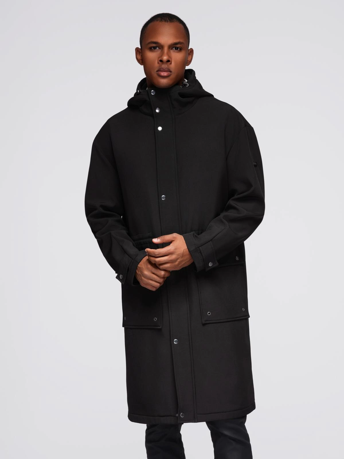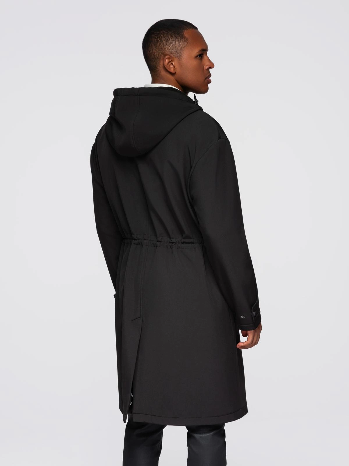 Parka męska płaszcz z podszewką polarową i regulacją w talii – czarna V2 OM-JAPJ-0314