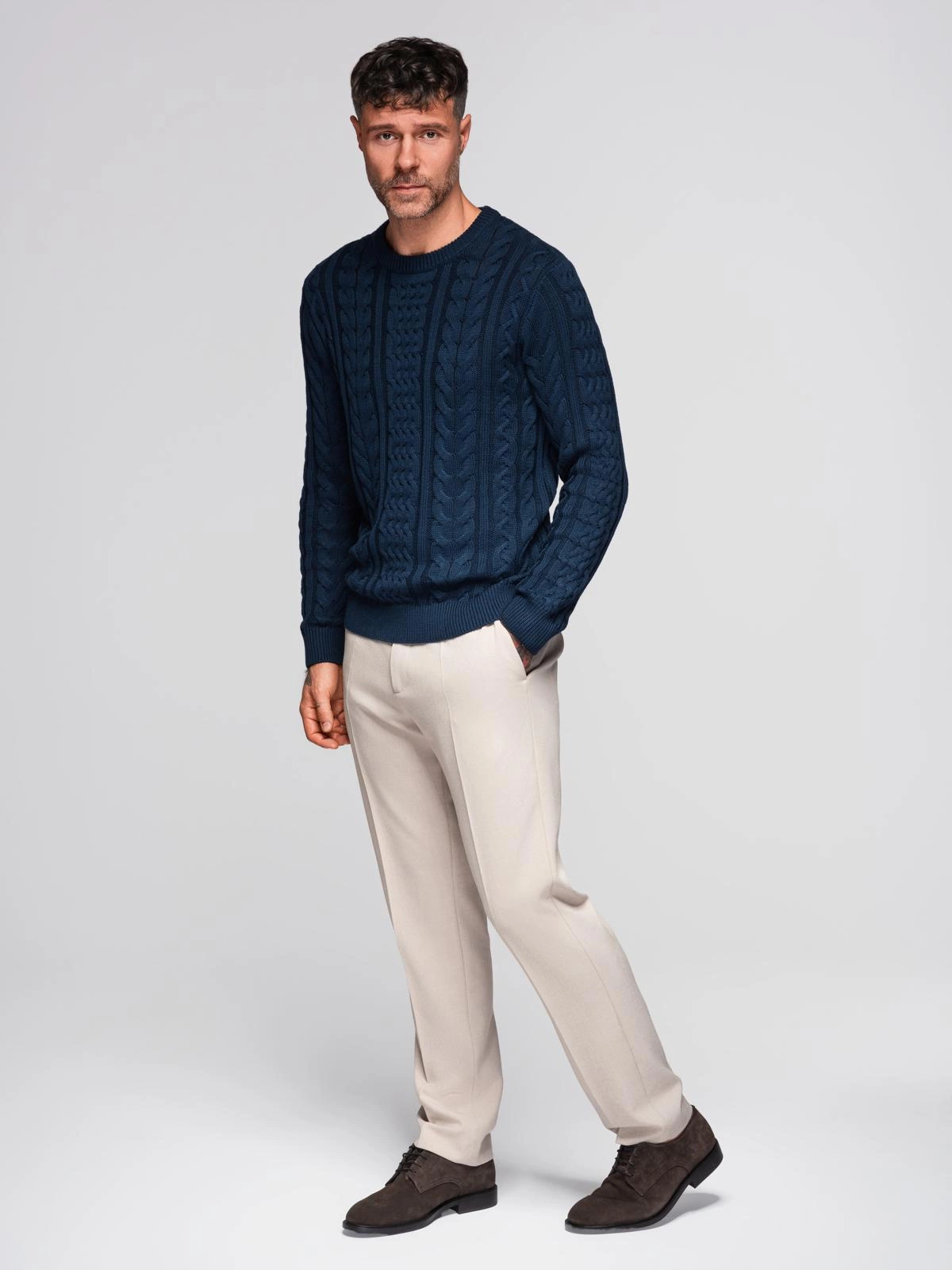 - Męski elegancki sweter z ciekawym splotem – granatowy V5 OM-SWSW-0173