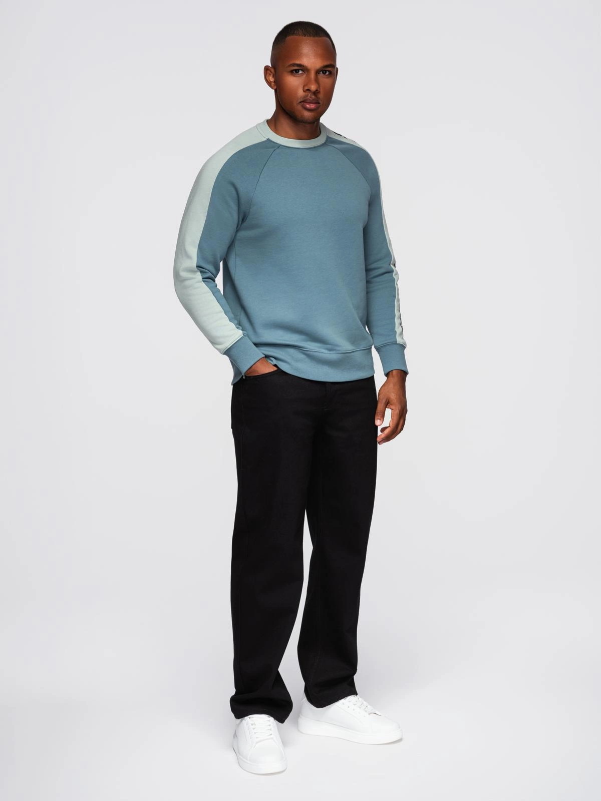 Bluza męska z kontrastowymi lampasami i raglanowym rękawem – rozbielony turkus V4 OM-SSNZ-0200