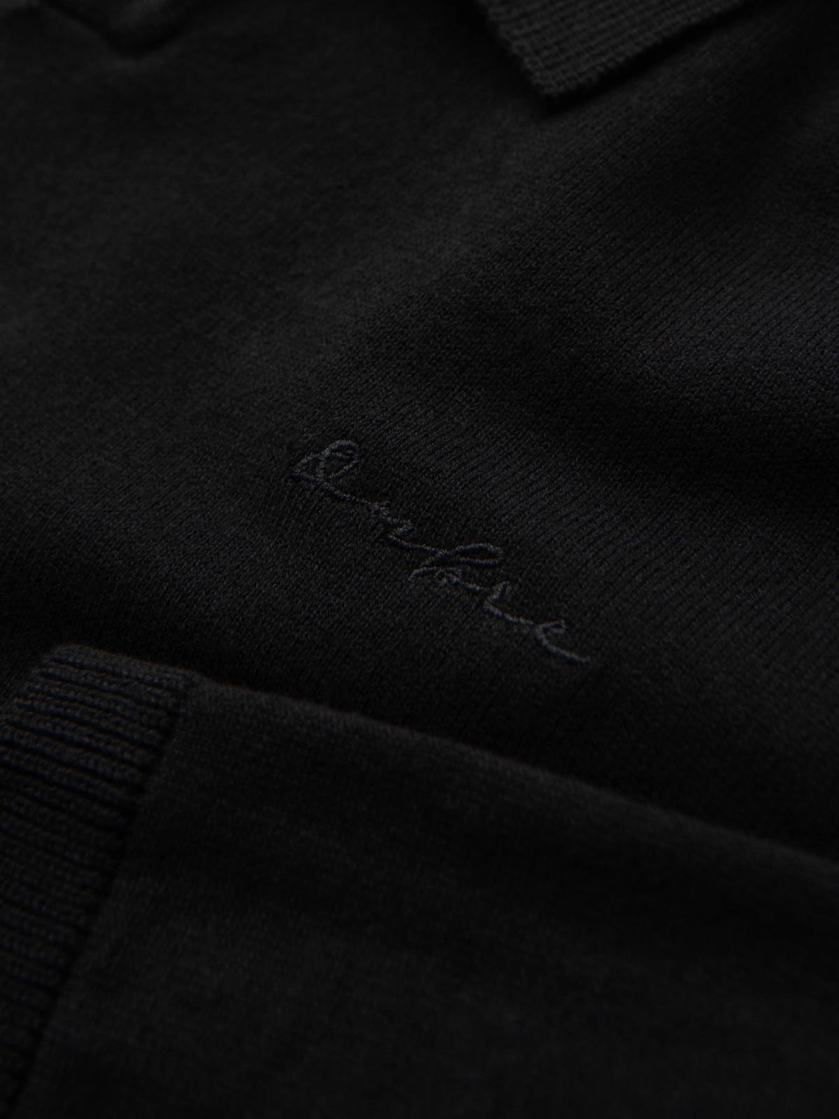 Męski sweter polo z haftem na piersi – czarny V1 OM-POLS-0140