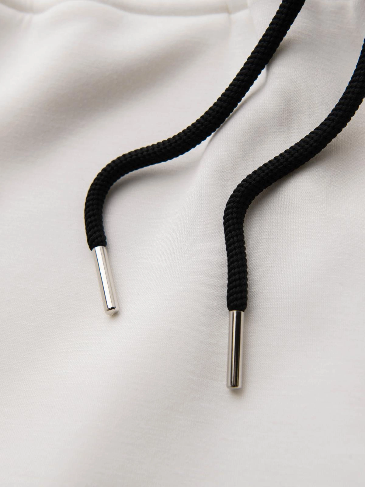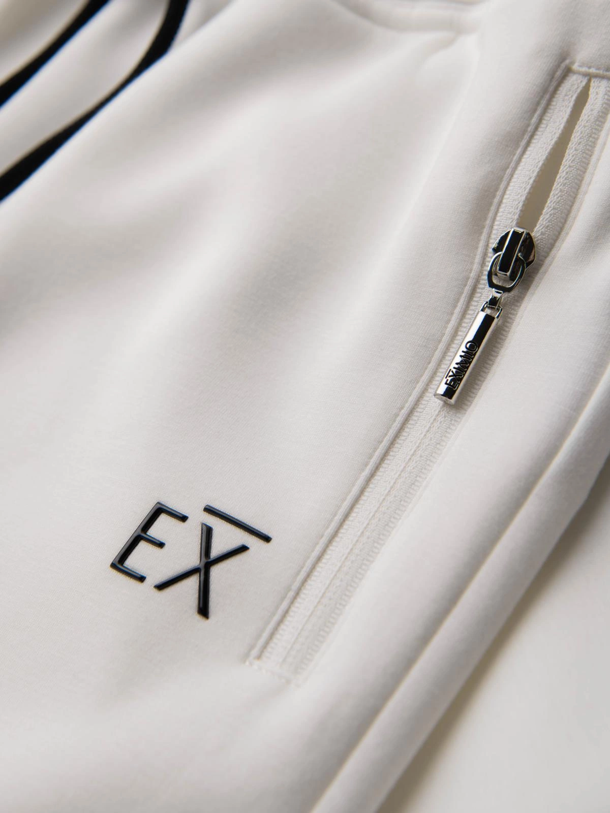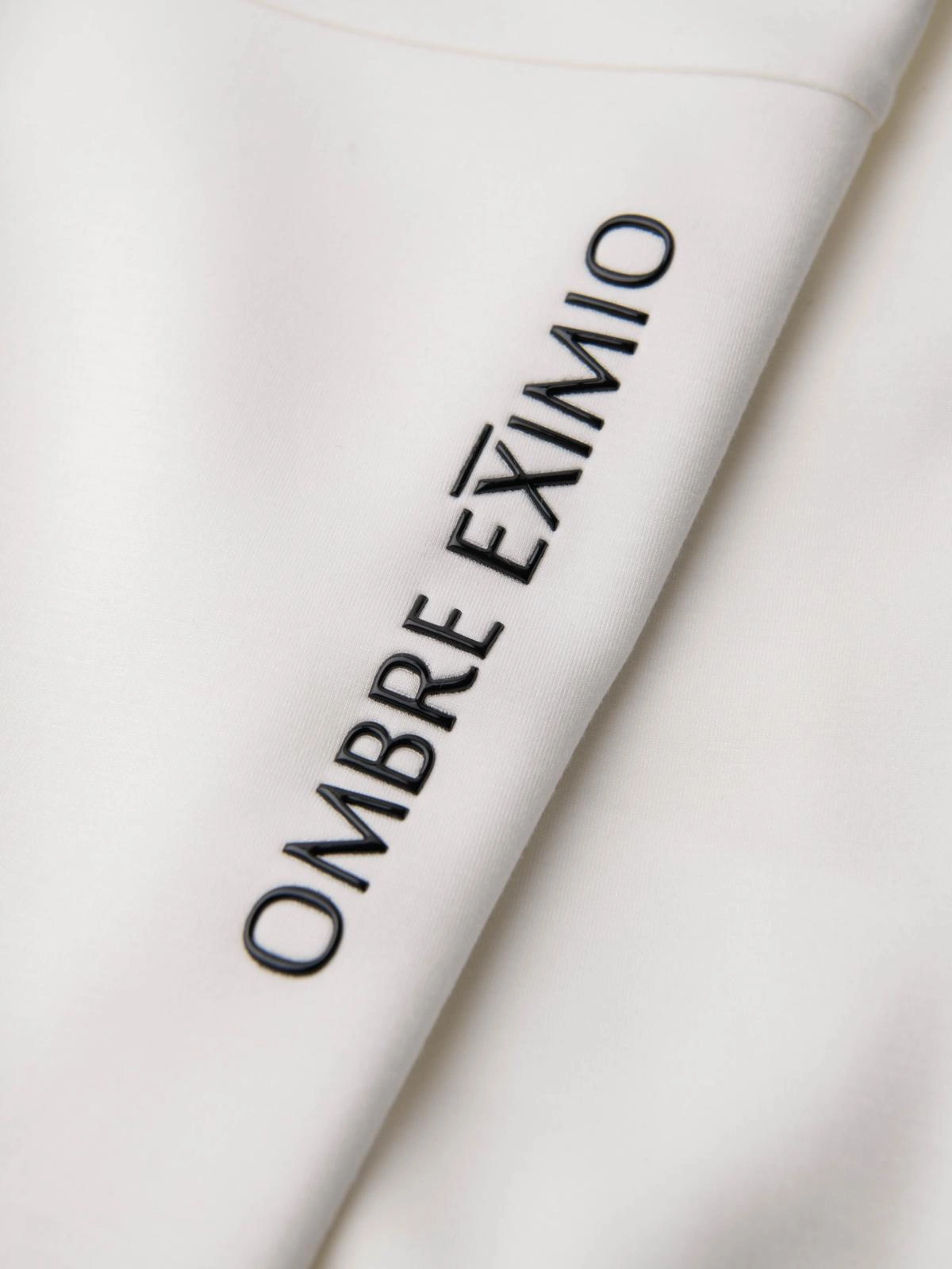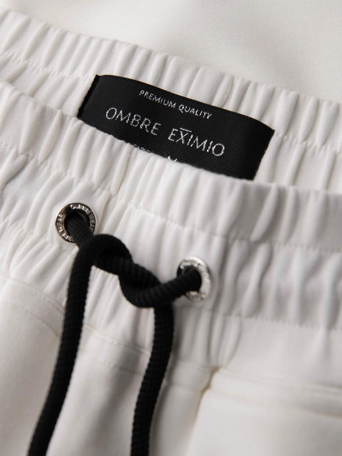 Dresowe spodnie męskie ze ściągaczami w nogawkach i gumowym nadrukiem – białe V2 OM-PASK-0223