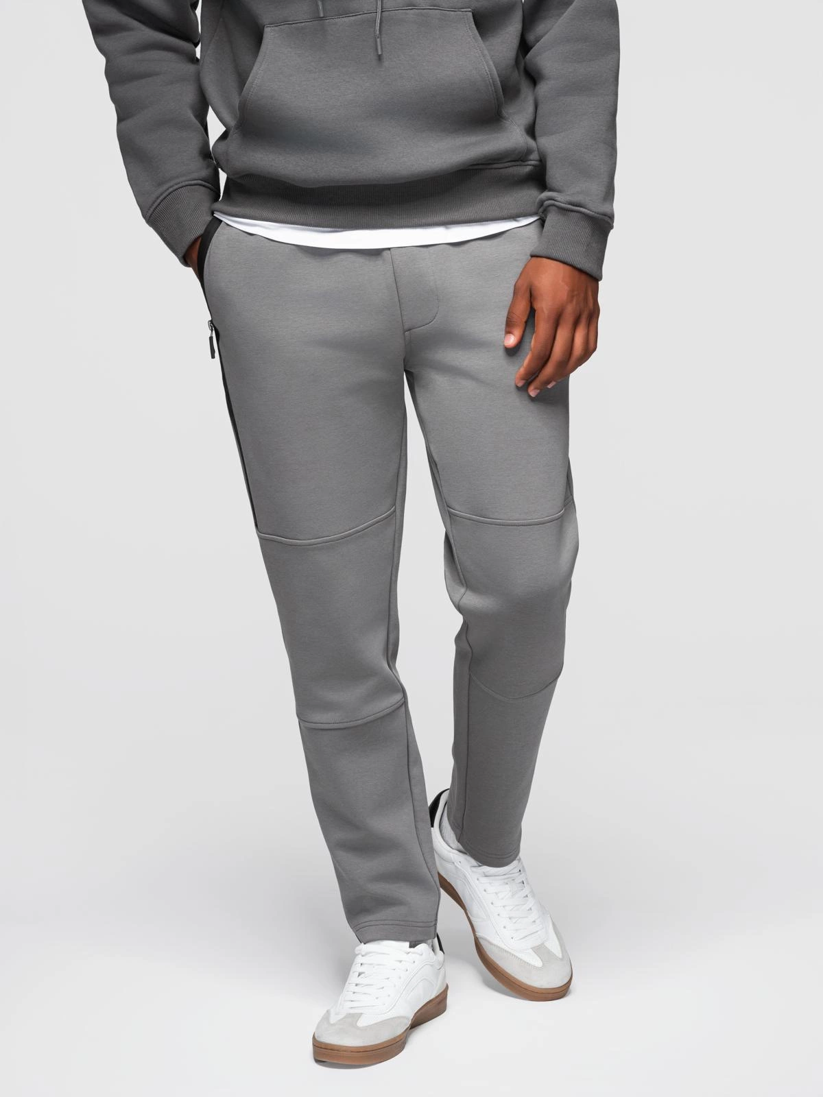 - Dresowe spodnie męskie z prostą nogawką i gumowymi detalami – szare V3 OM-PASK-0281