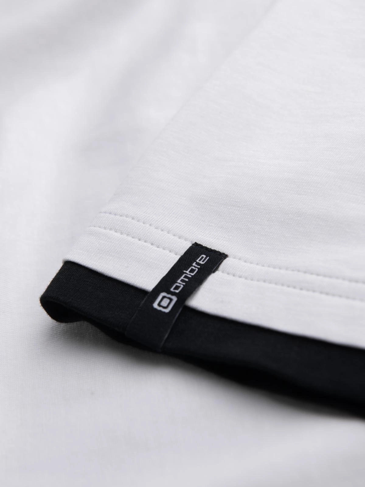 Męski t-shirt bawełniany z kapturem – biały V1 OM-TSCT-0256