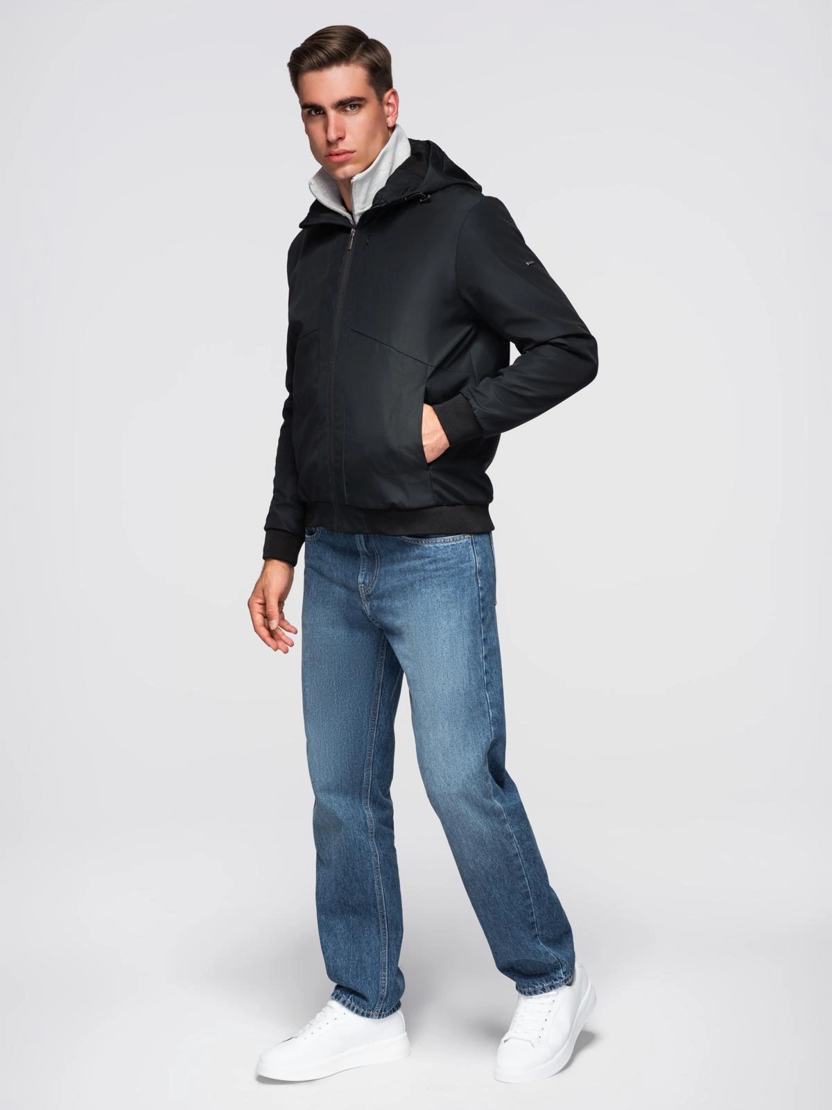 - Lekka kurtka męska z siateczkową podszewką i kapturem – czarna V4 C640