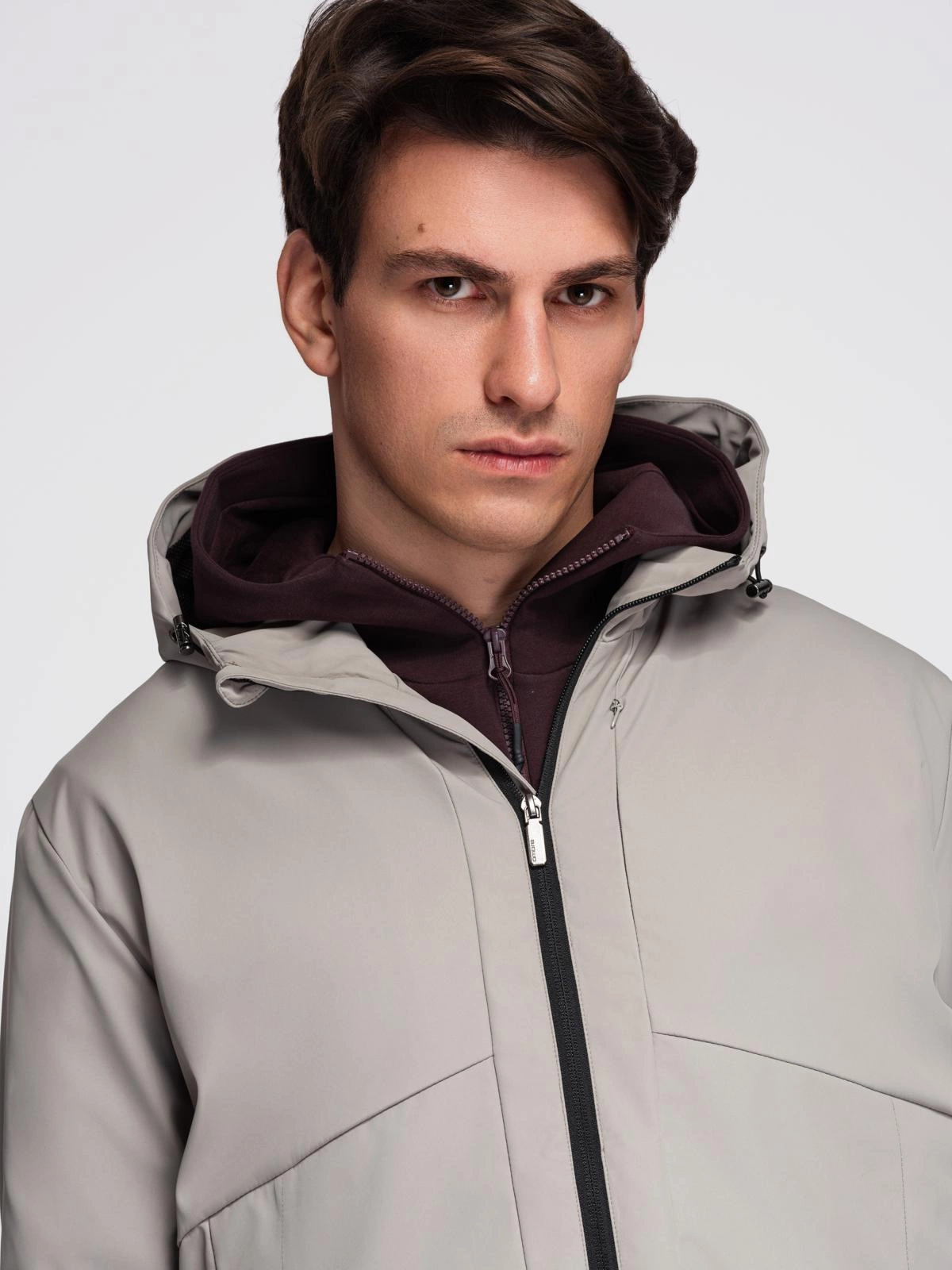 - Lekka męska kurtka z siateczkową podszewką i kapturem – szara V6 C640