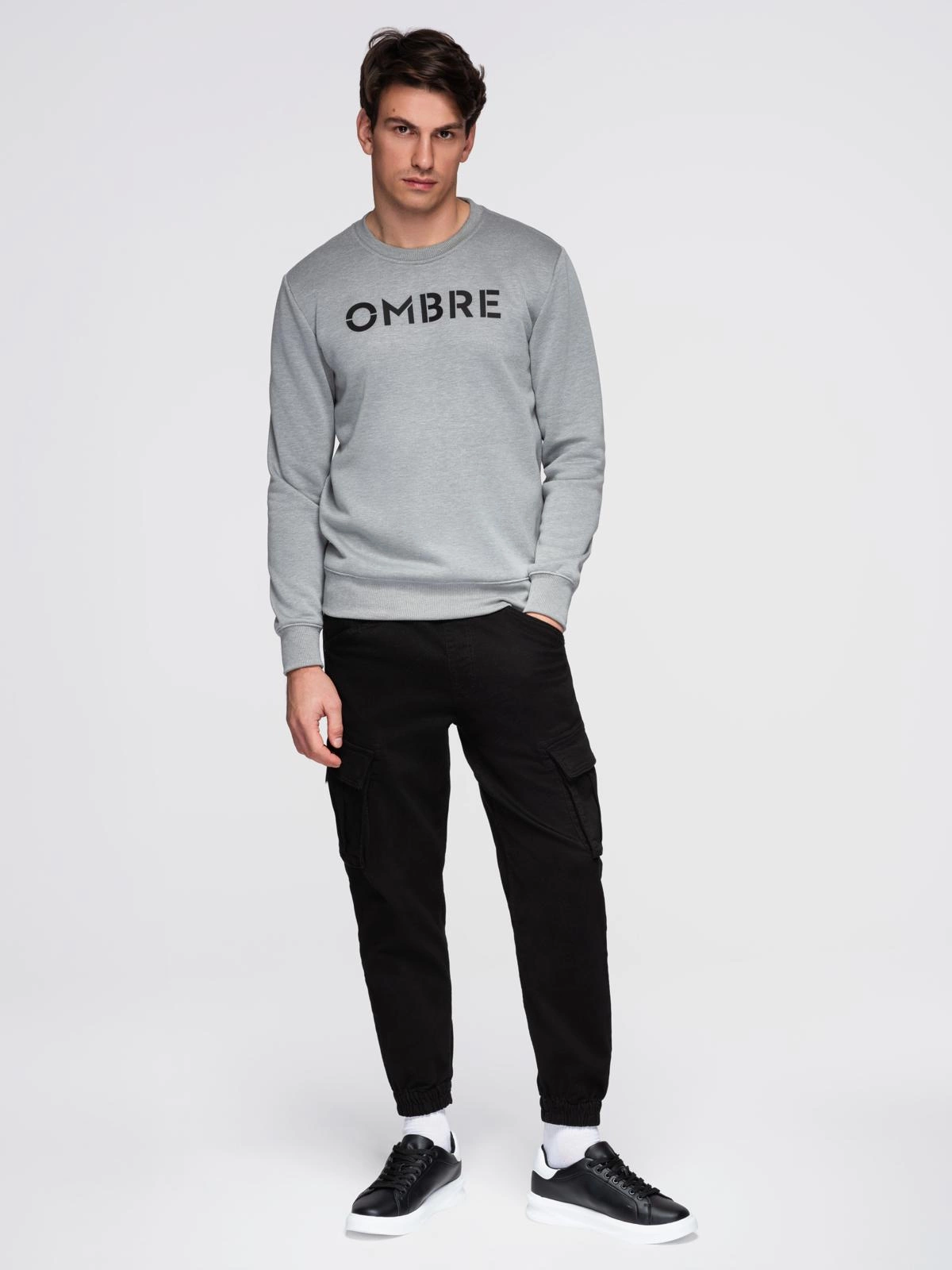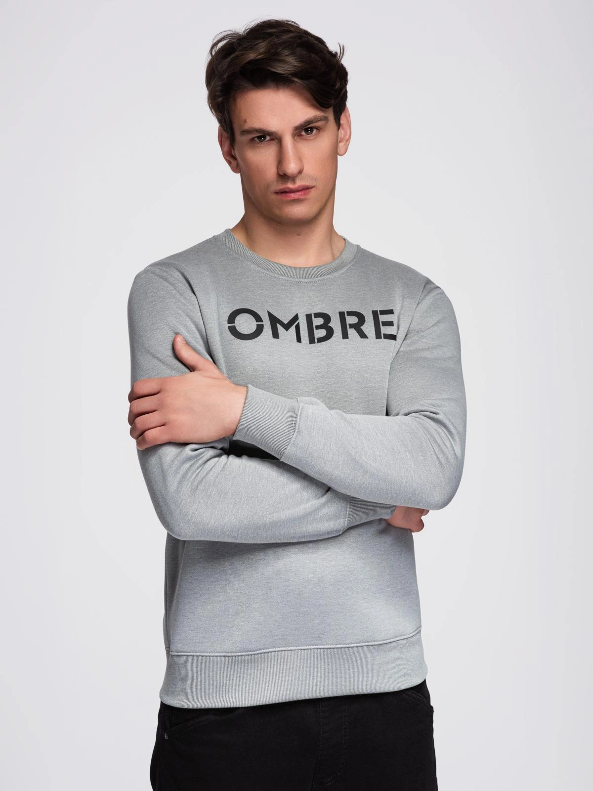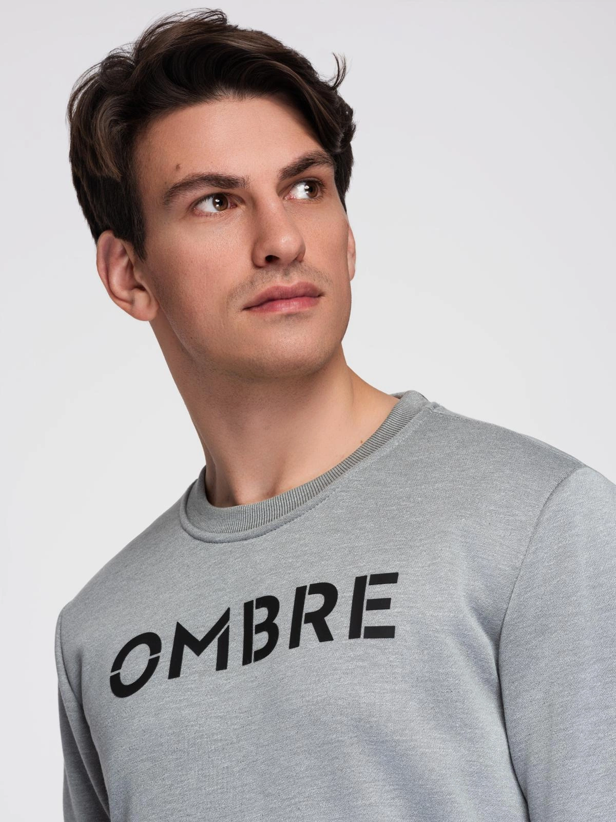 Klasyczna męska dresowa bluza z napisem – szary melanż V1 B1711