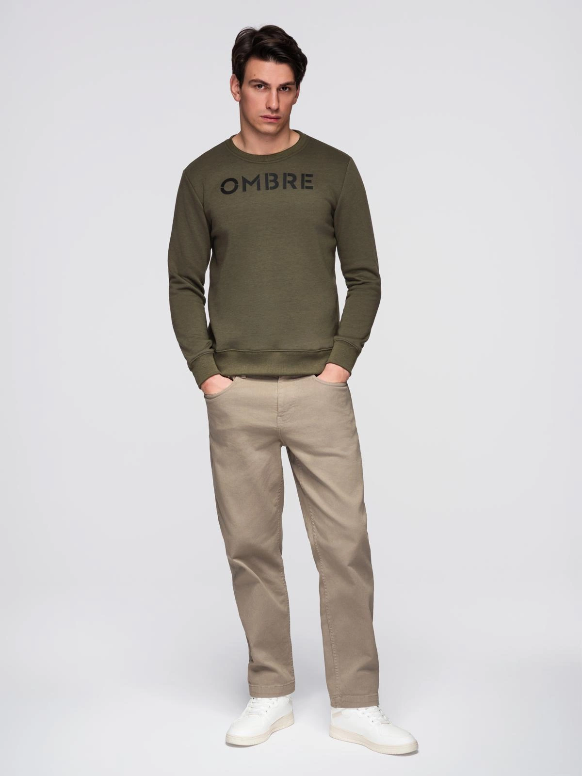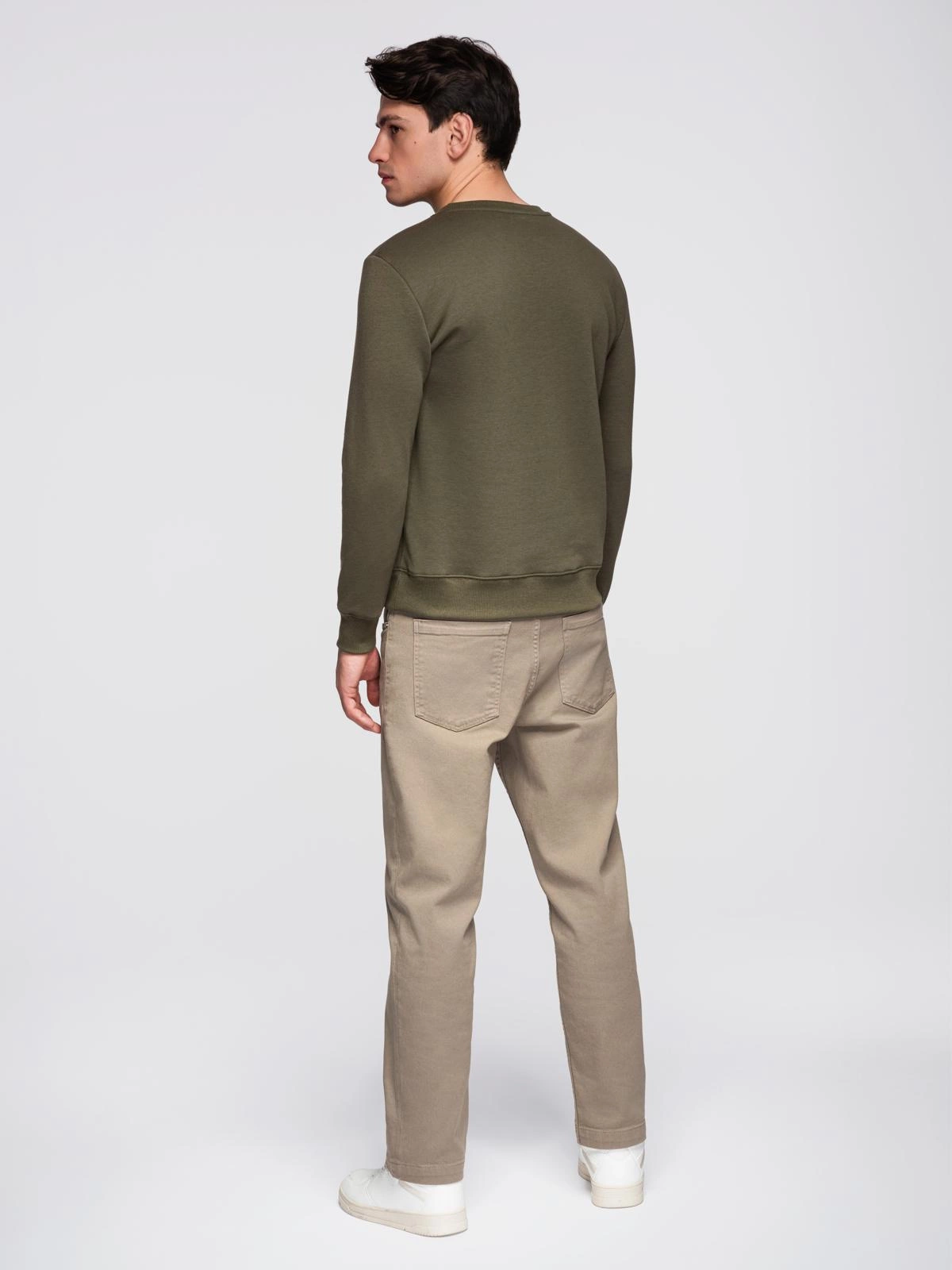 Klasyczna bluza męska dresowa z napisem – ciemnooliwkowa V2 B1711
