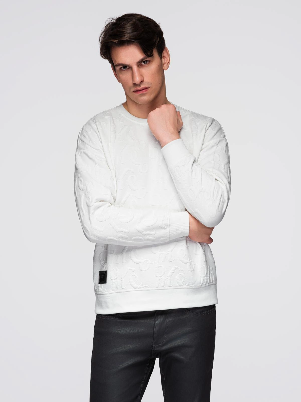 - strukturalna dzianina z tłoczonymi literami