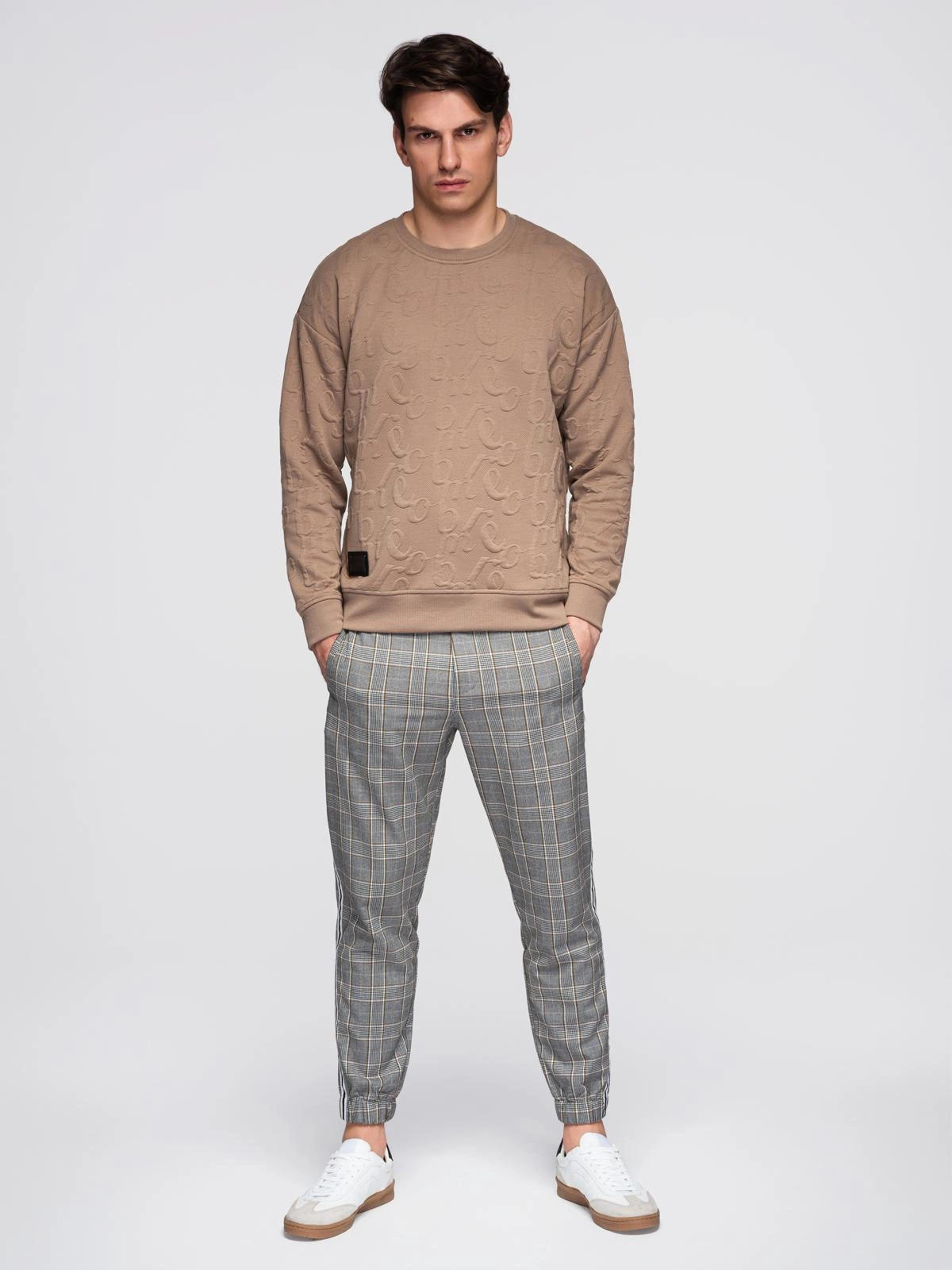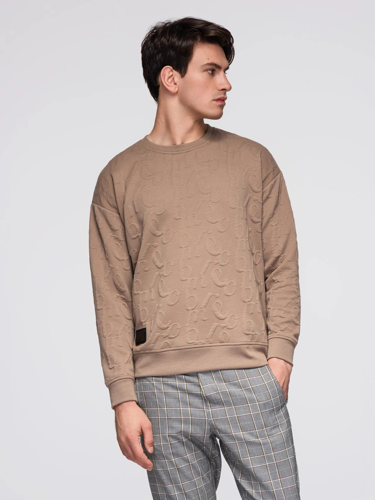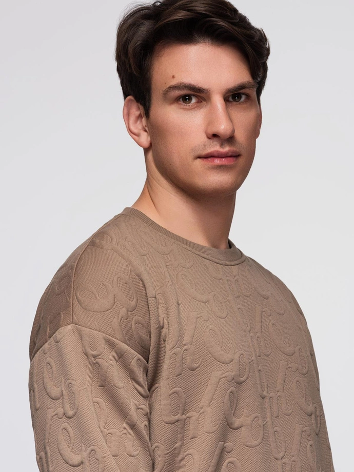 Bluza męska RELAXED FIT z tłoczonymi literami – brązowa V3 B1712