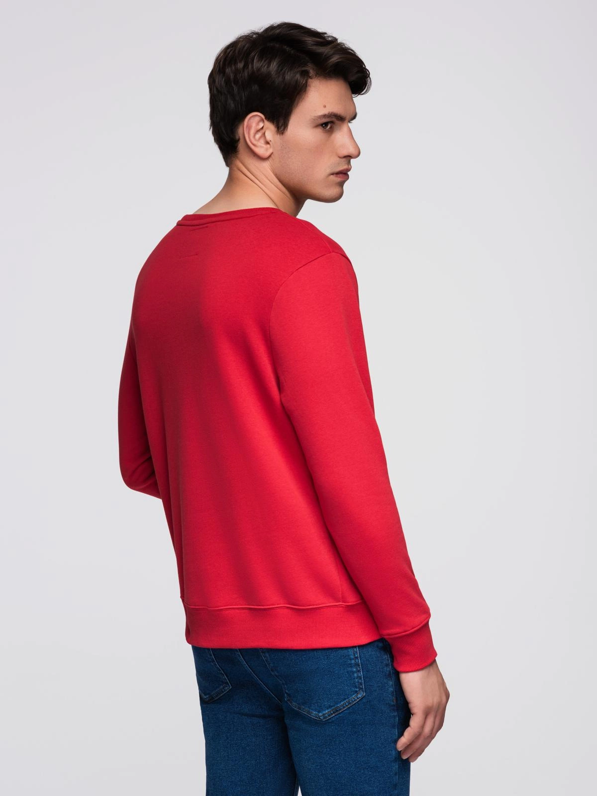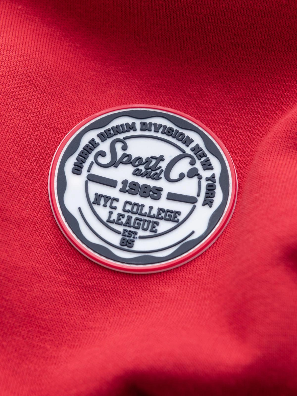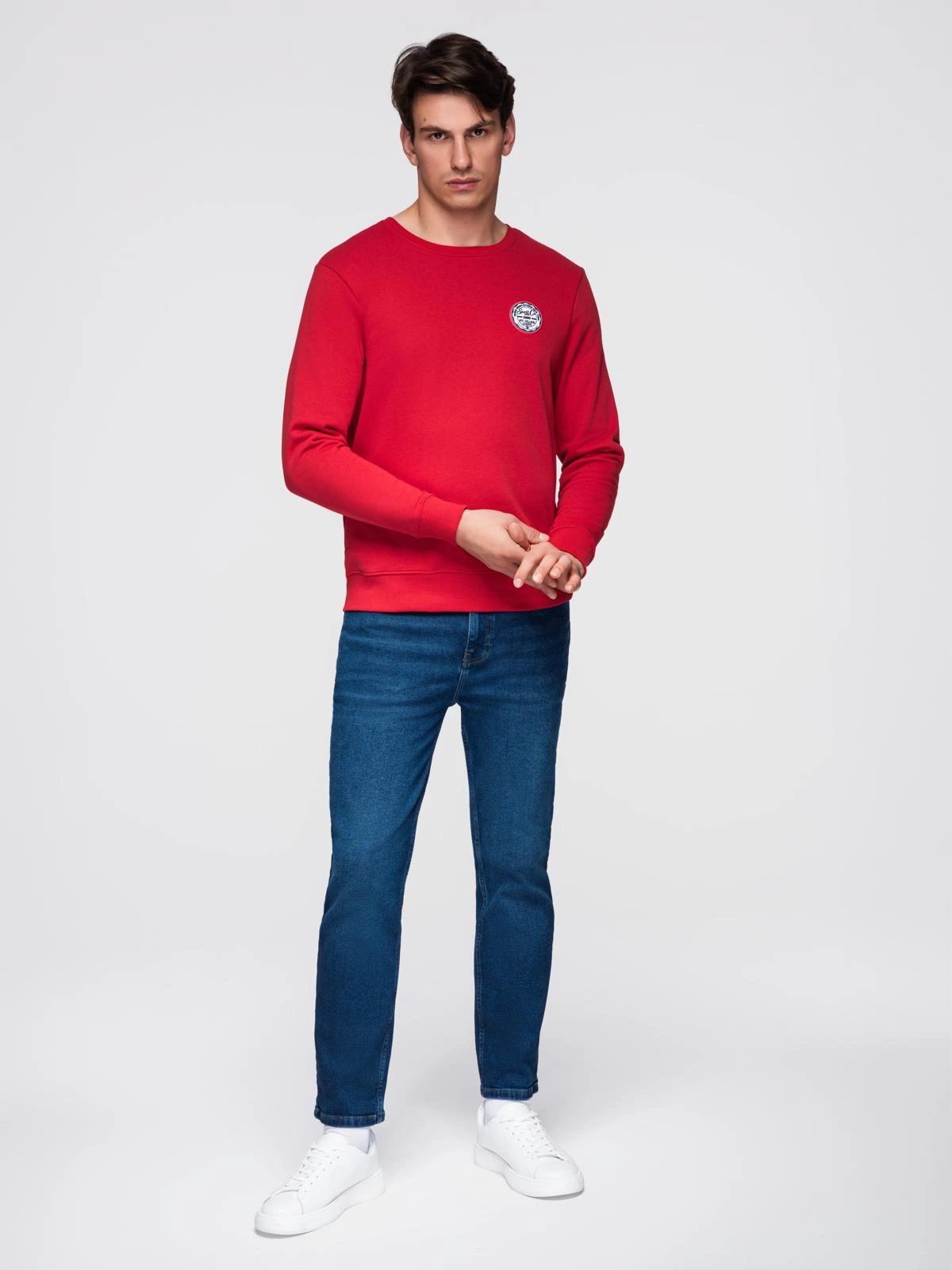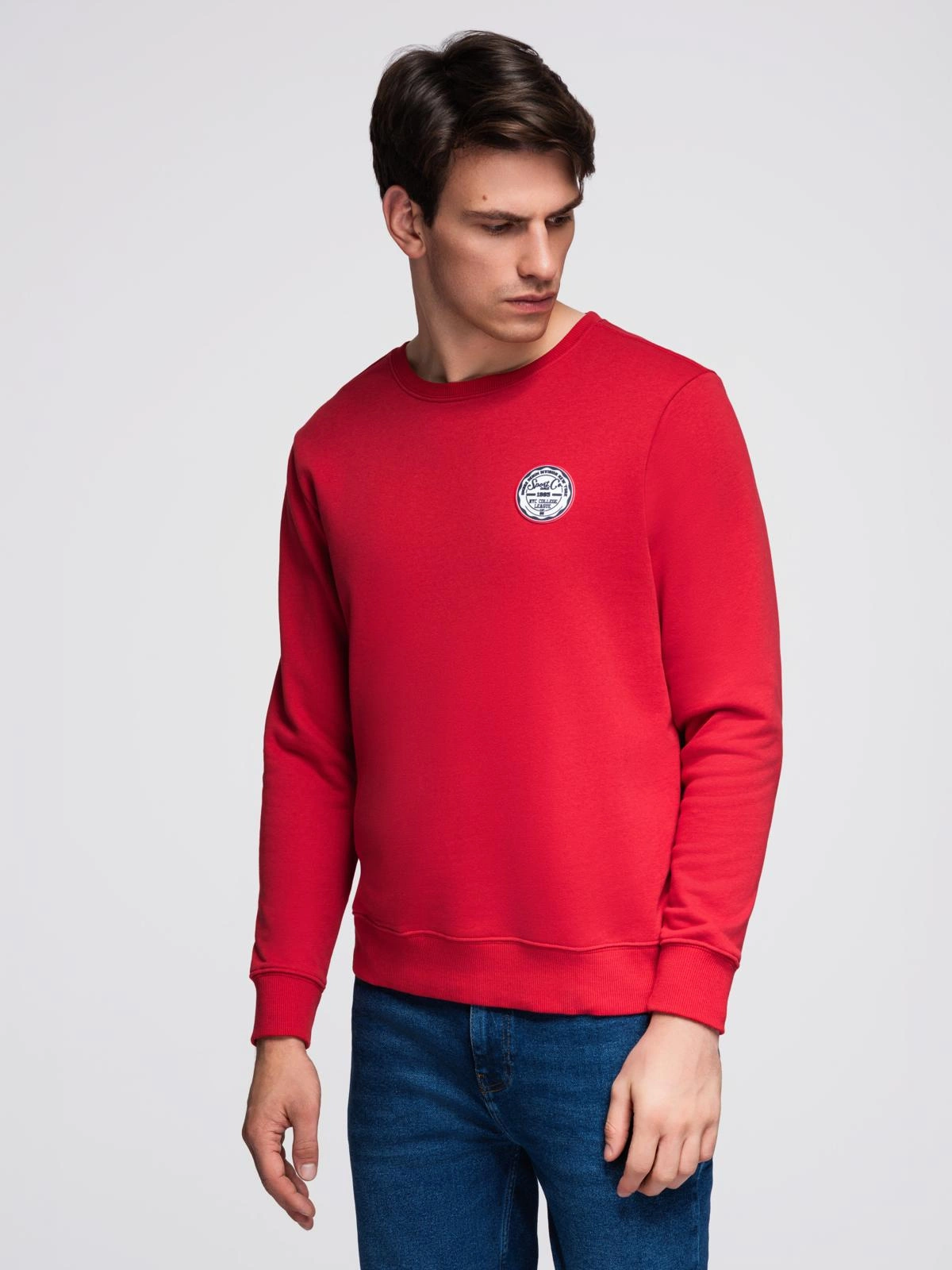 Nierozpinana bluza męska z okrągłym dekoltem i naszywką - czerwona V1 B1713