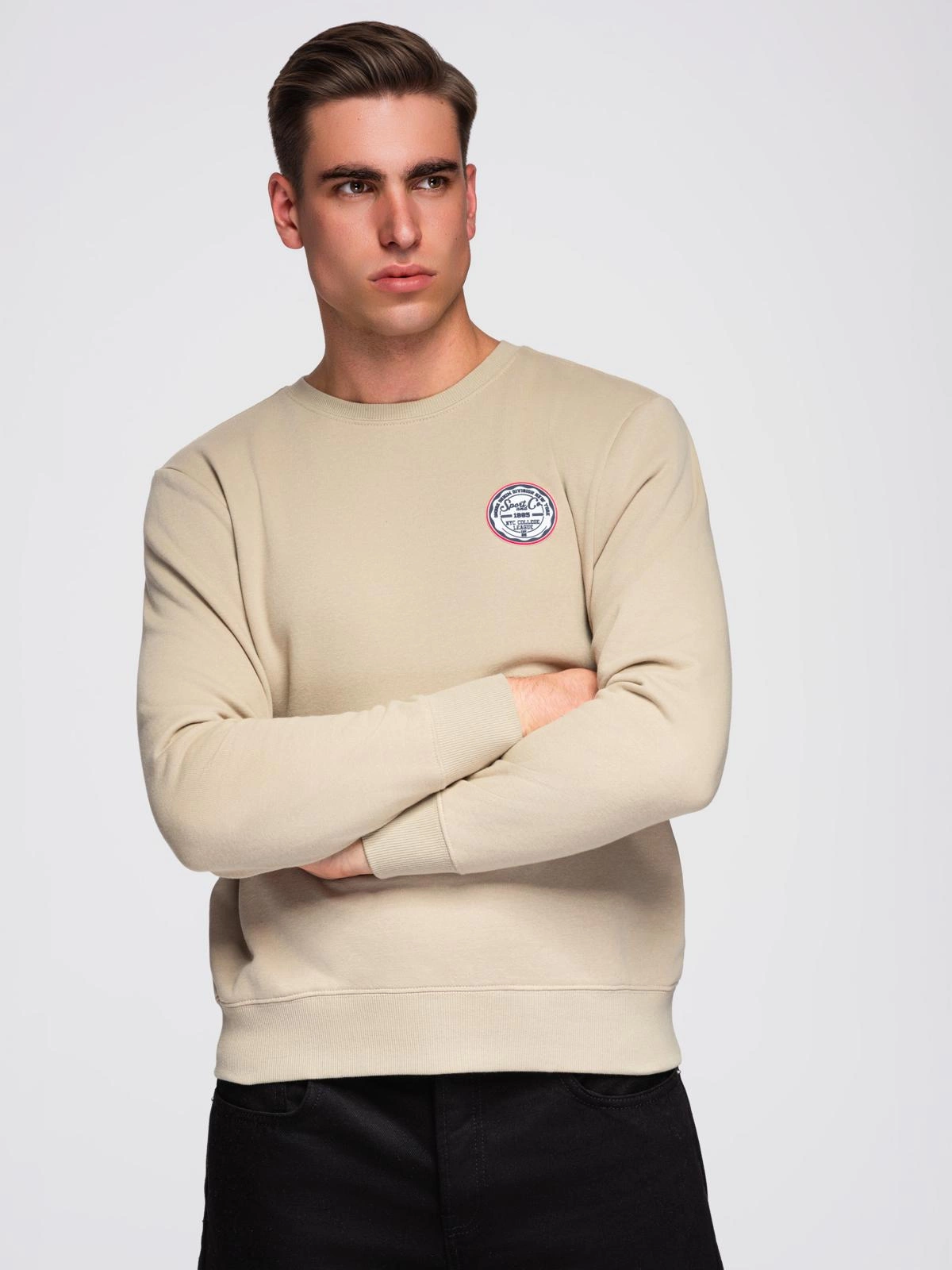Nierozpinana dresowa bluza męska z naszywką - beżowa V3 B1713