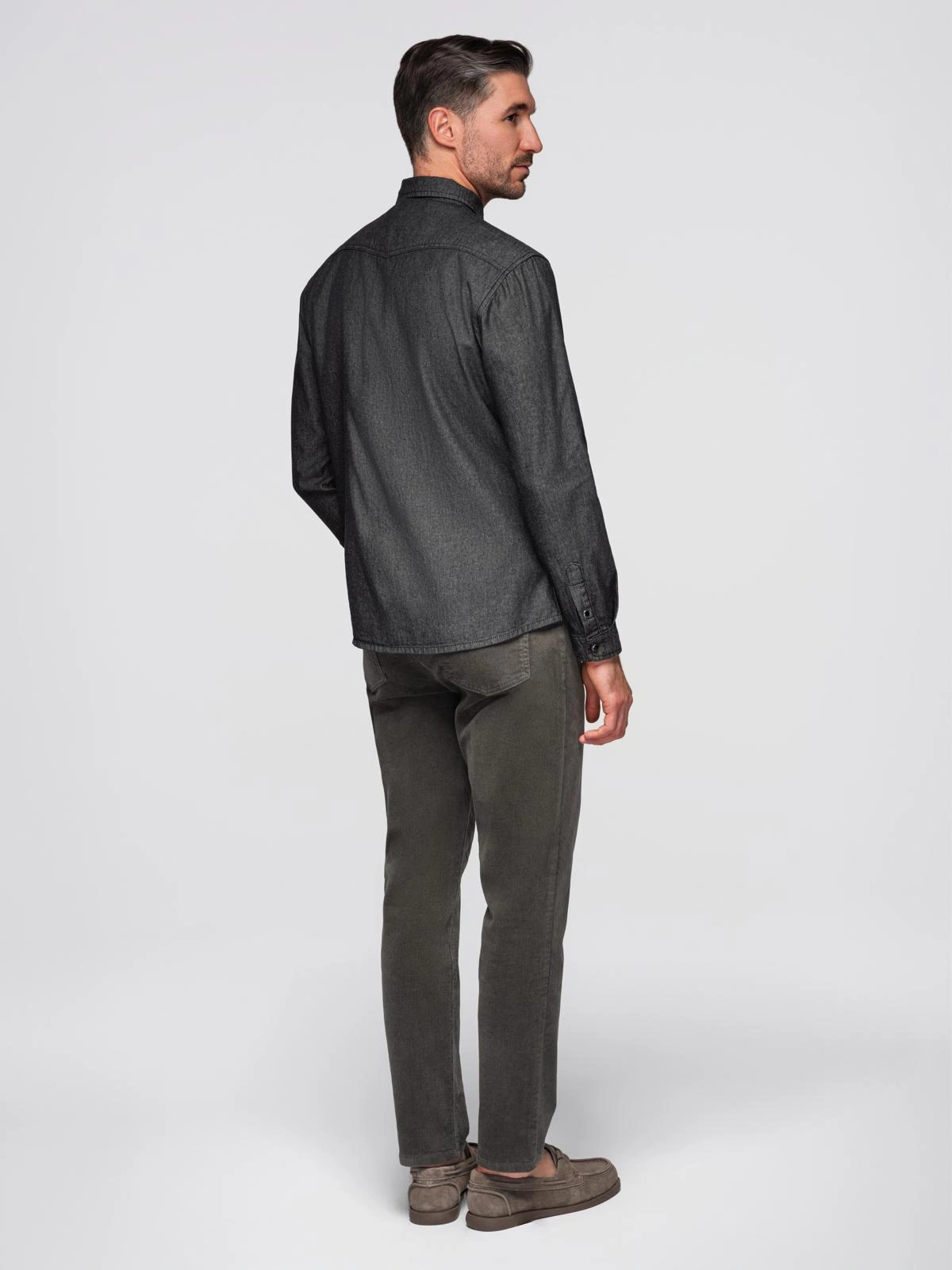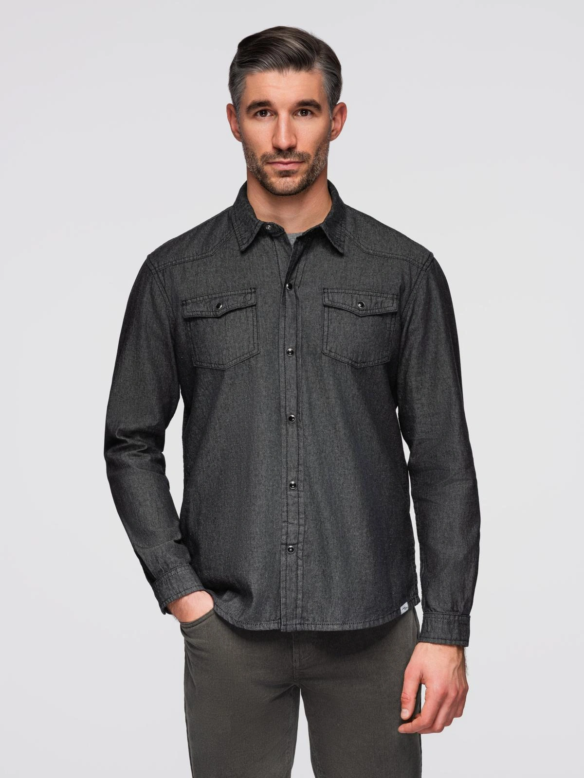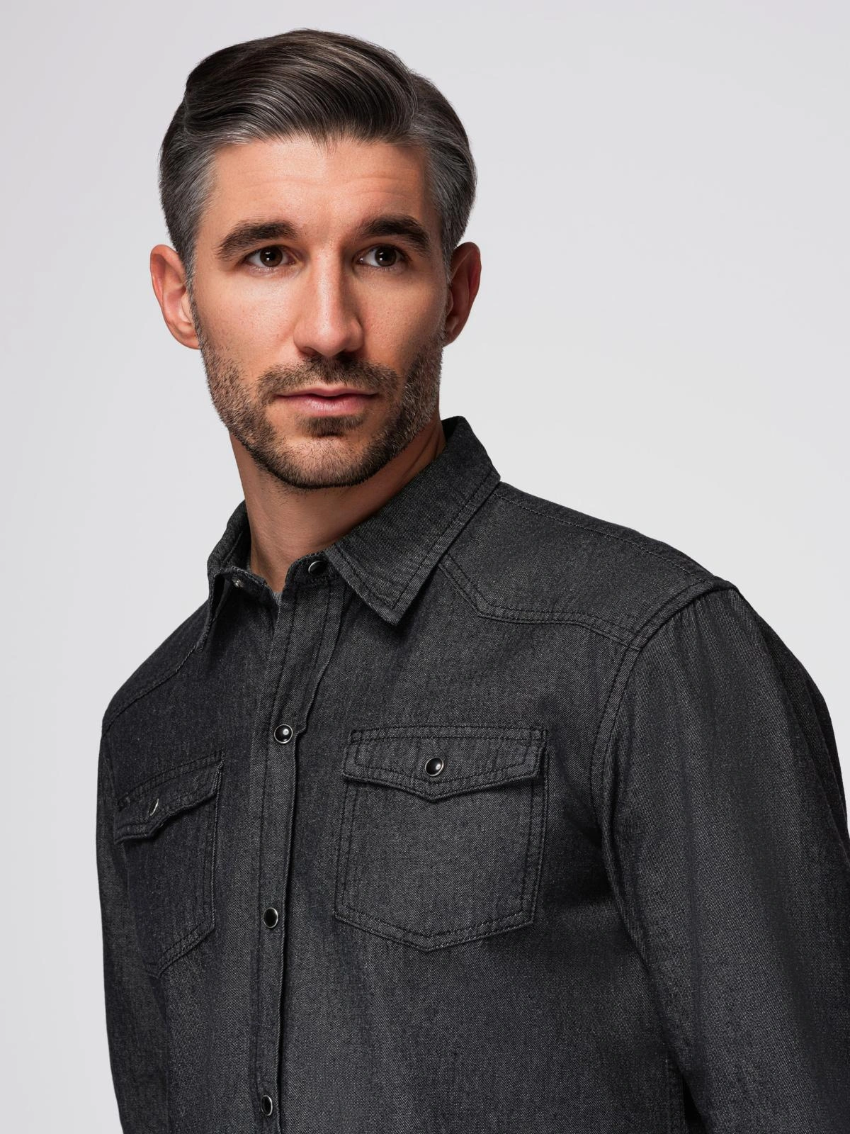 Koszula męska jeansowa na zatrzaski z kieszonkami - czarna V3 OM-SHDS-0210