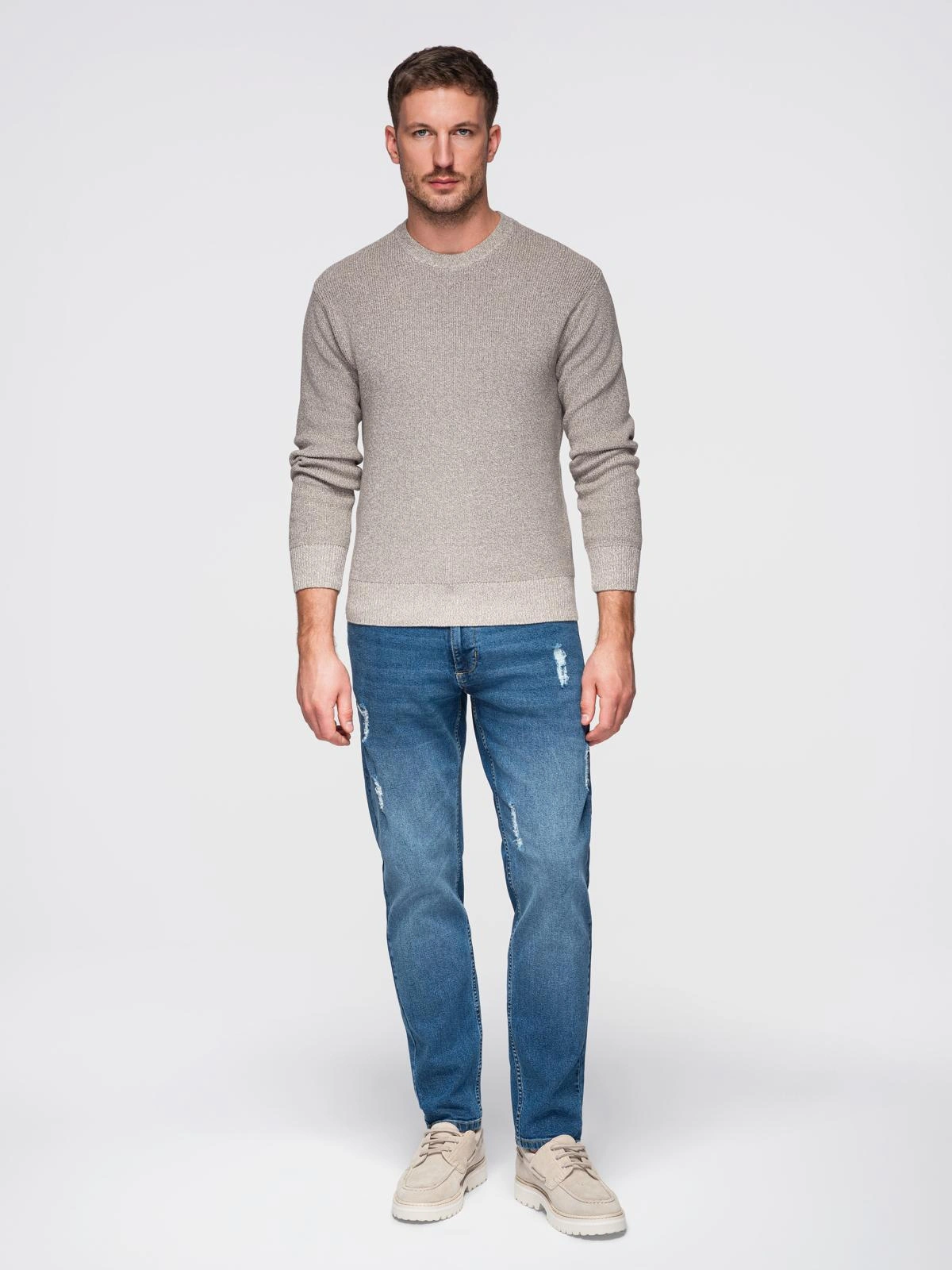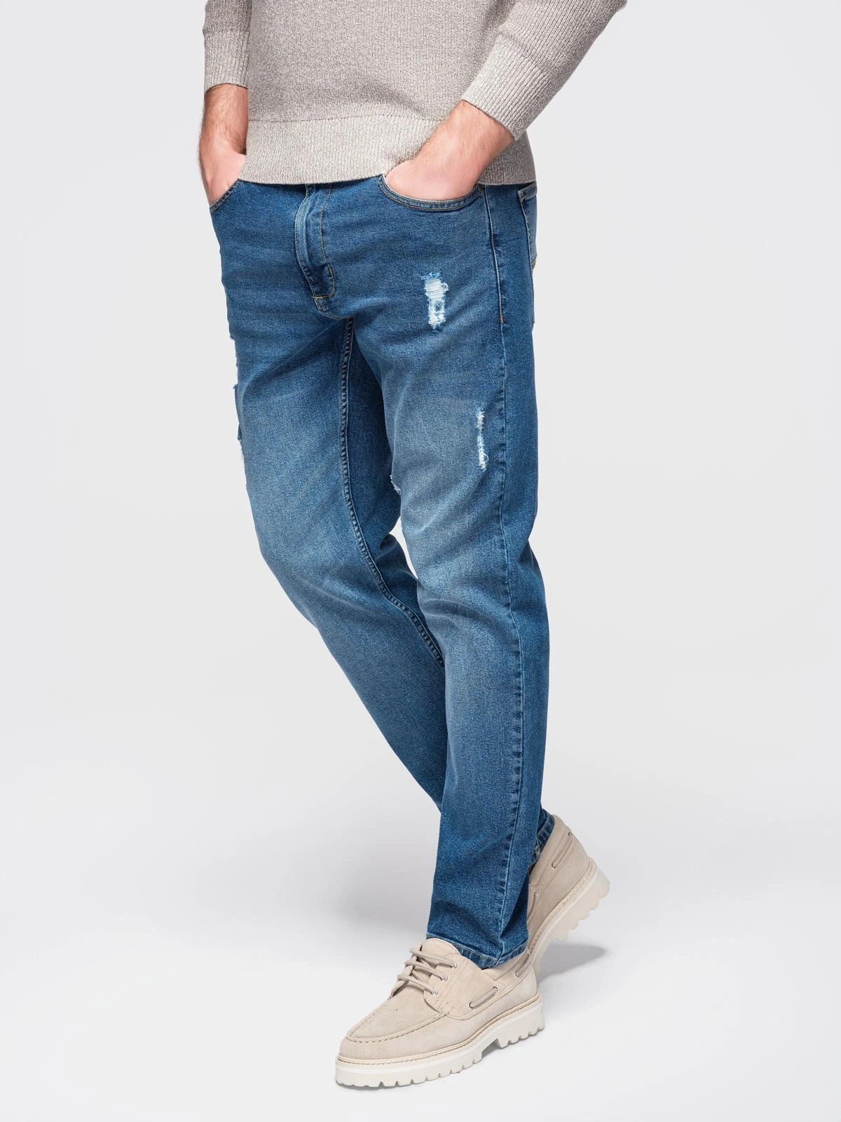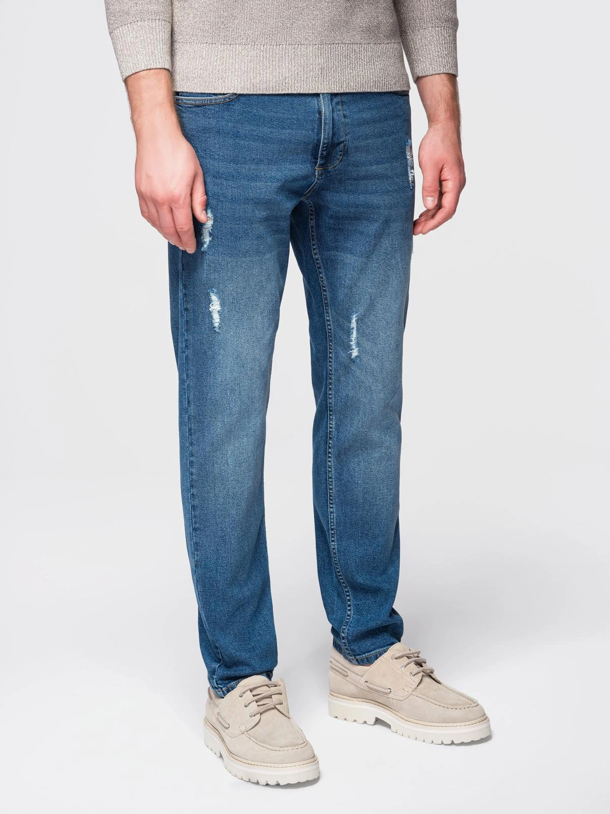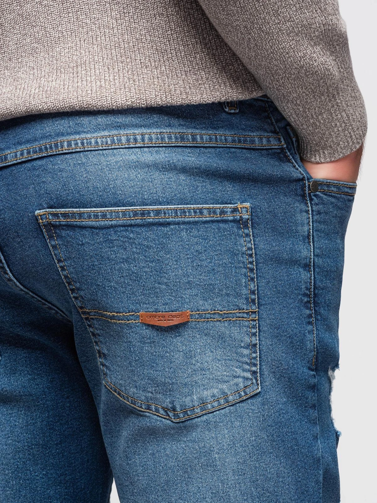 Męskie spodnie jeansowe SLIM FIT z przetarciami - ciemnoniebieskie V2 OM-PADP-0255