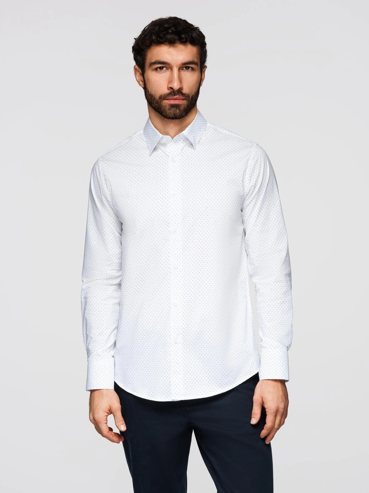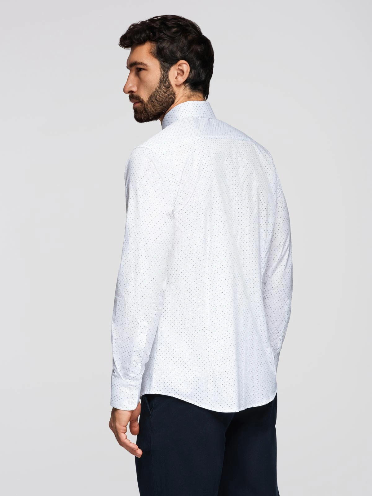 Bawełniana koszula męska w delikatne wzory REGULAR FIT - biała V1 K698